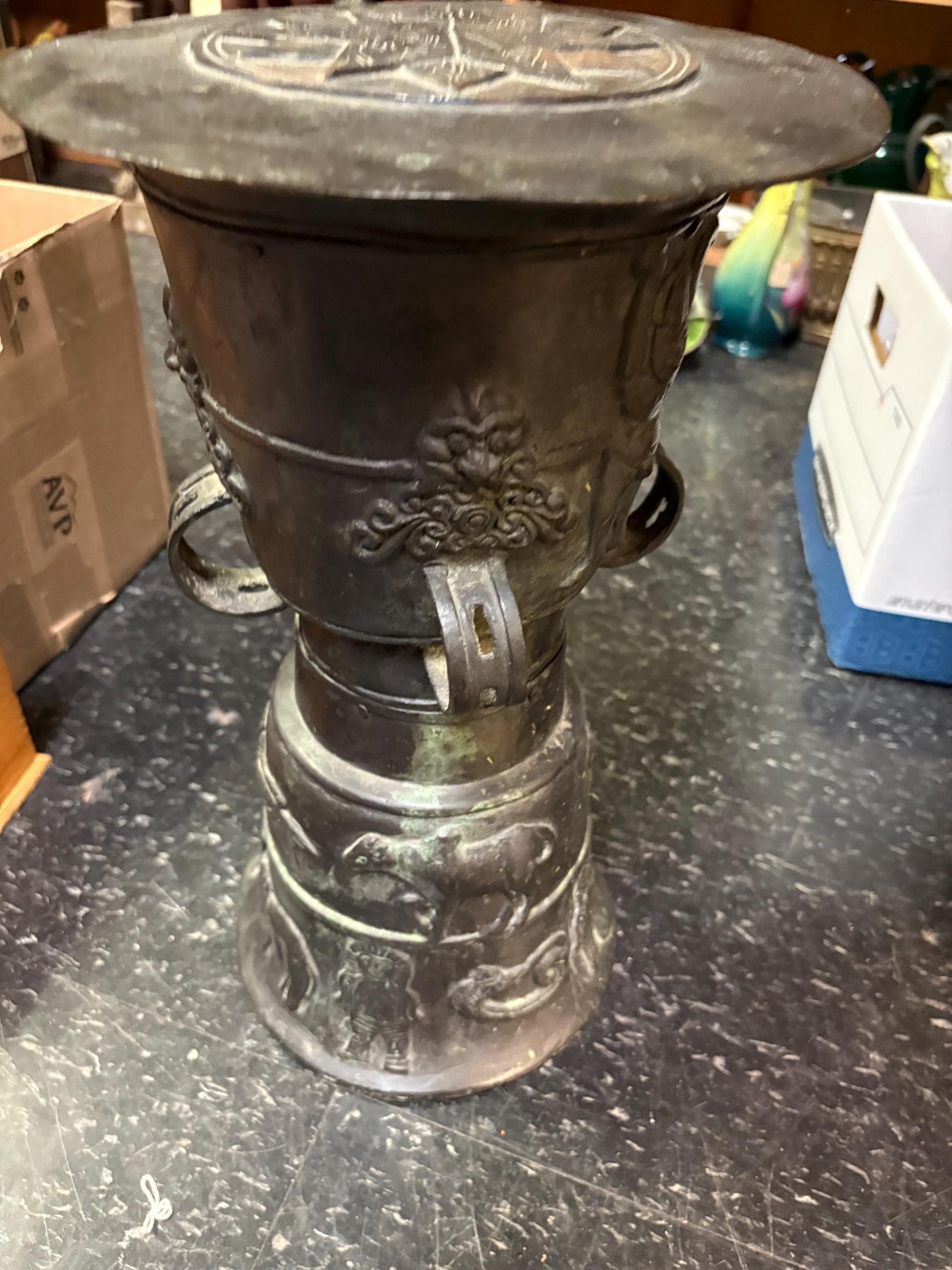 Amazing Southeast Asian bronze rain drum antique museum quality 16 inches tall wow great patina