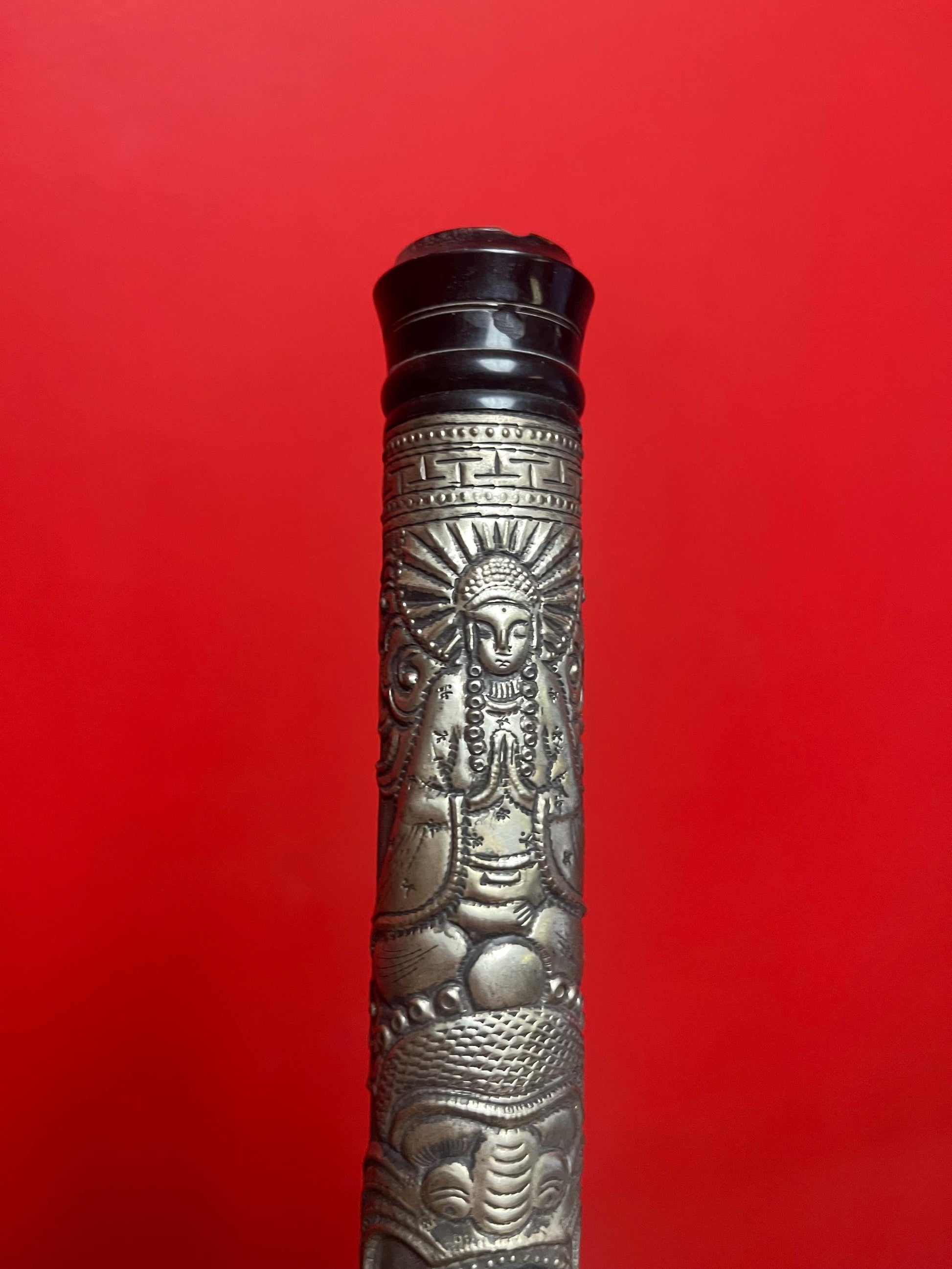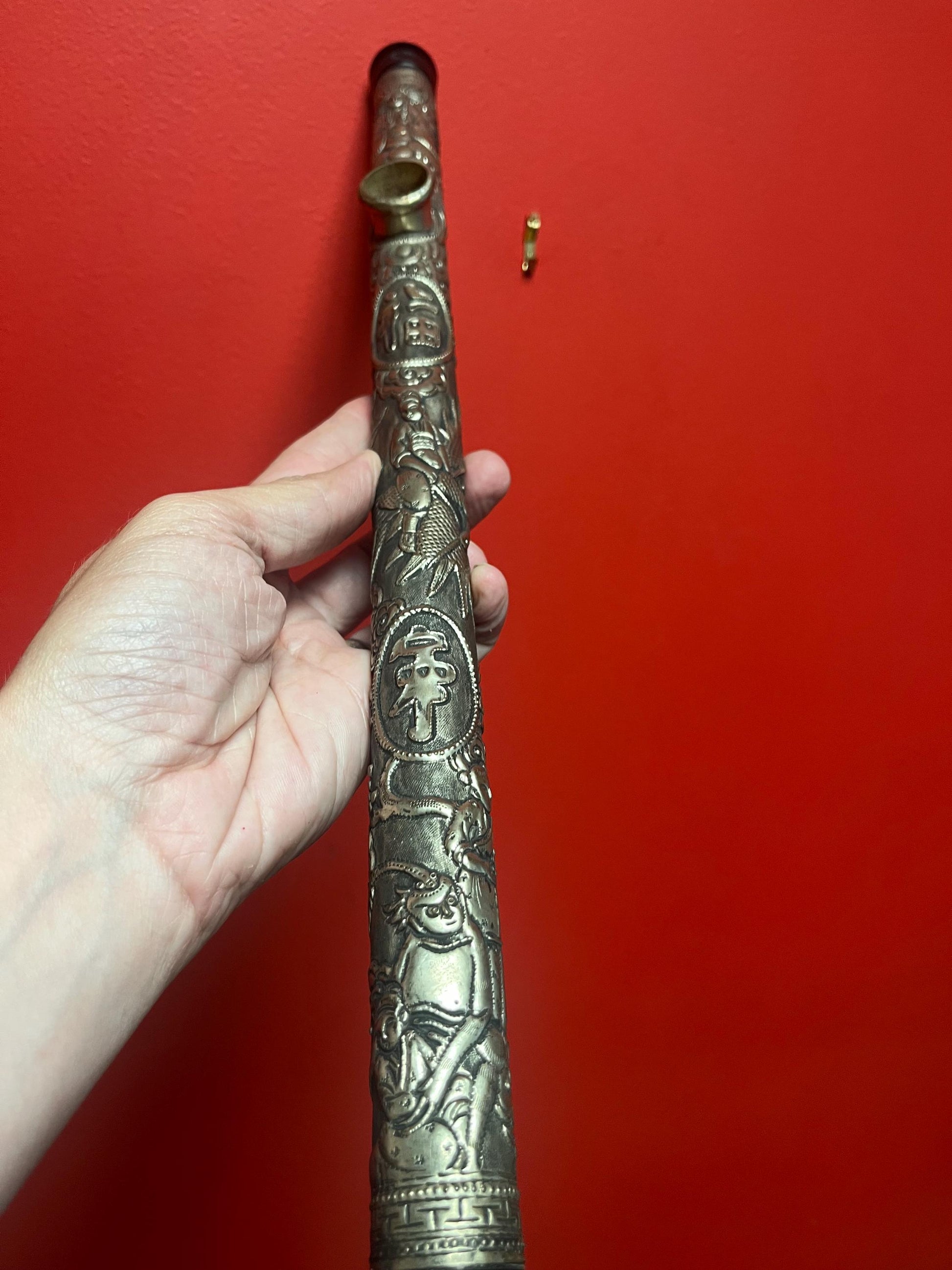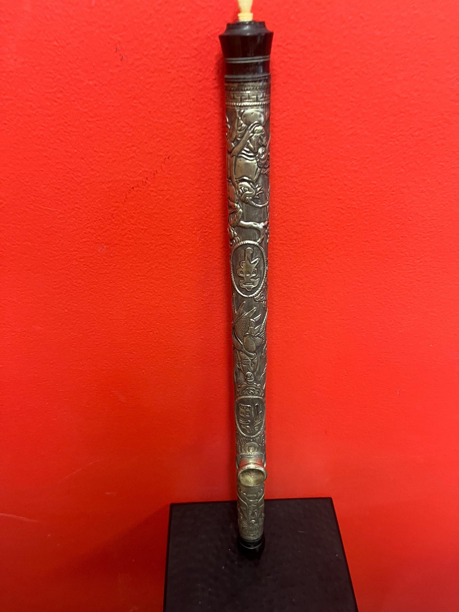 Amazing Tibetan silver antique 20 inch long pipe crazy cool graphics authentic eastern piece wow