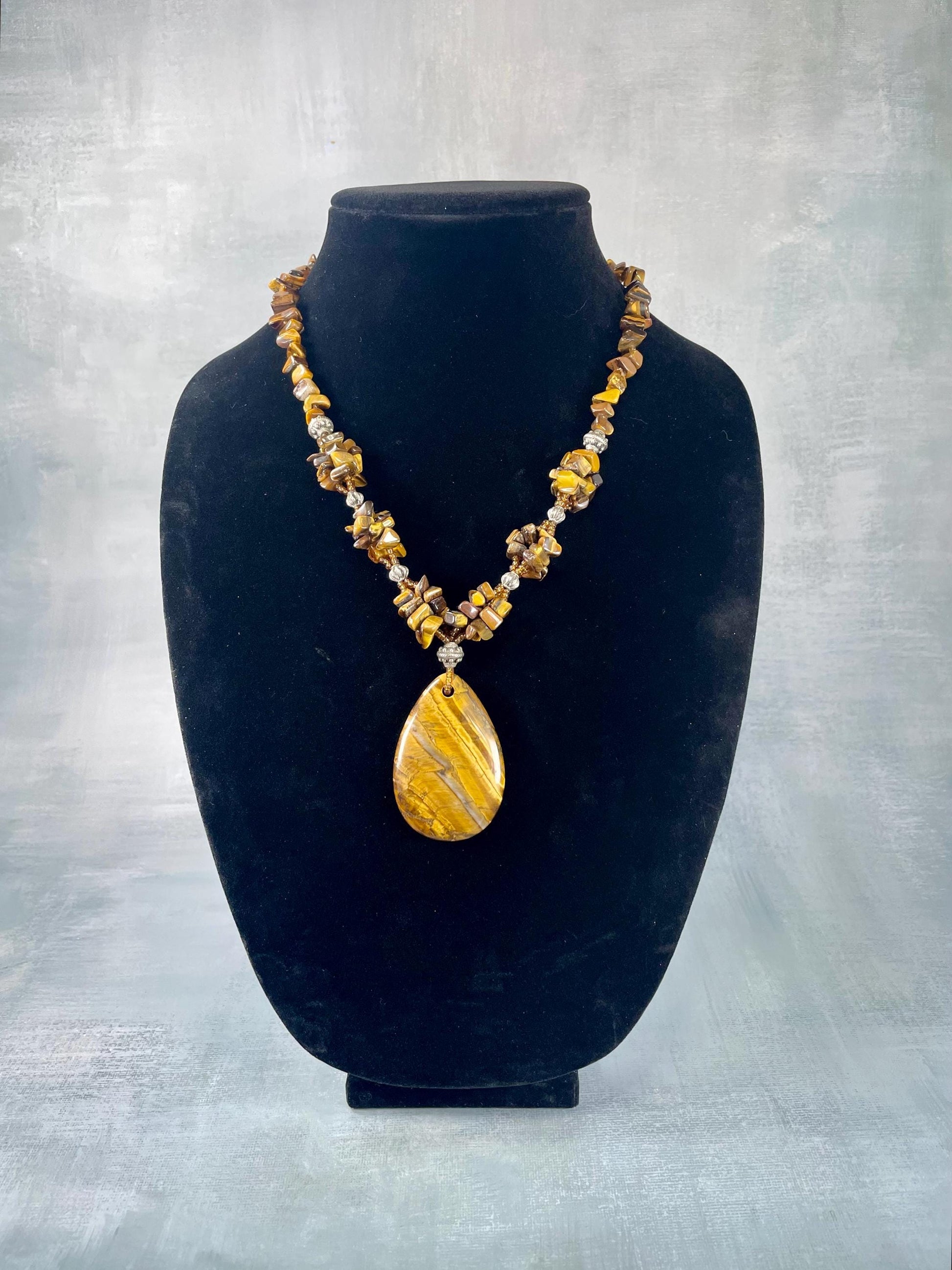 Amazing Tigers Eye Beaded Necklace and Large Pendant