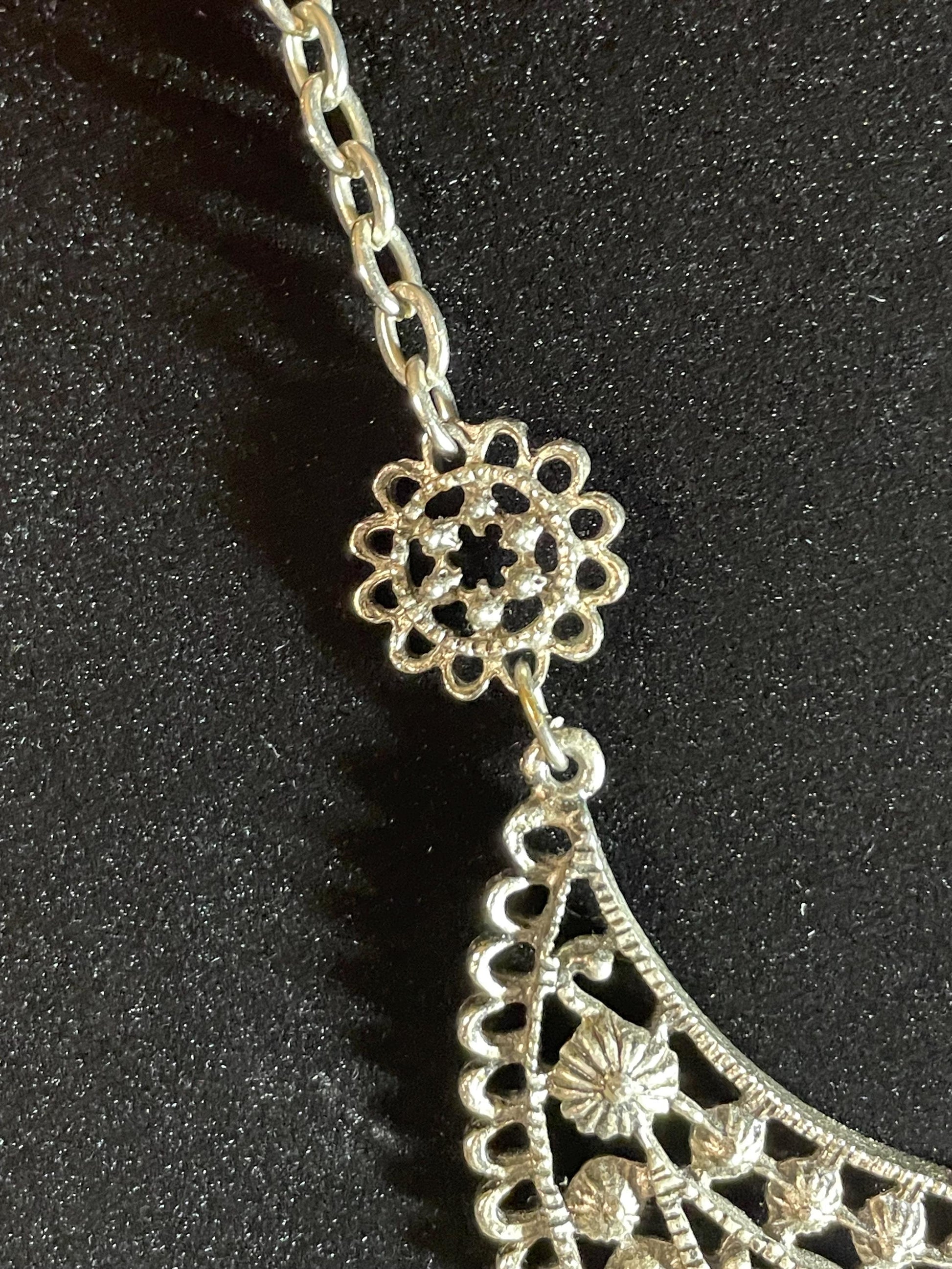 This beauty is made of untested silver, approximately 20 inches with an added 3.5 inch drop.