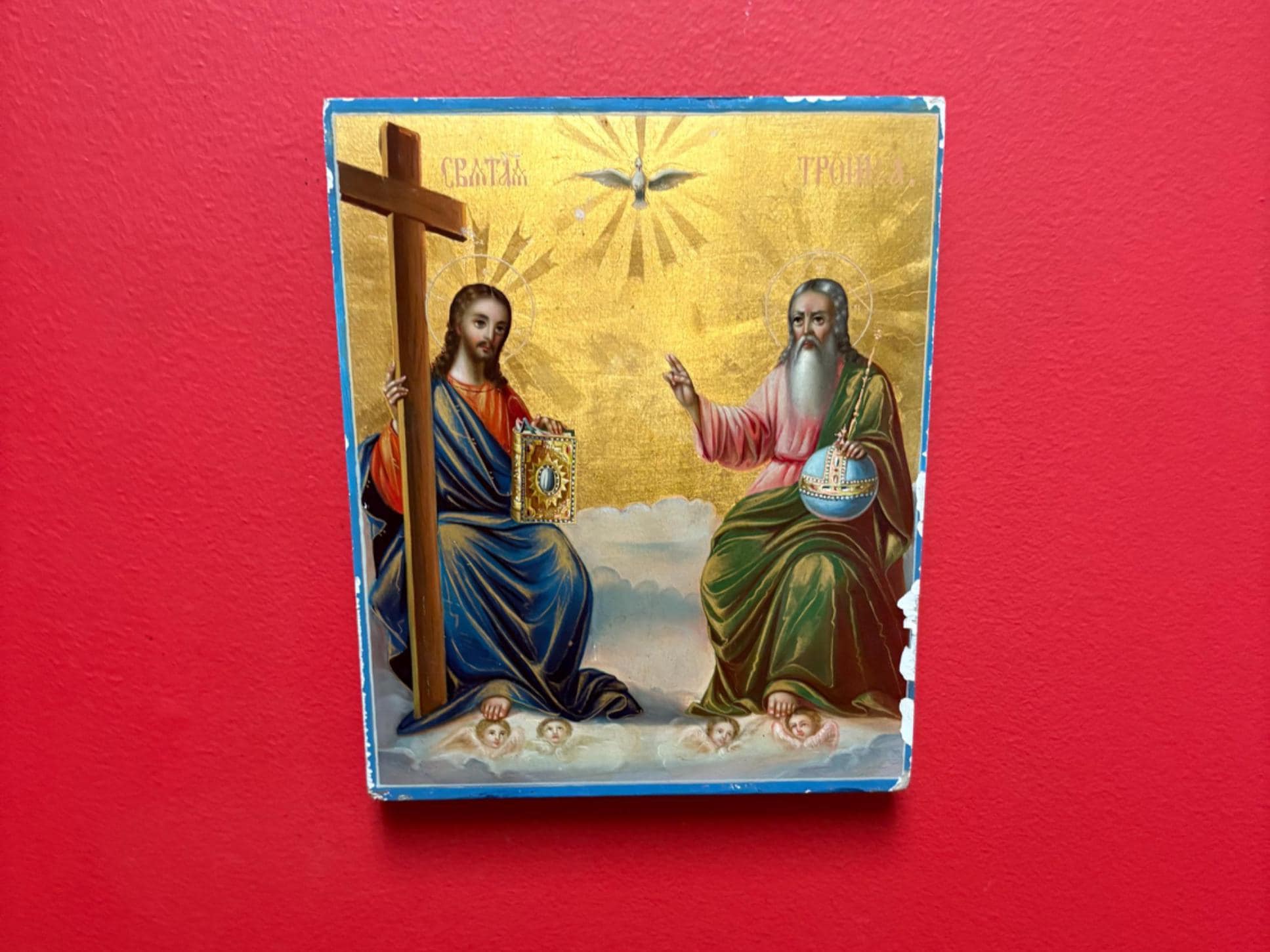 Amazing vintage 1960s Ethiopian gilt framed painted icon fabulous condition info on back wow perfect