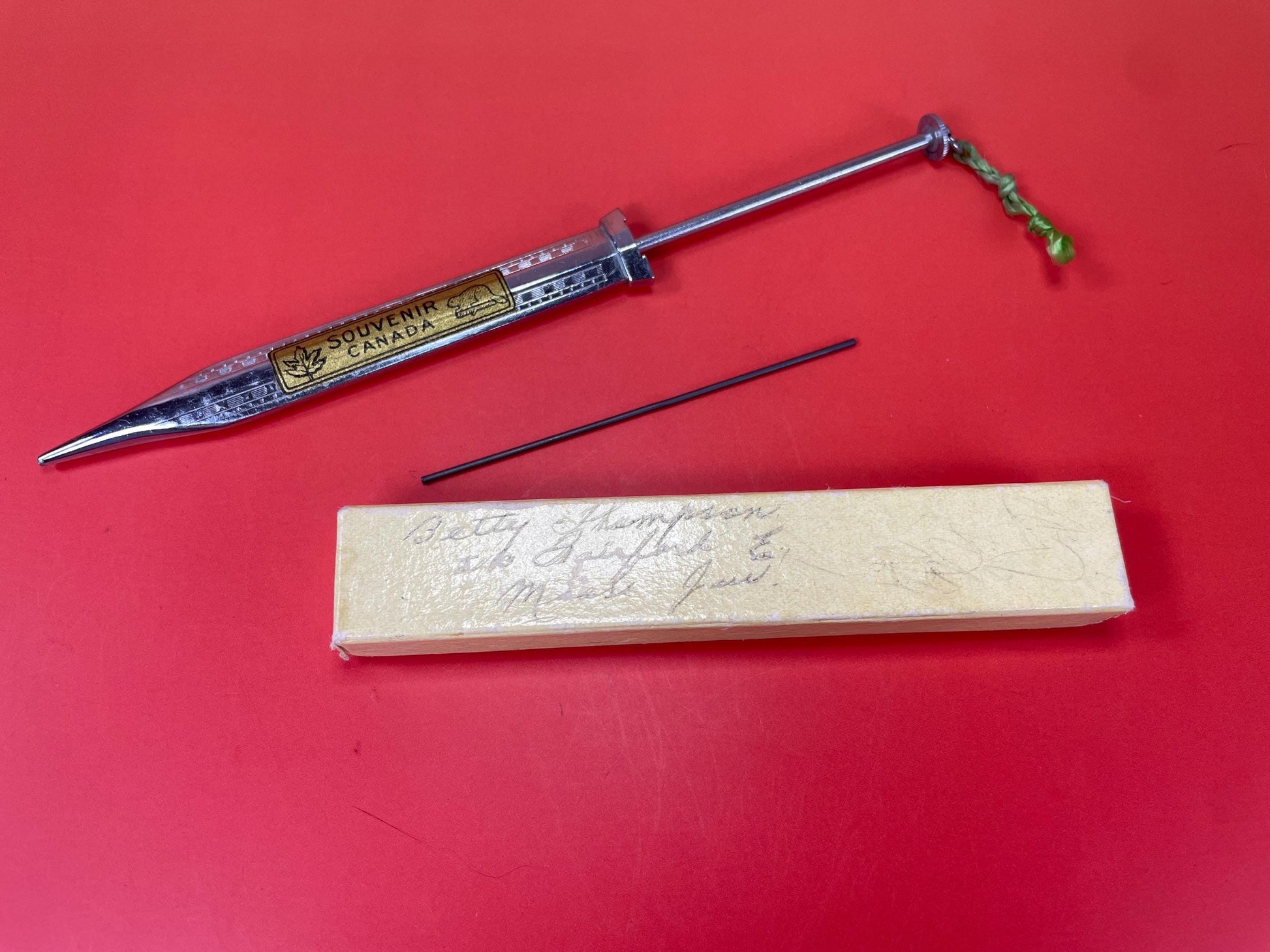 Amazing Vintage mechanical pencil with 2 extra pieces of graphite lead stored inside. Box included.