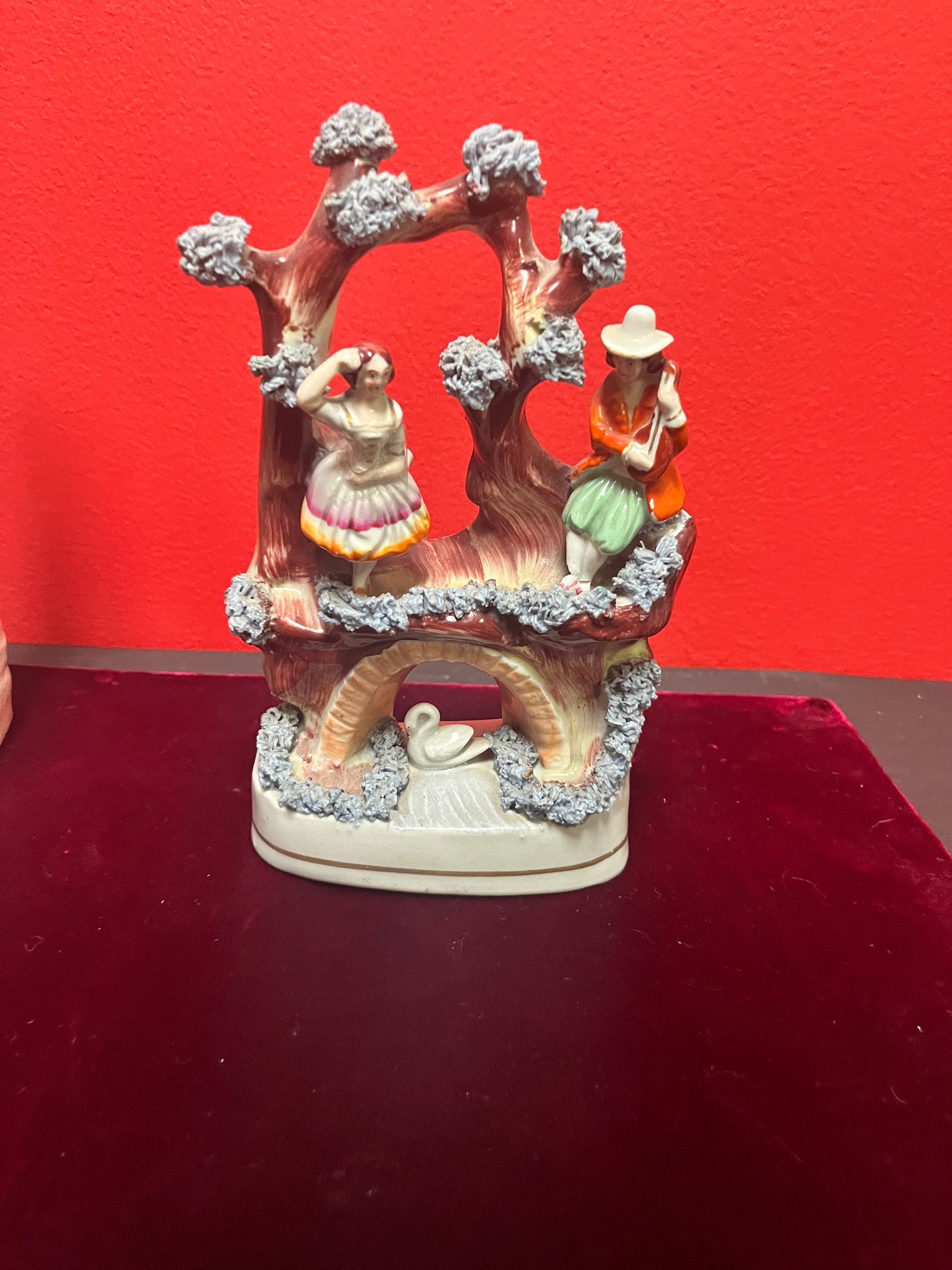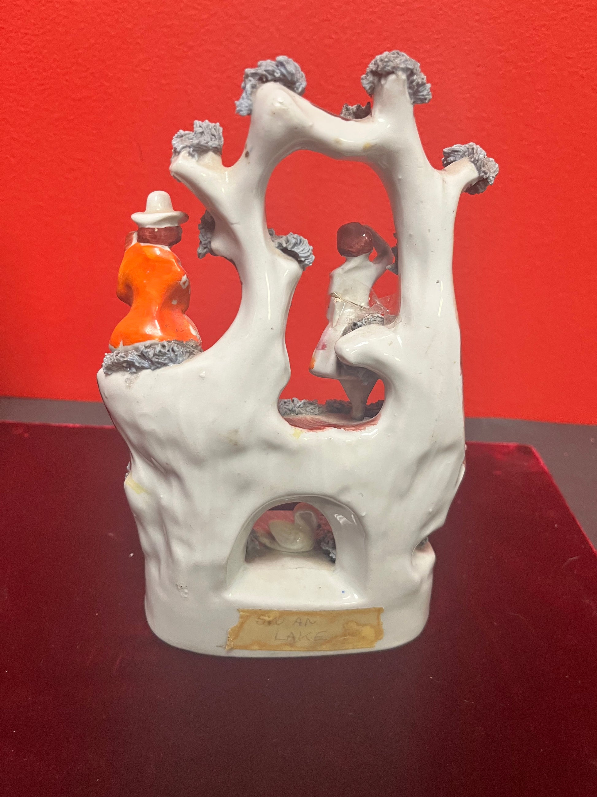 8 inch tall antique Staffordshire Swan Lake statue great antique condition see photos