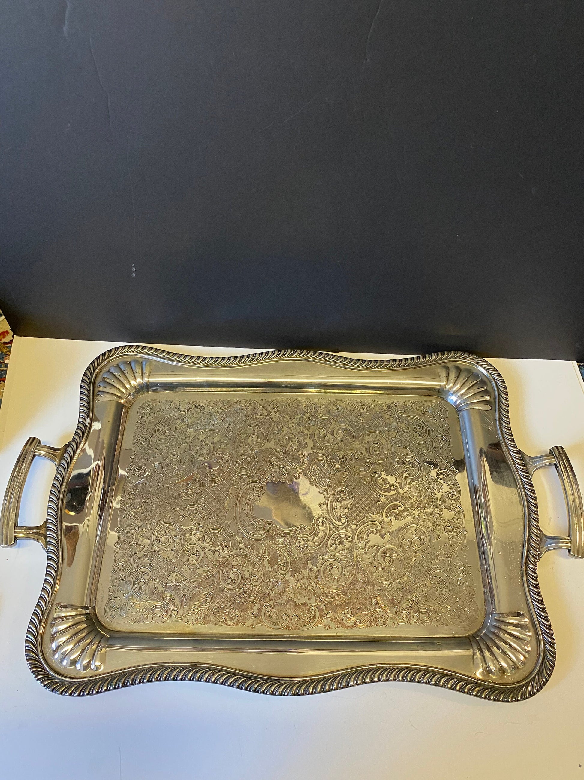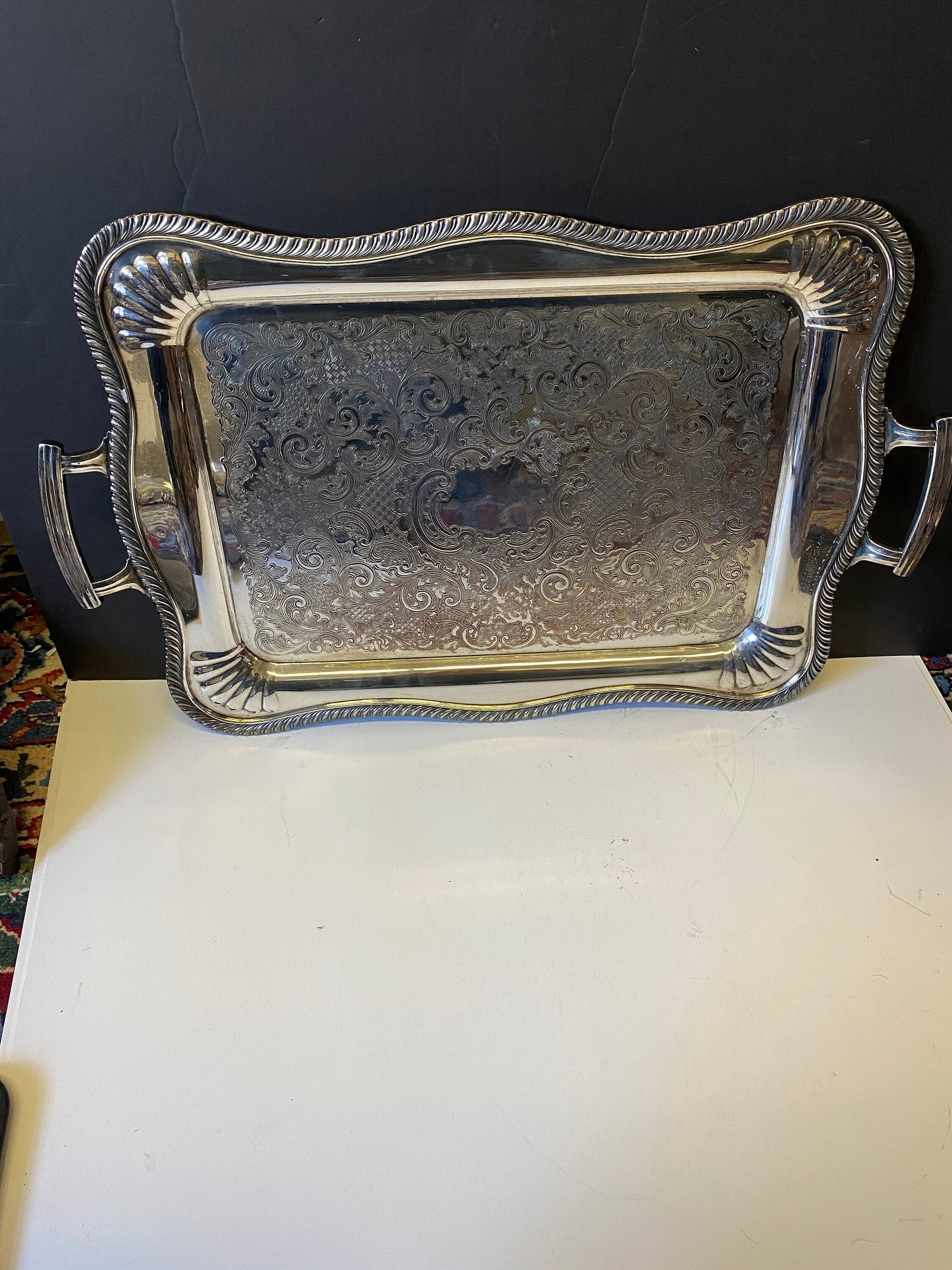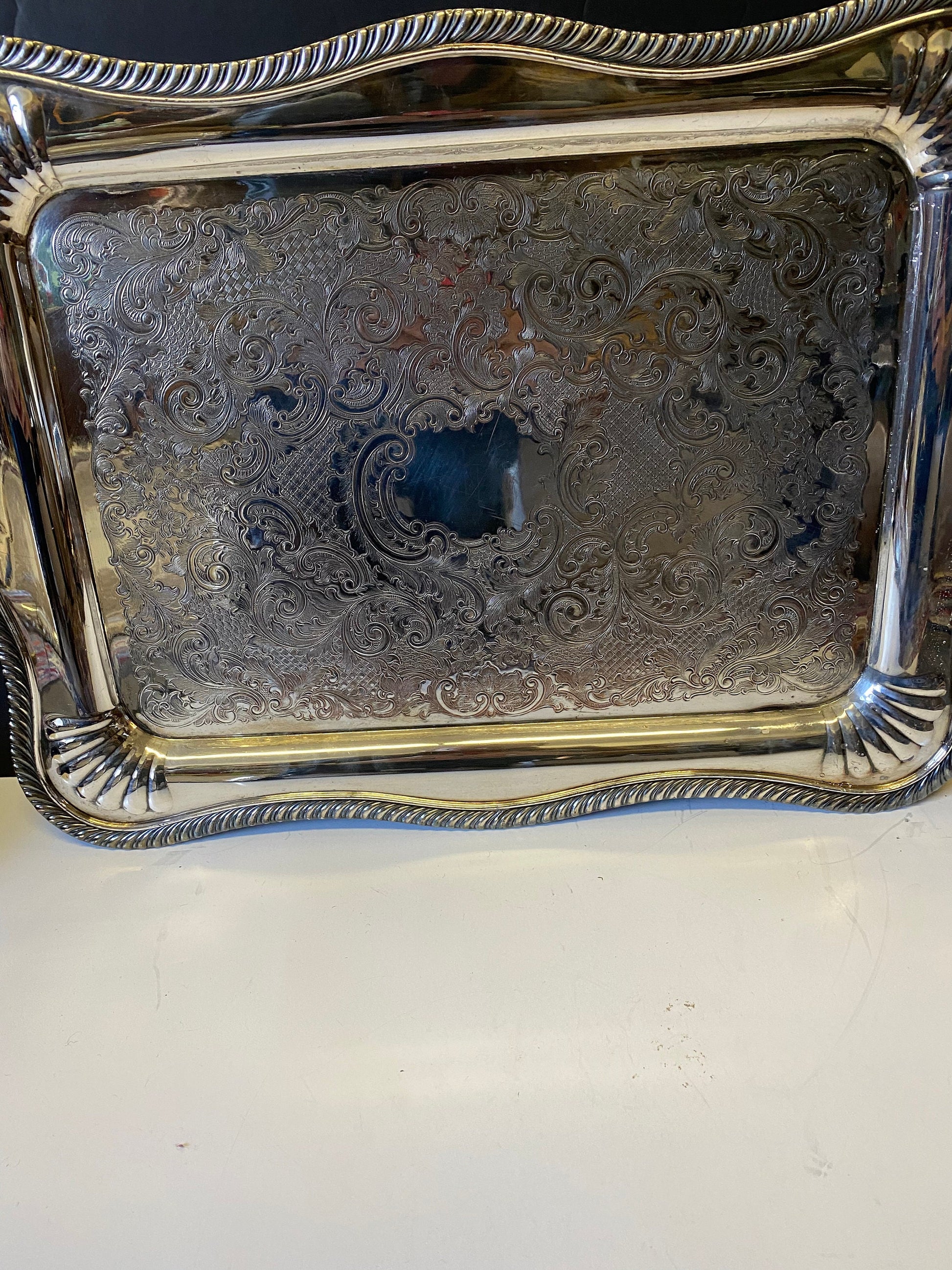 An absolutely cracking 24 x 15 Antique Canadian made double handle art deco silver plated serving tray with scalloped corners