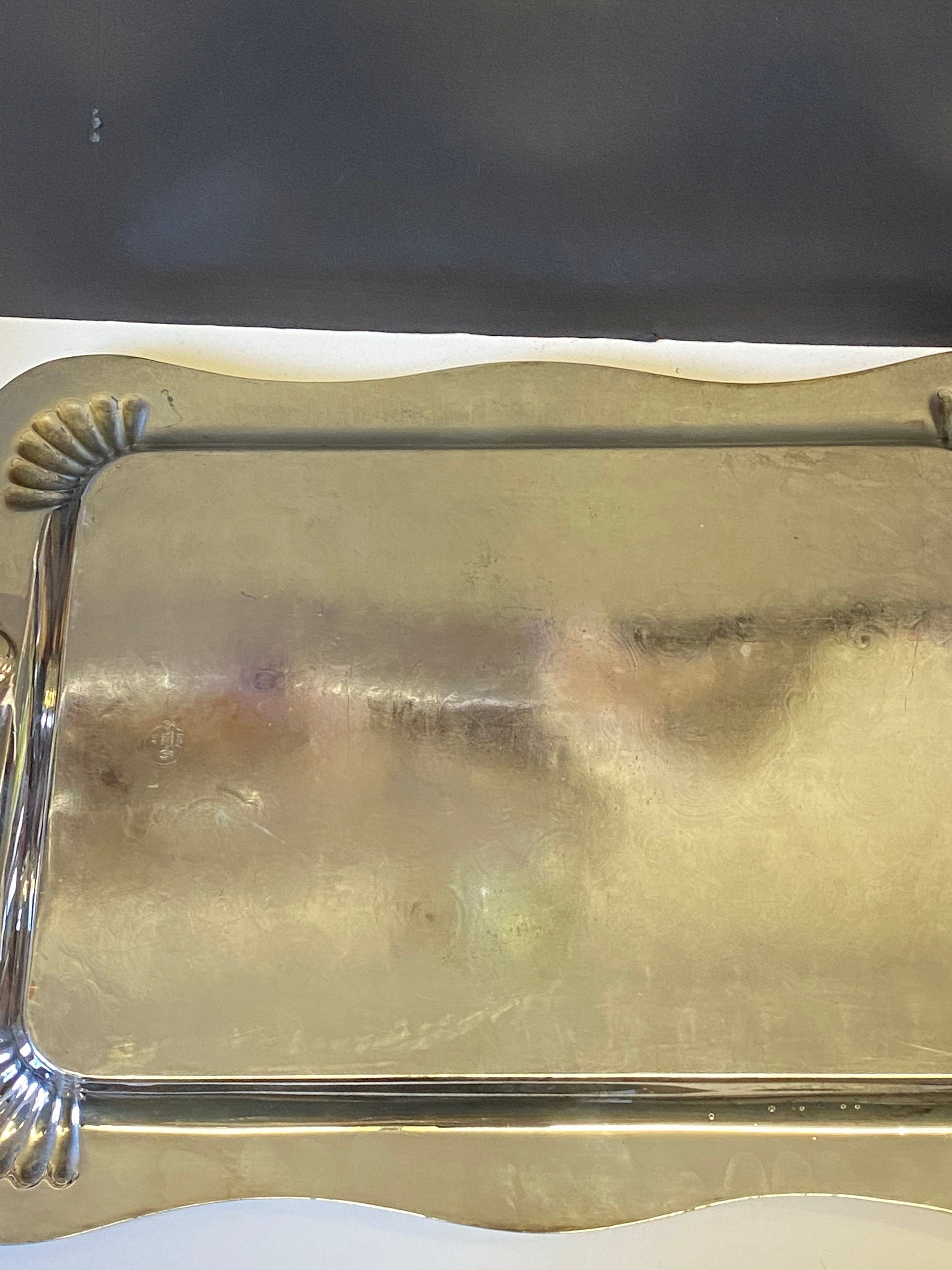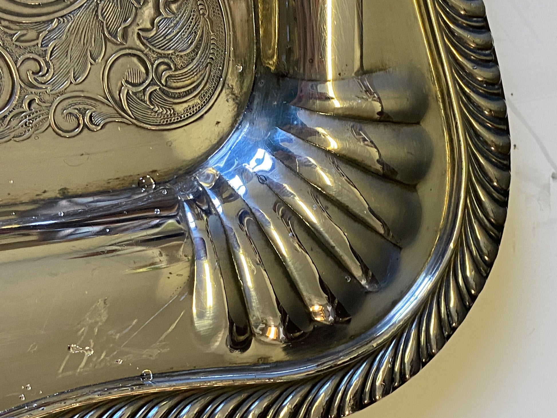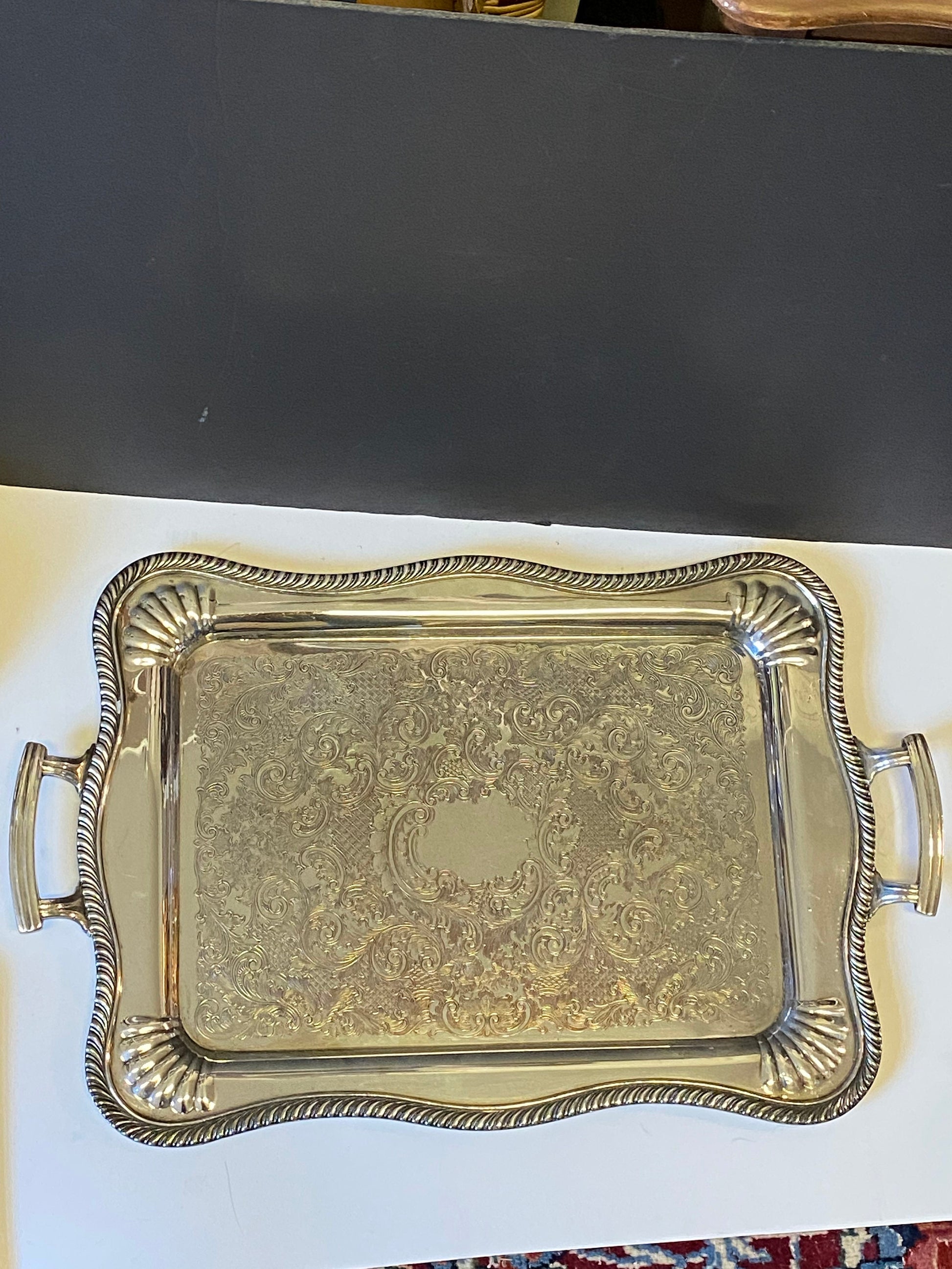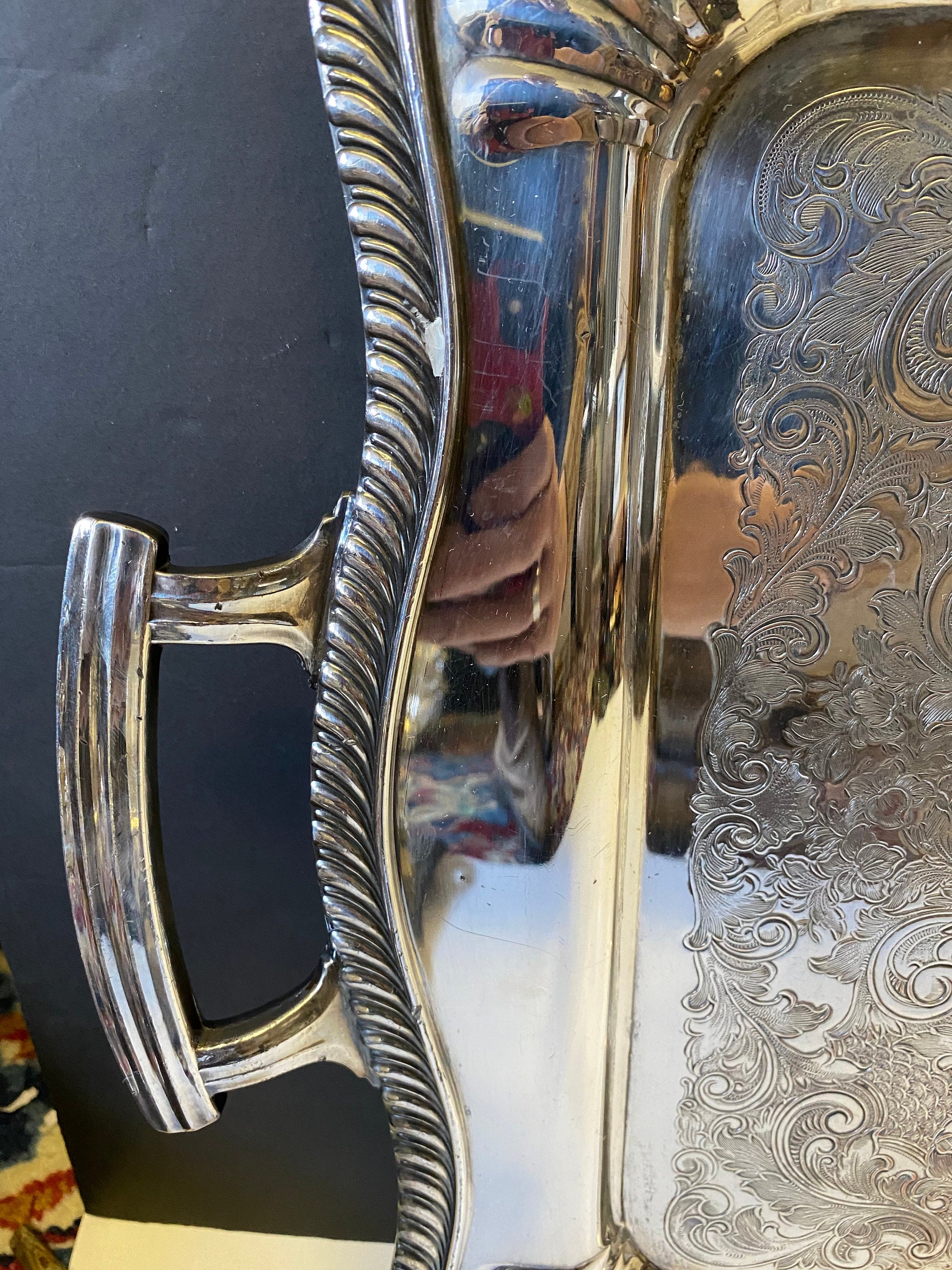 An absolutely cracking 24 x 15 Antique Canadian made double handle art deco silver plated serving tray with scalloped corners