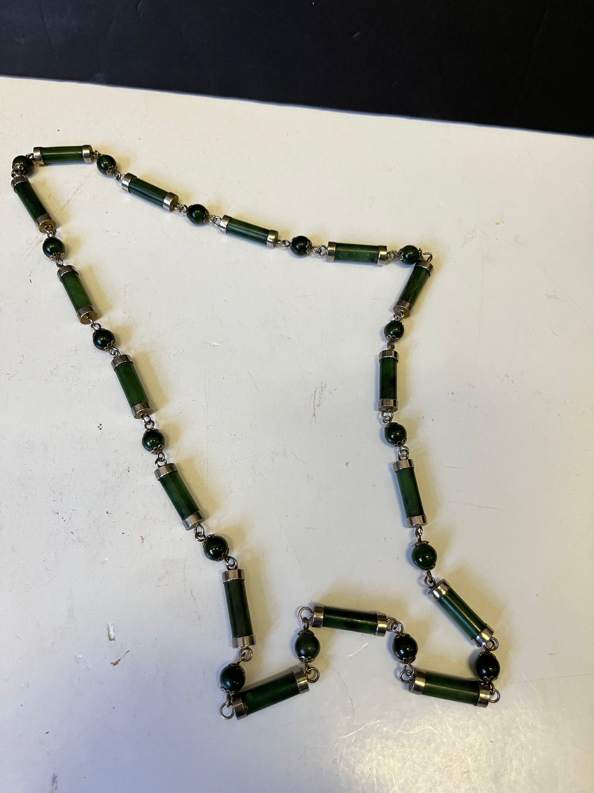 An Absolutely fabulous old Chinese Jade and gilded Silver (not tested) 26 inch necklace Absolutely fabulous quality no clasp