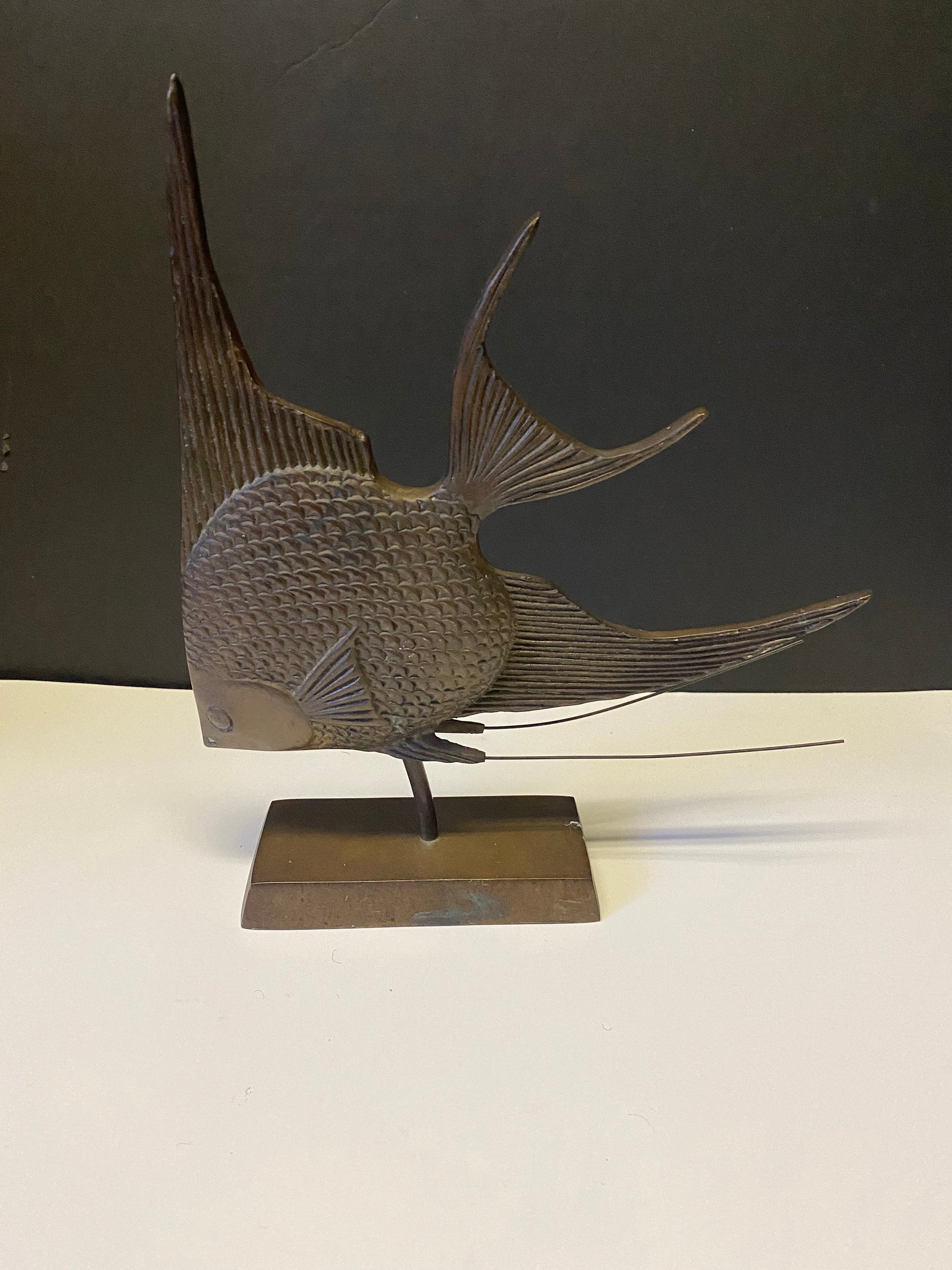 Absolutely magnificent 10 inch bronze fish on wood stand with wonderful Patina! super piece