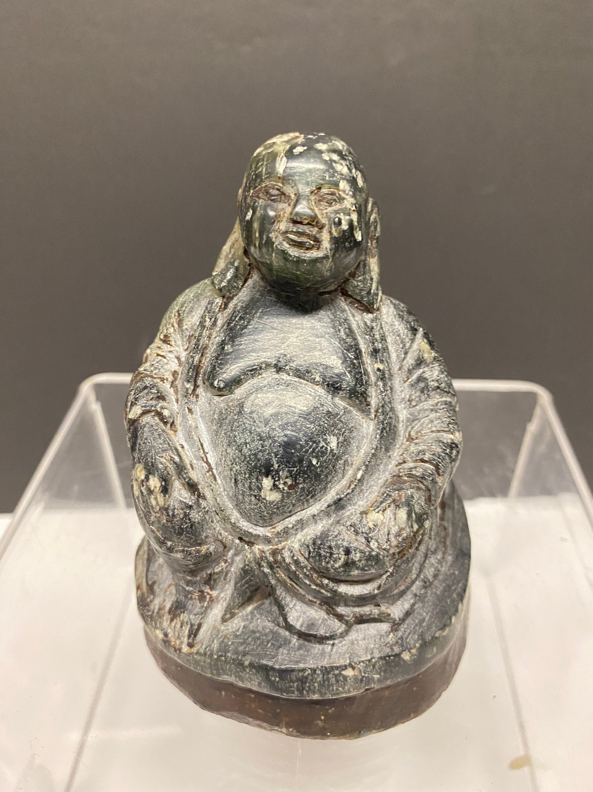 Amazing Antique and chinese 5 inch soapstone buddha on stand From