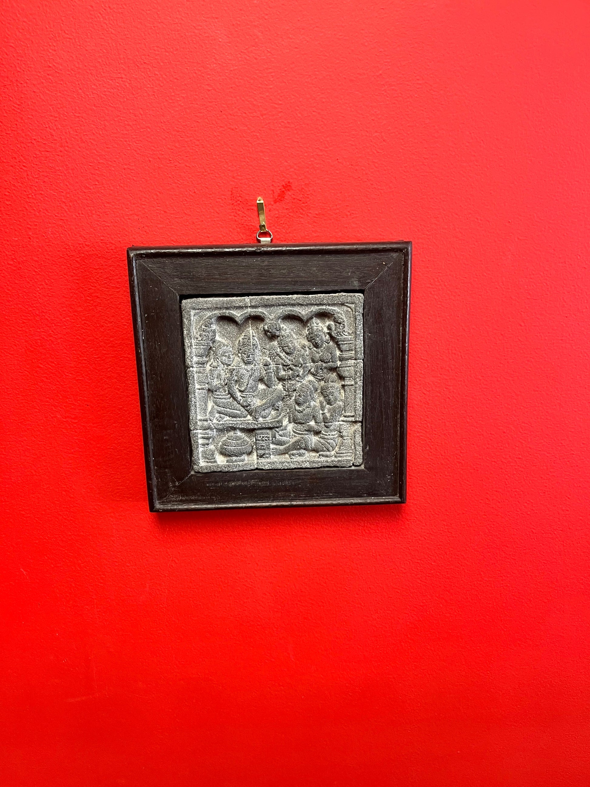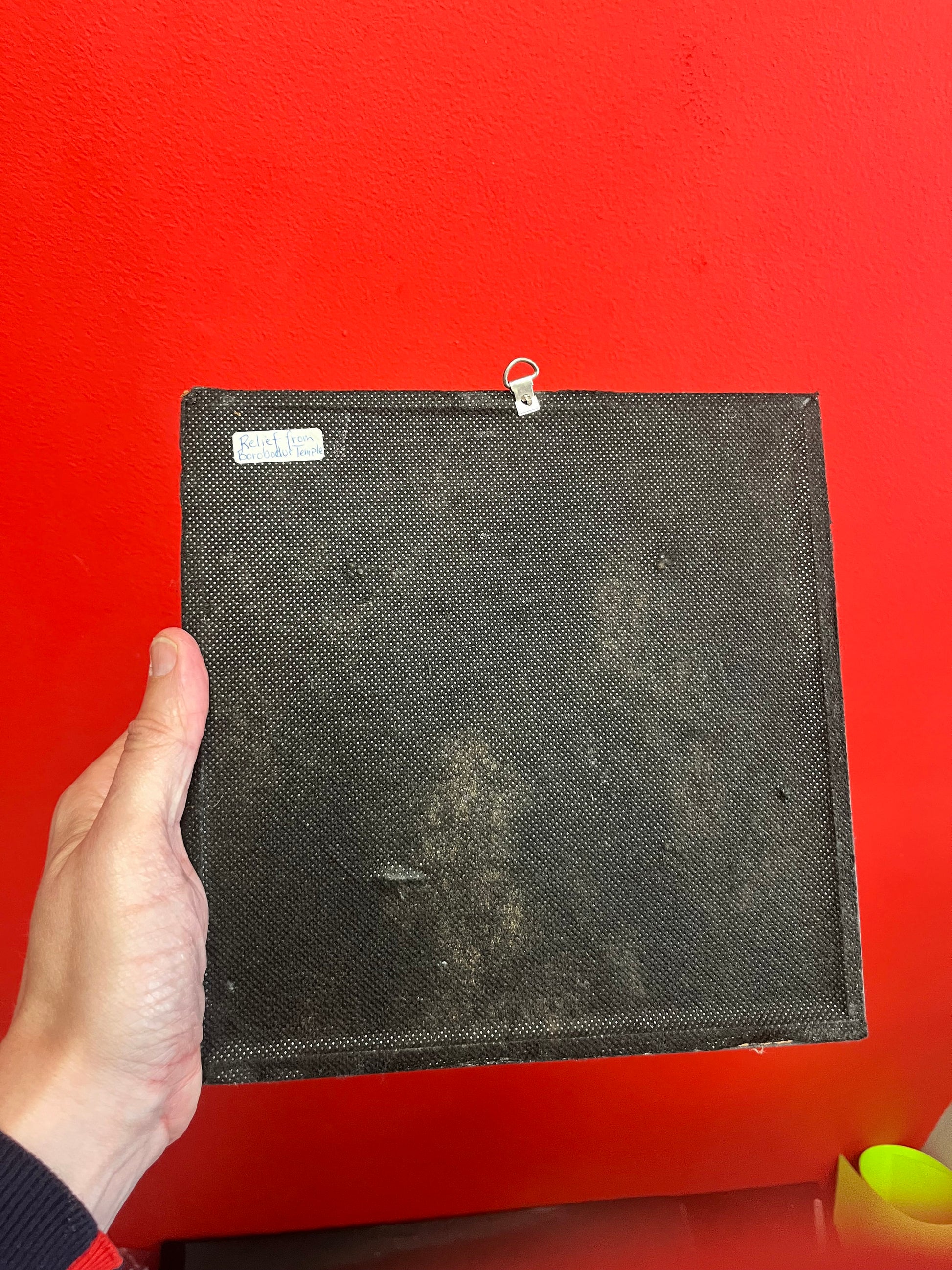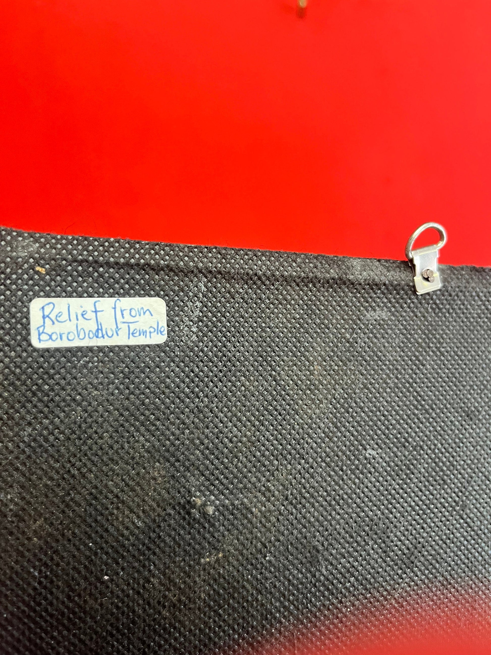 Antique 9 x 9 authentic relief plaque in framed plaque form BOROBODUR temple great piece of Asian history value priced