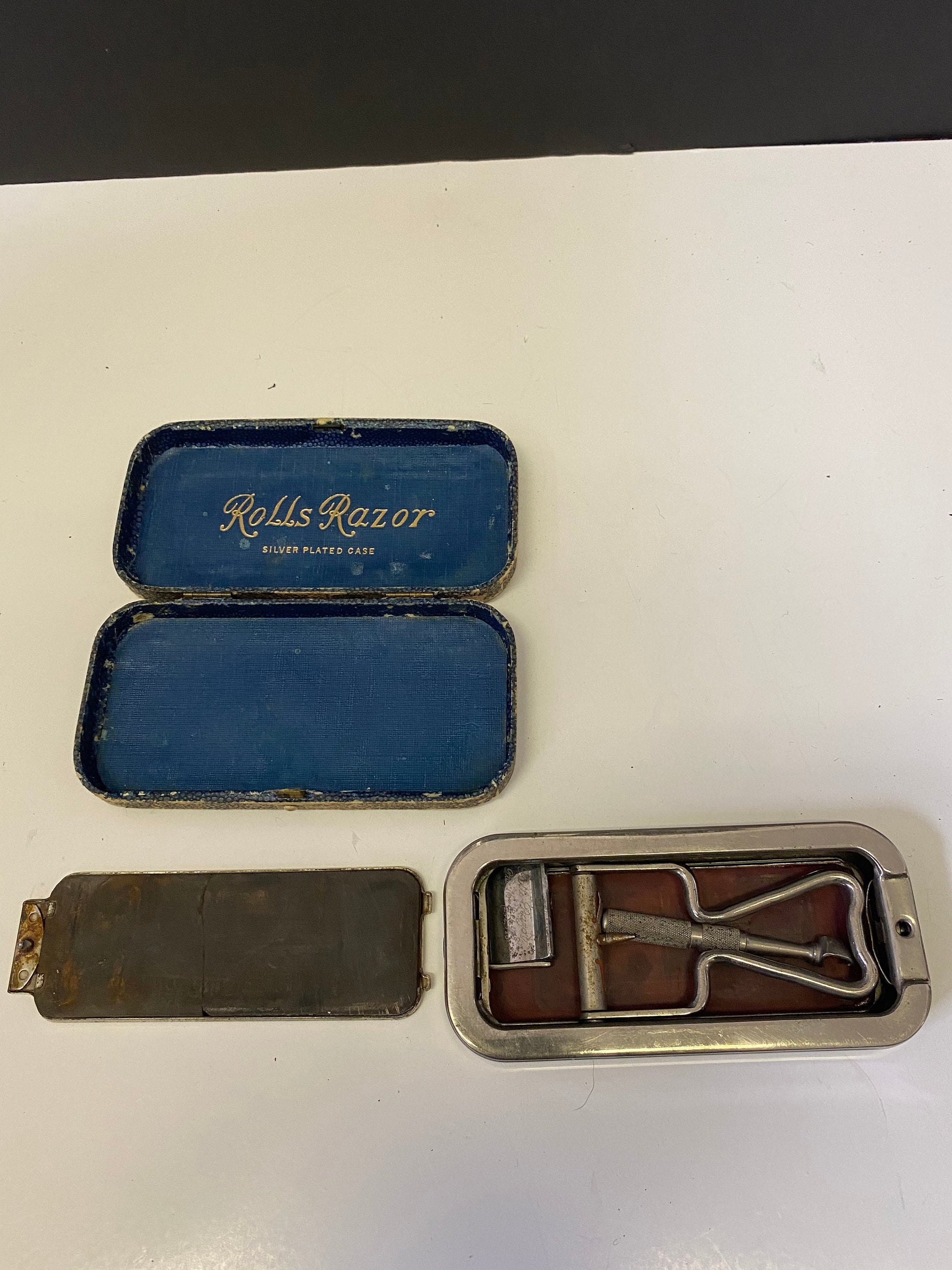 An Antique rolls razor set in silver plated case in original case antique condition great decoration gift for your barber