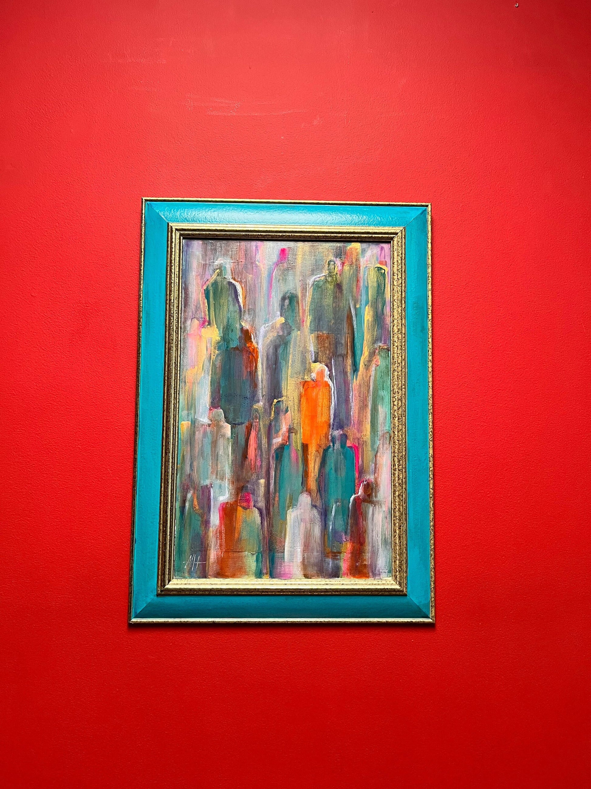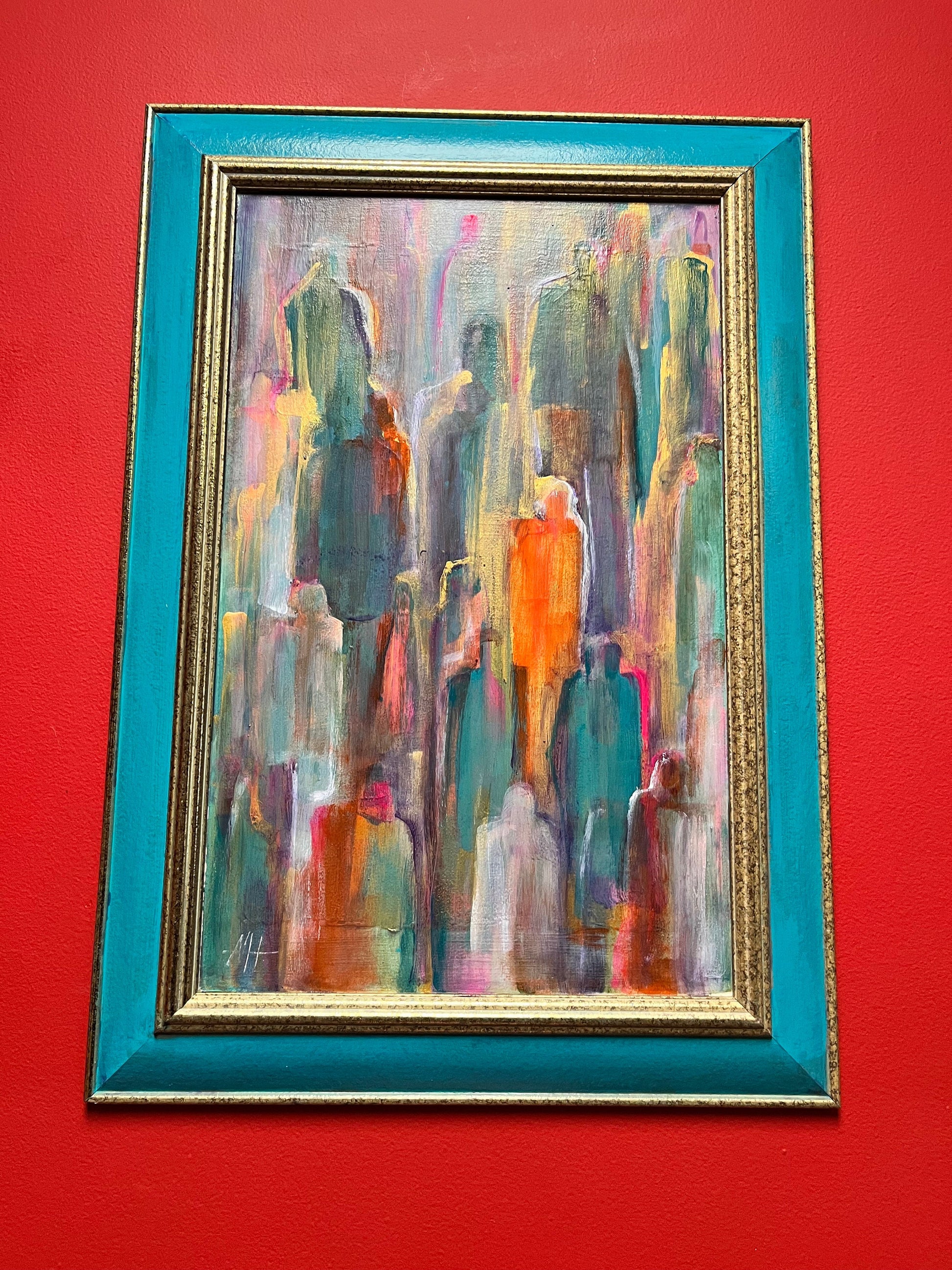 Exquisite 24 x 17 well-known Vancouver Island artist Marie Heath untitled abstract acrylic on board - stunningly framed - wow