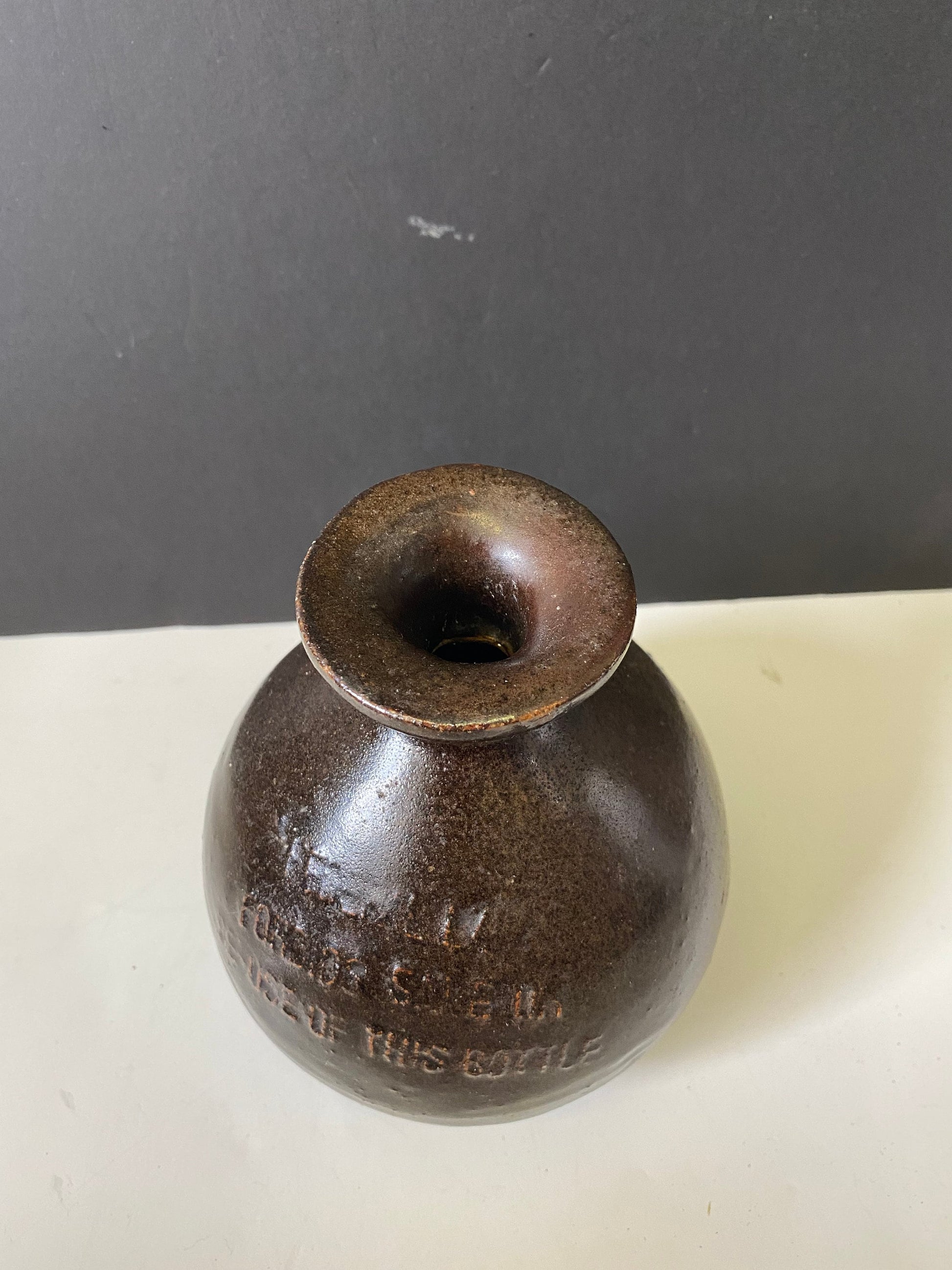 An Unusual Antique chinese soy glazed vessel signed and stamped etc Wonderful piece of Chinese history found on VanIsland 6 inches