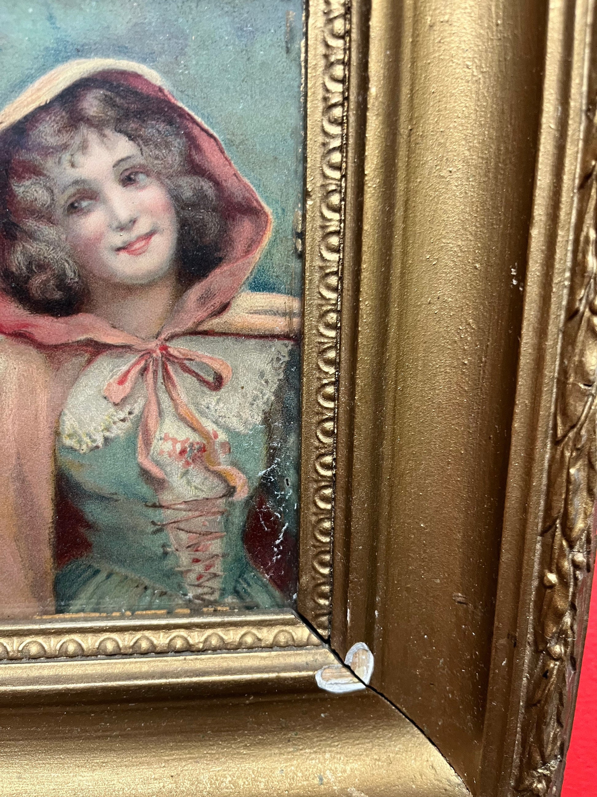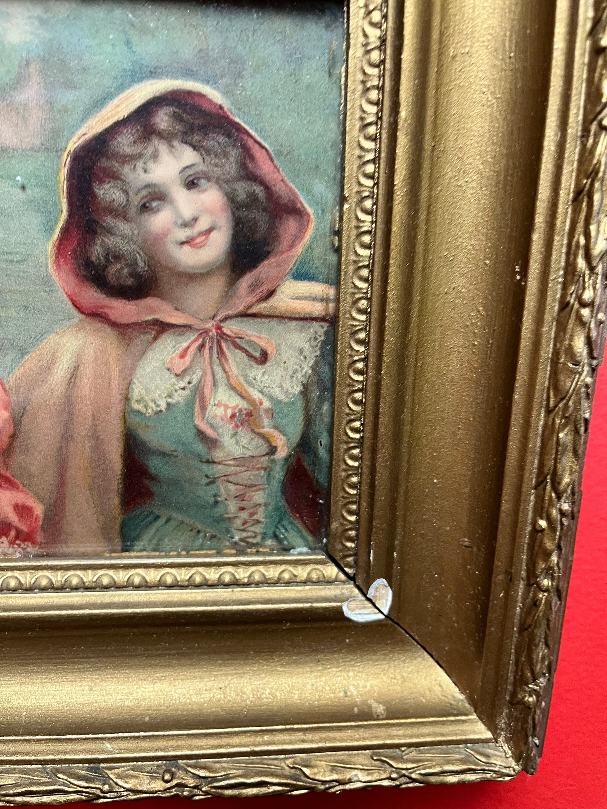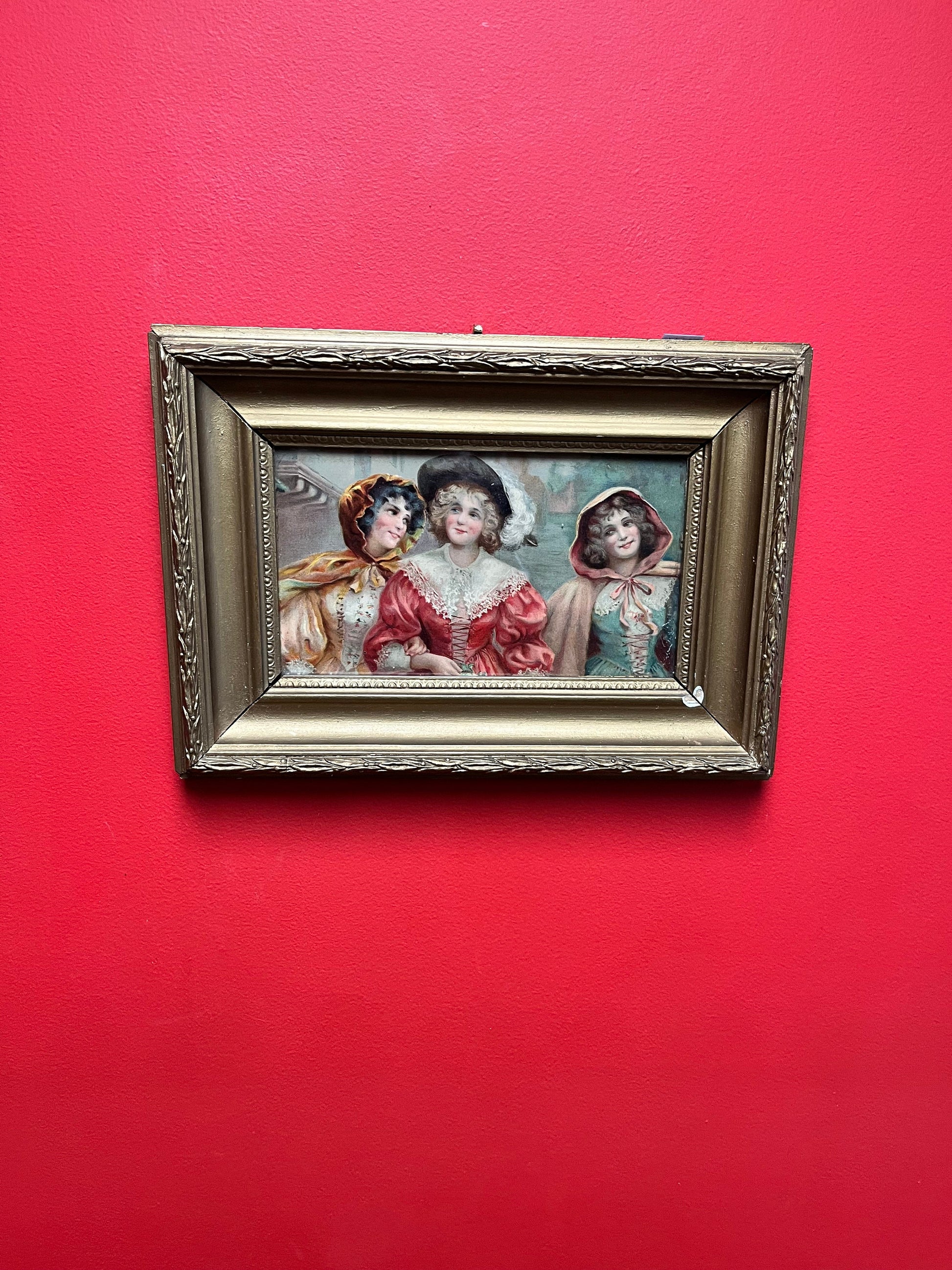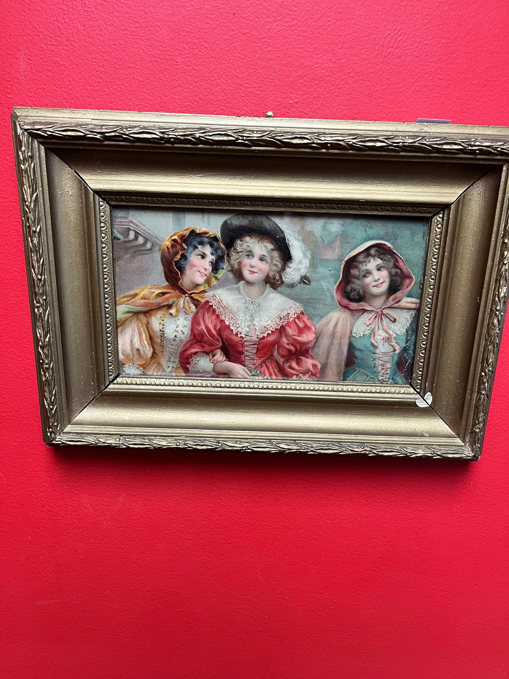 Antique 15 x 11 Victorian print of ladies in a fabulous gilt frame lovely imagery