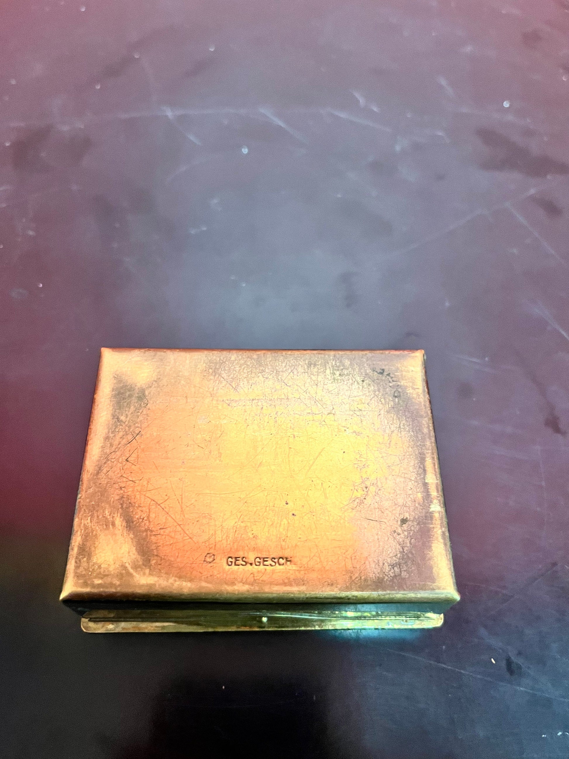 Antique German bronze Stamp box 3 1/2 x 2 1/2 x 1 high stunning signed piece - value priced