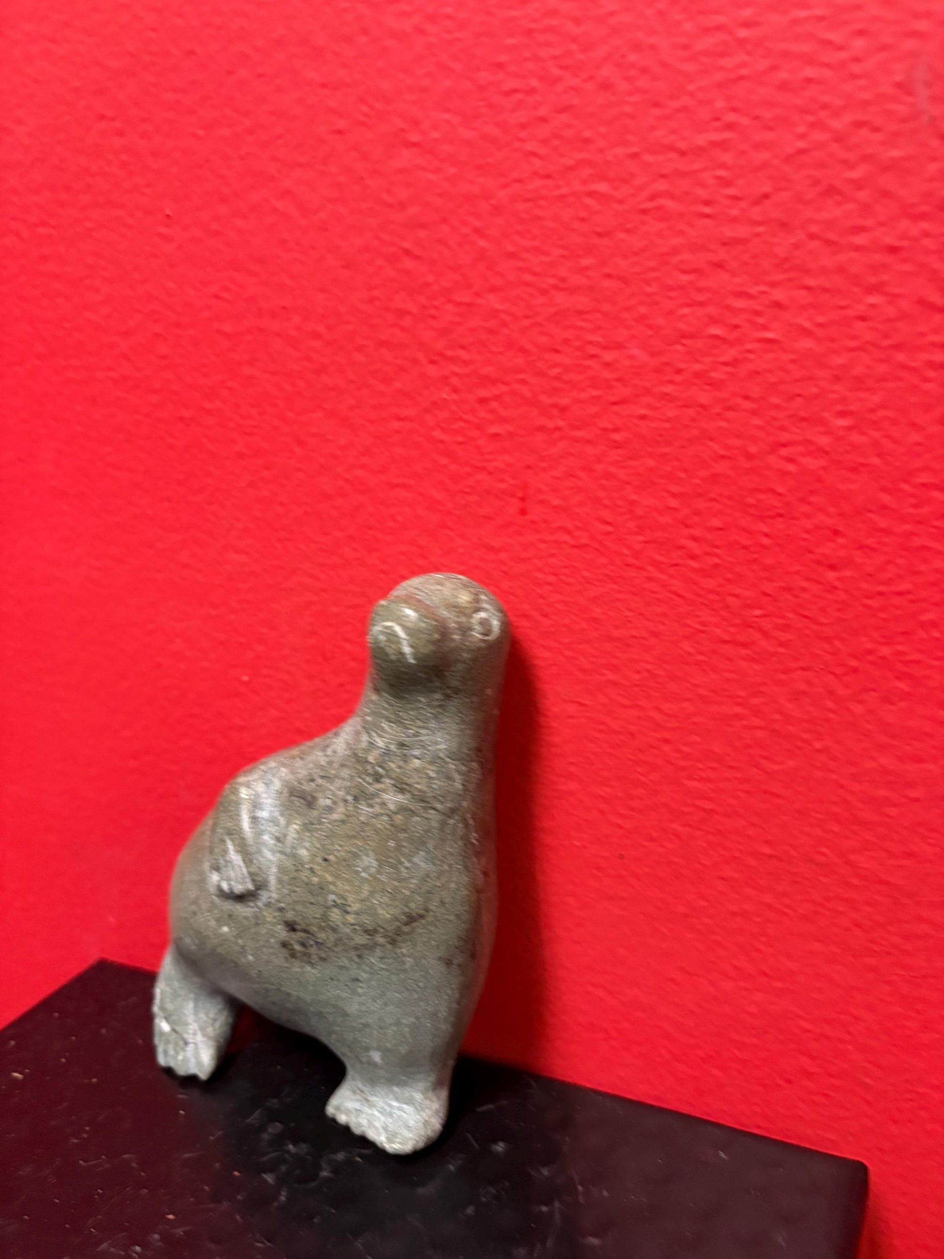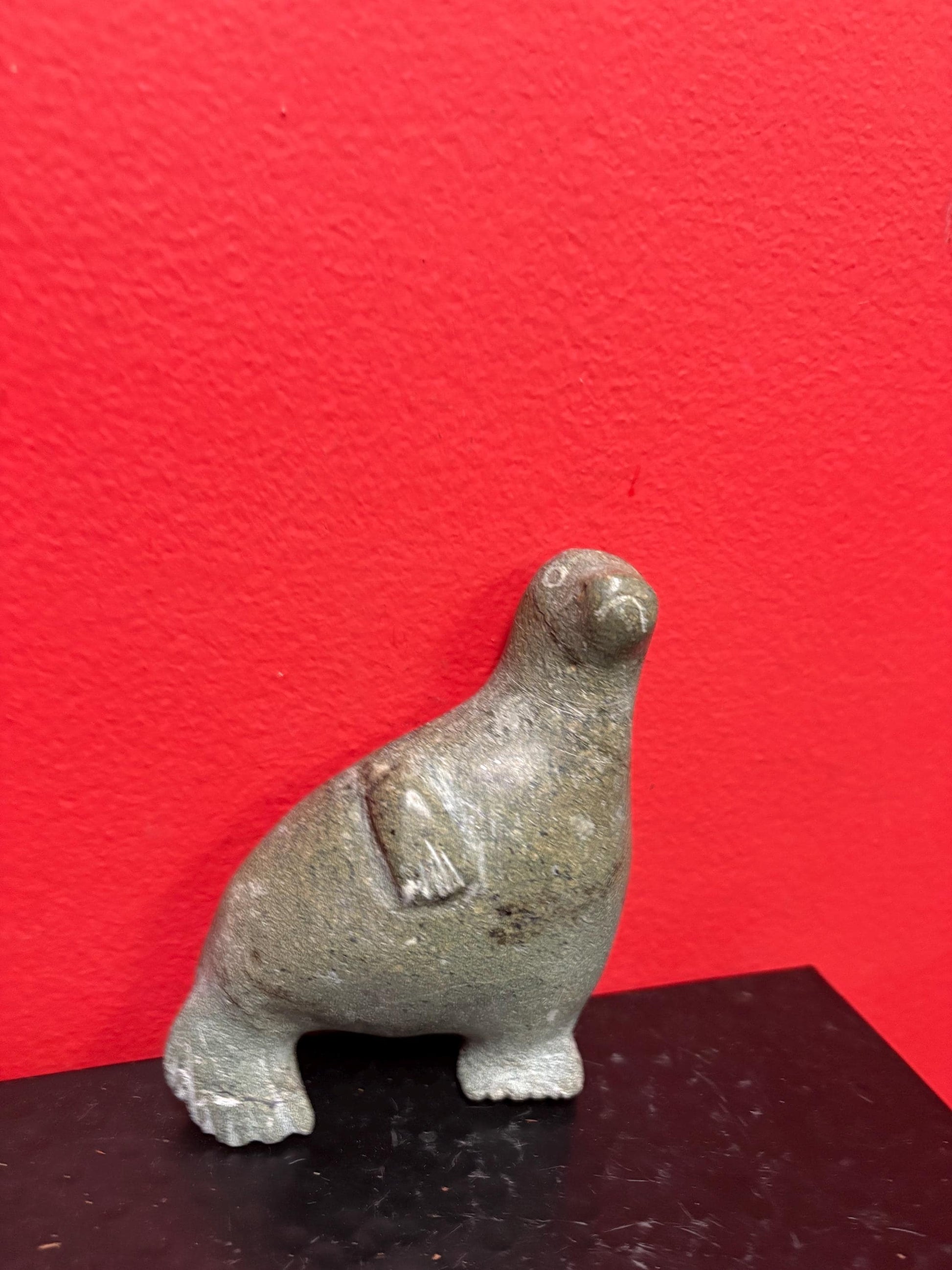 Antique 5 inch long authentic carved Inuit soap stone carved seal - B