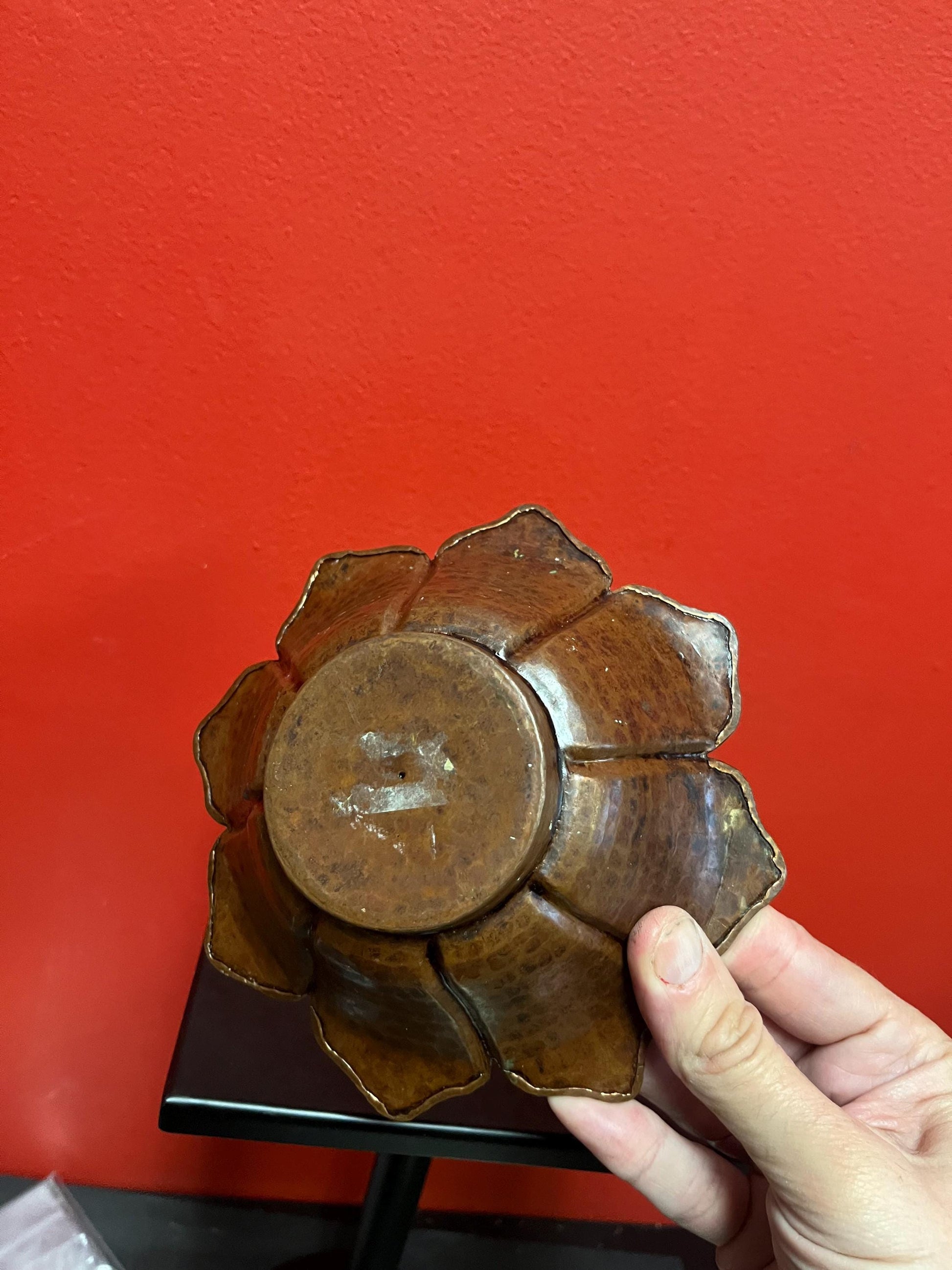 Antique 7 x 2“ tall copper hammered leaf shaped bowl useful and wonderful decor wow