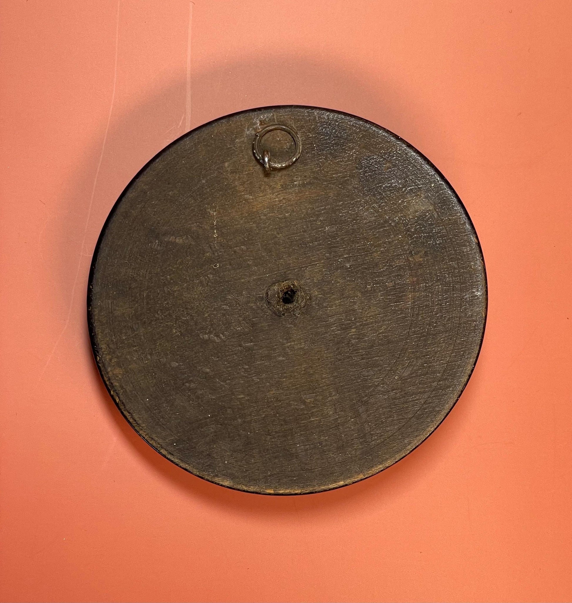 Antique Brass and Wood Religious Plaque Jesus Face