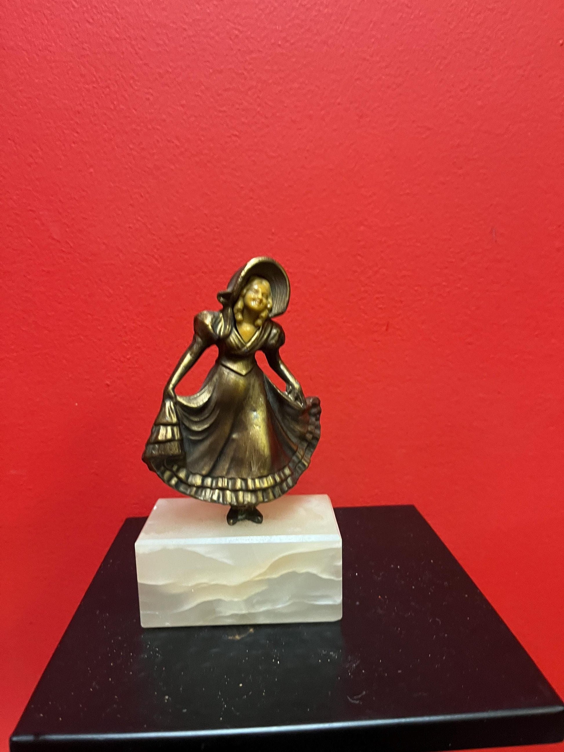 Antique bronze and bone statue of a lady on onyx base wonderful condition and patina