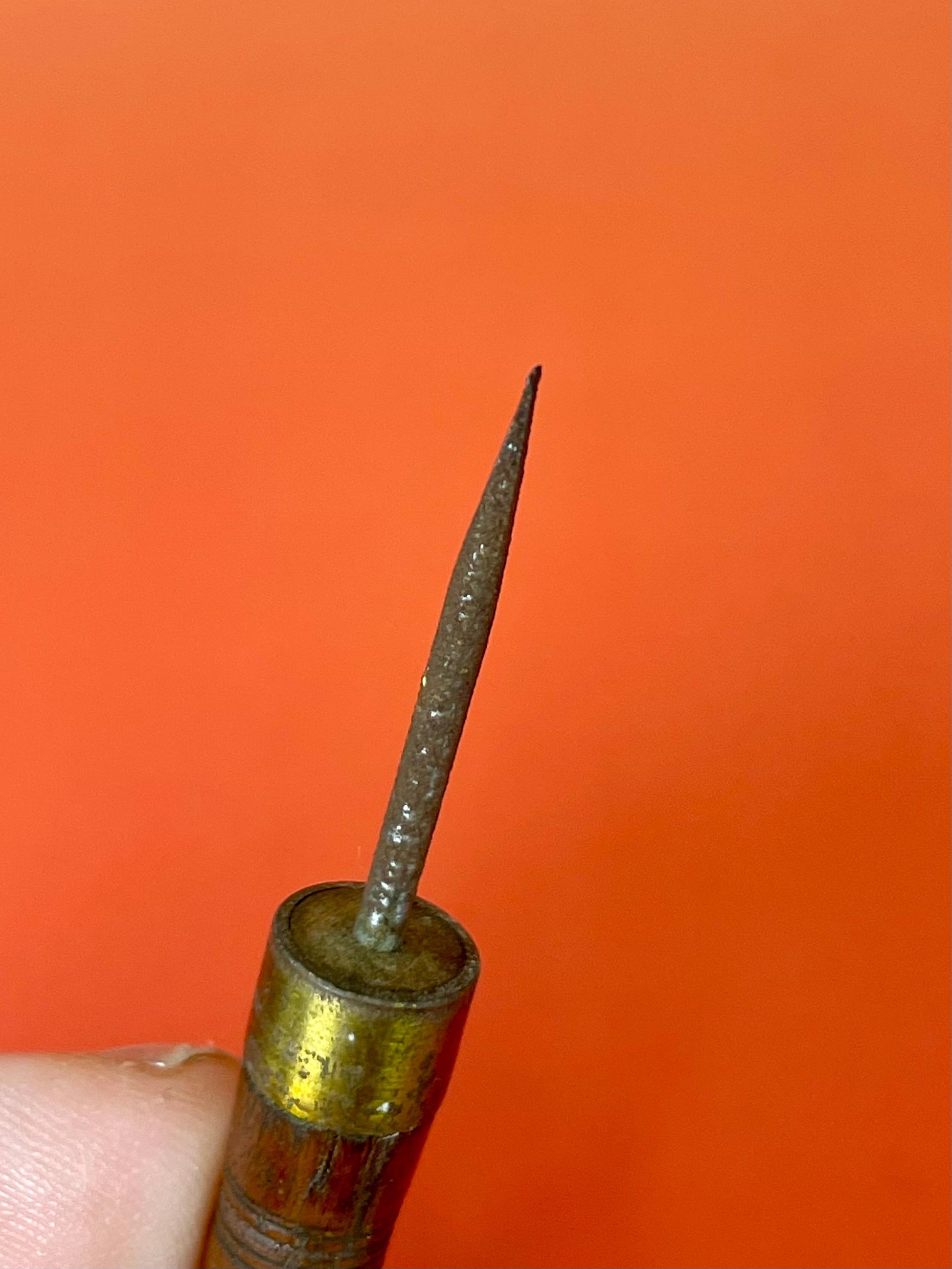 This antique mini screwdriver measures 3 inches, offering a compact, classic design perfect for small precision work.