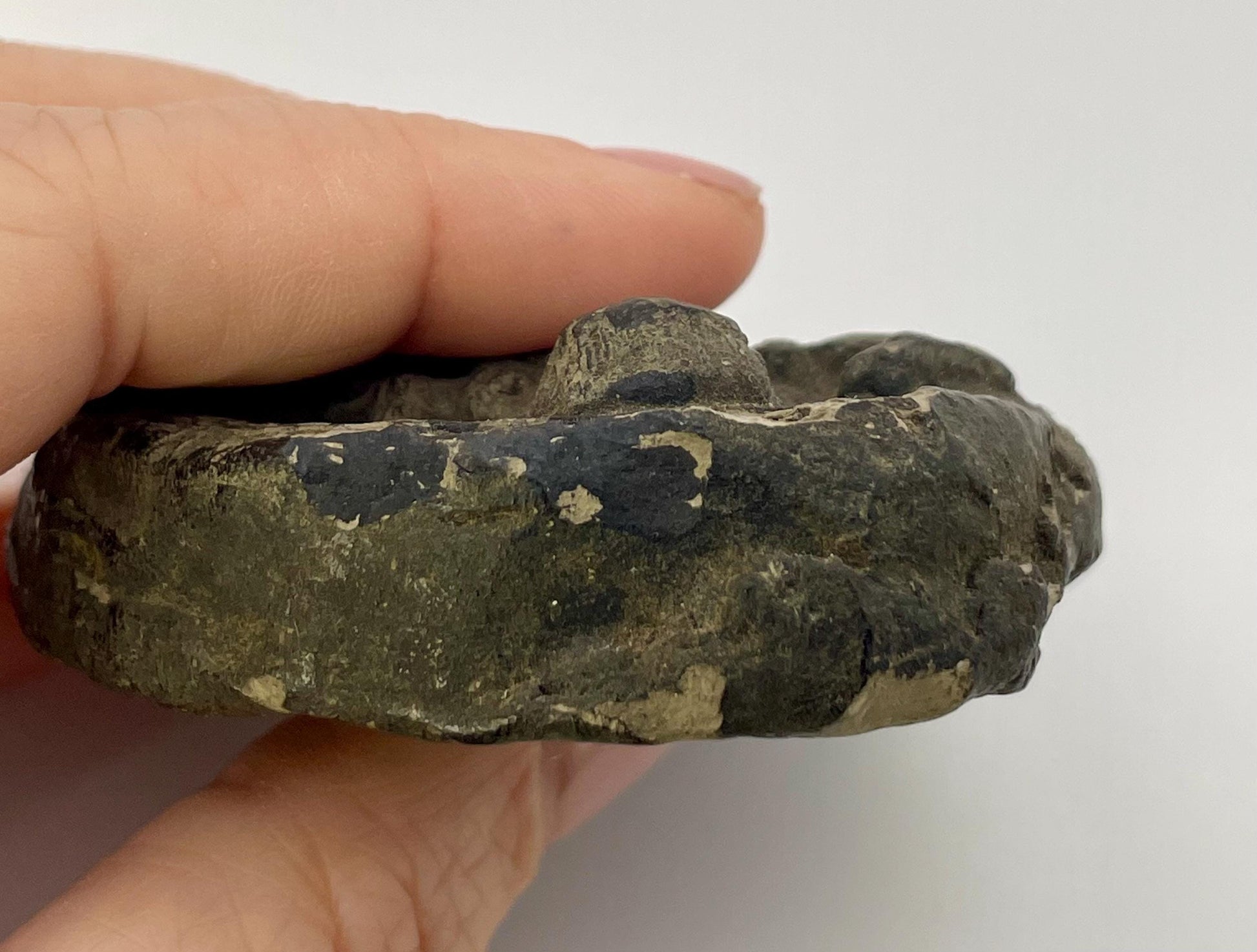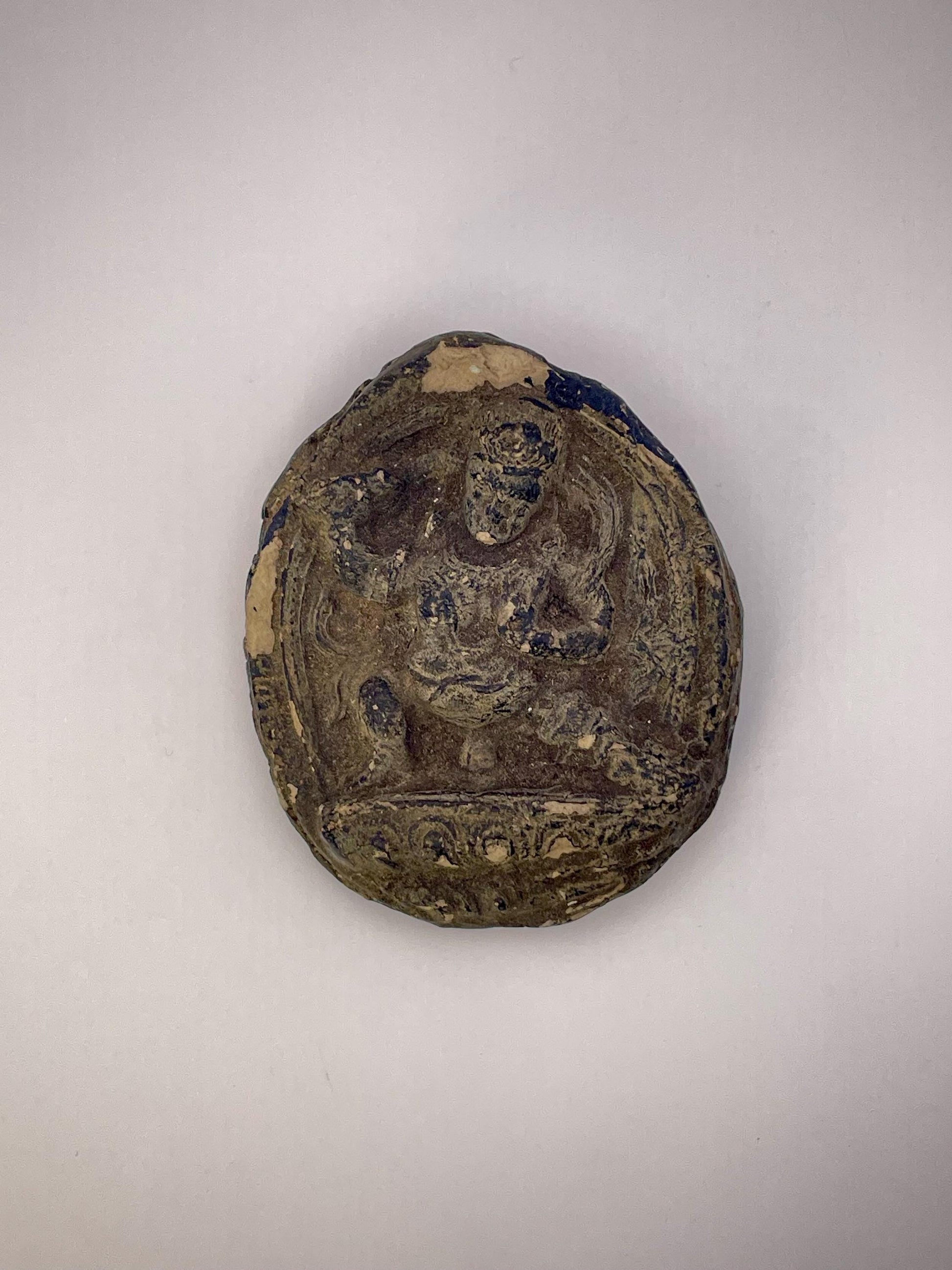 This 3 x 2.5 antique Nepalese artifact features a beautifully aged relief, possibly depicting a deity or spiritual figure. A rare and unique piece, it carries a sense of history and cultural significance