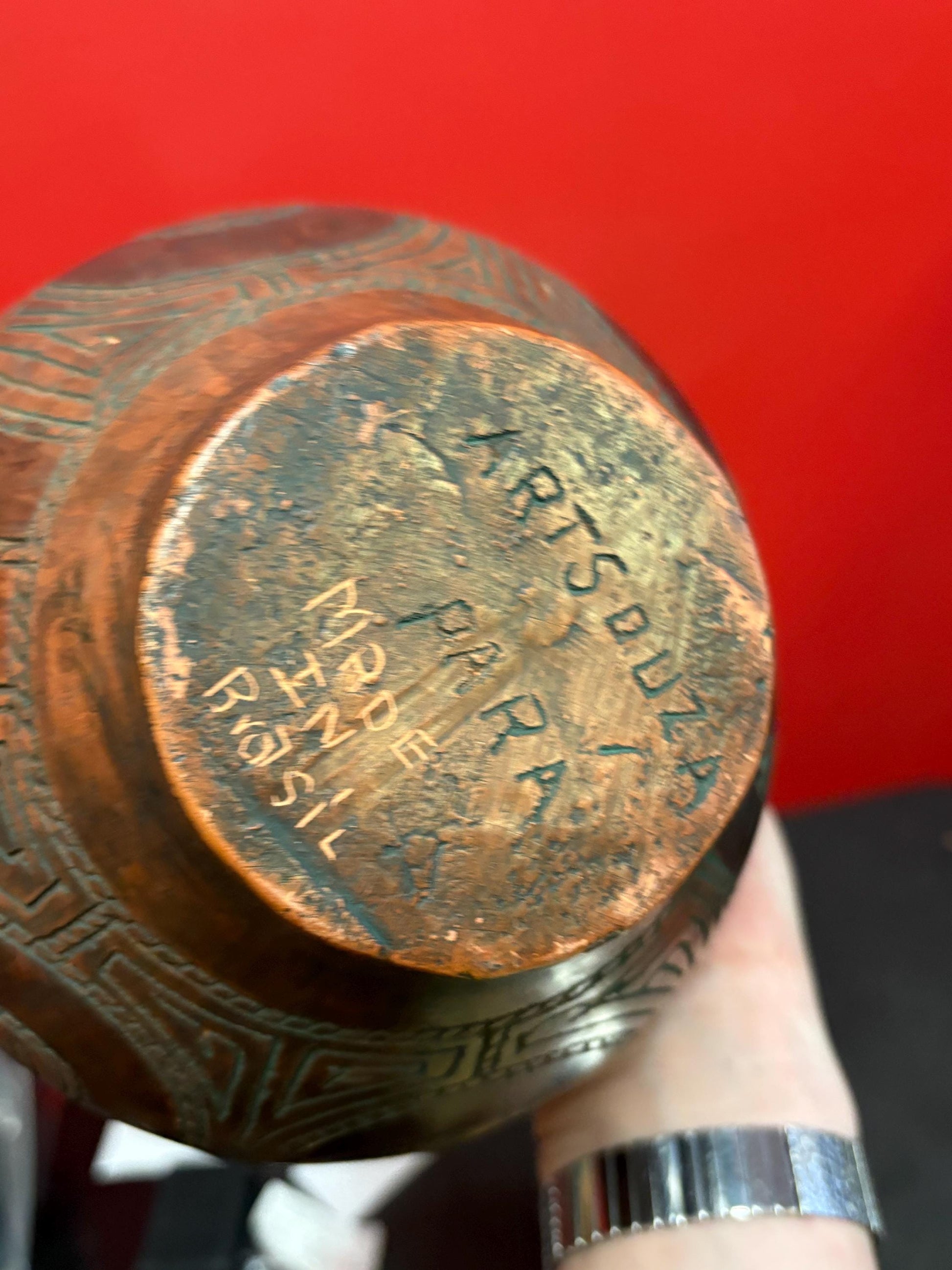 Antique South American Brazilian ARTSOUZA signed pottery vase in great condition magnificent piece 9 inches high