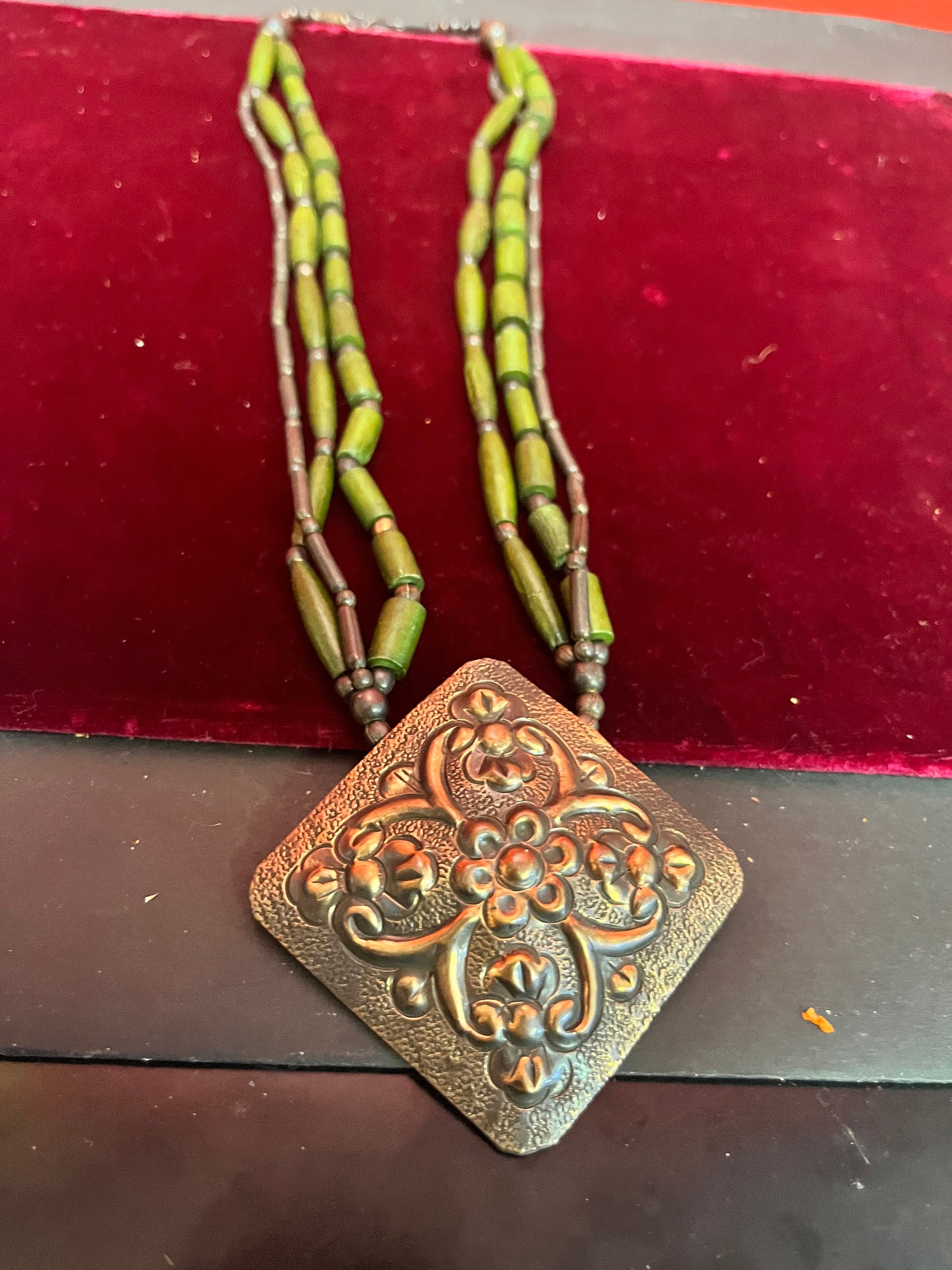 Approx 25 inch stone silver and copper necklace and pendant tribal beauty