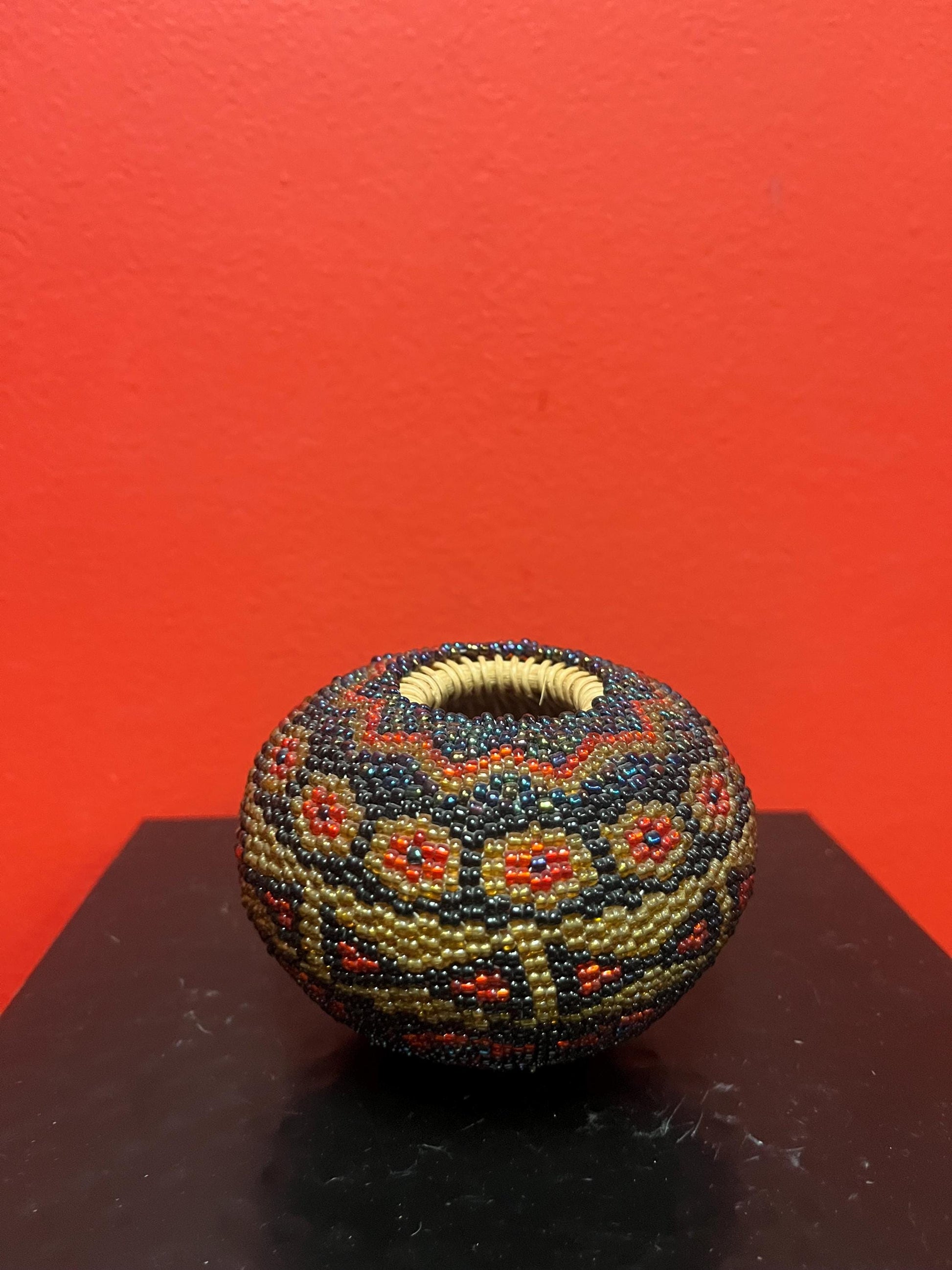 Approx 3 inch high indigenous beaded basket exceptional condition and quality