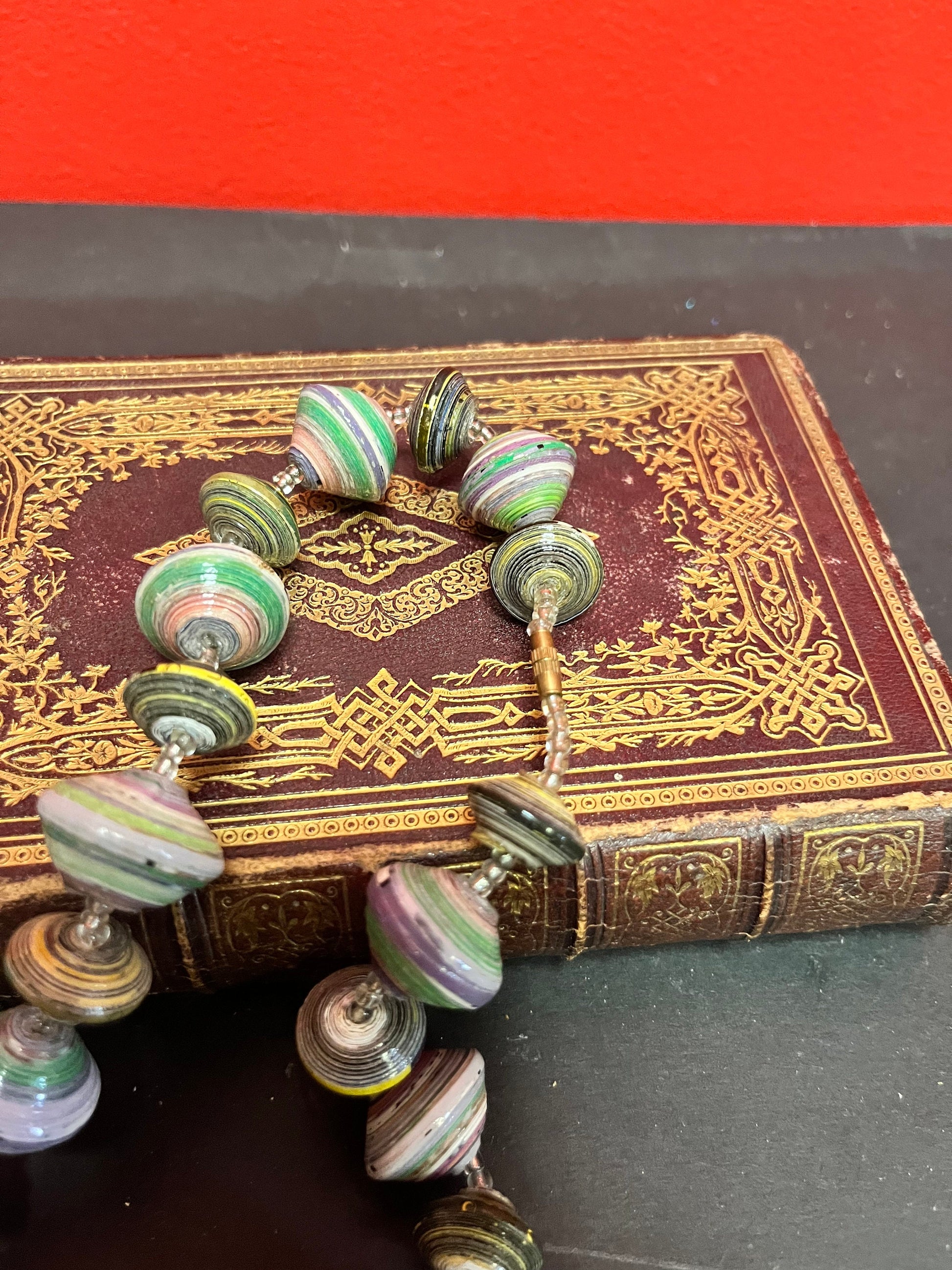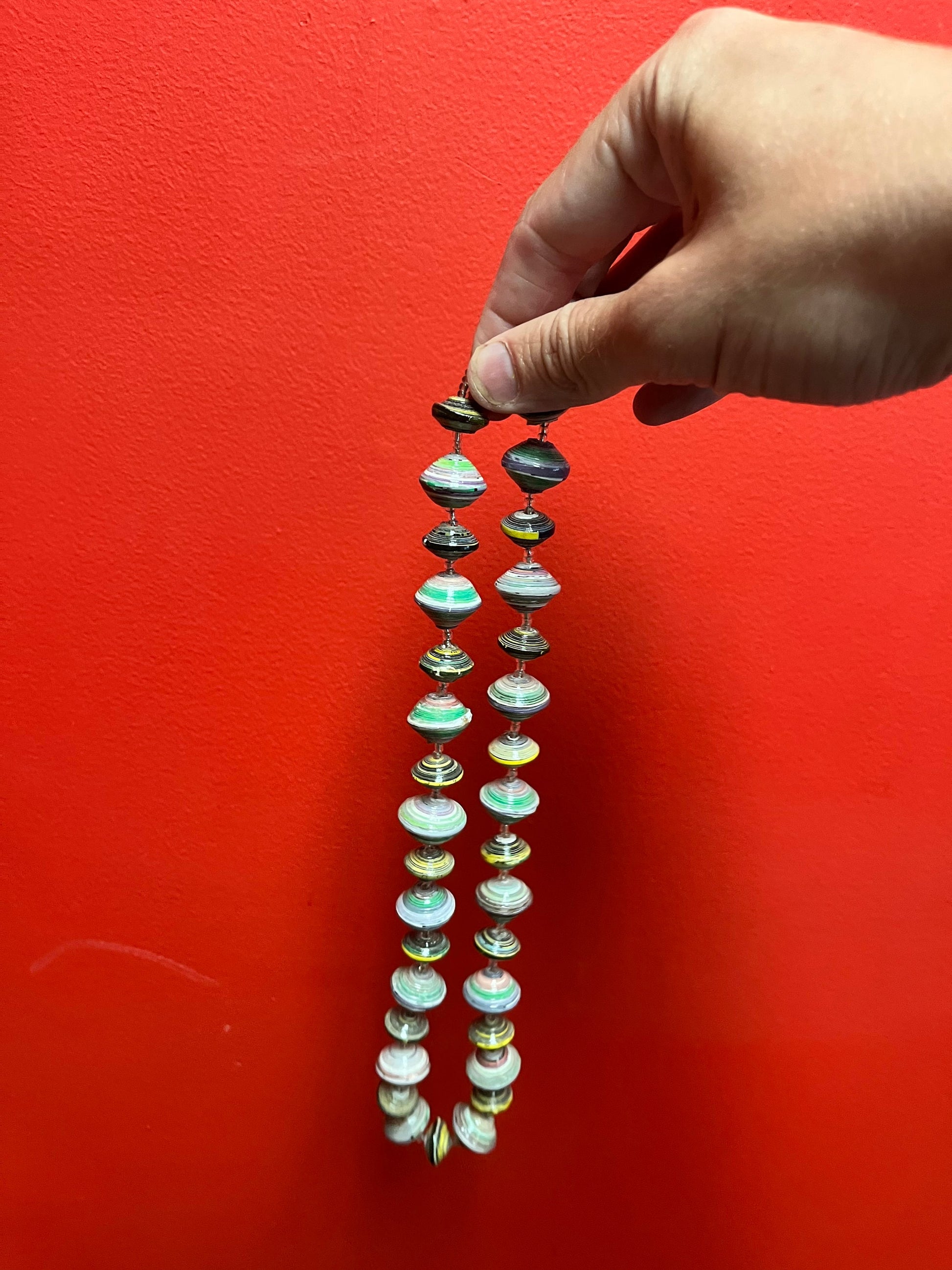 Approximately 23 inch long African vintage recycled magazine necklace so cool