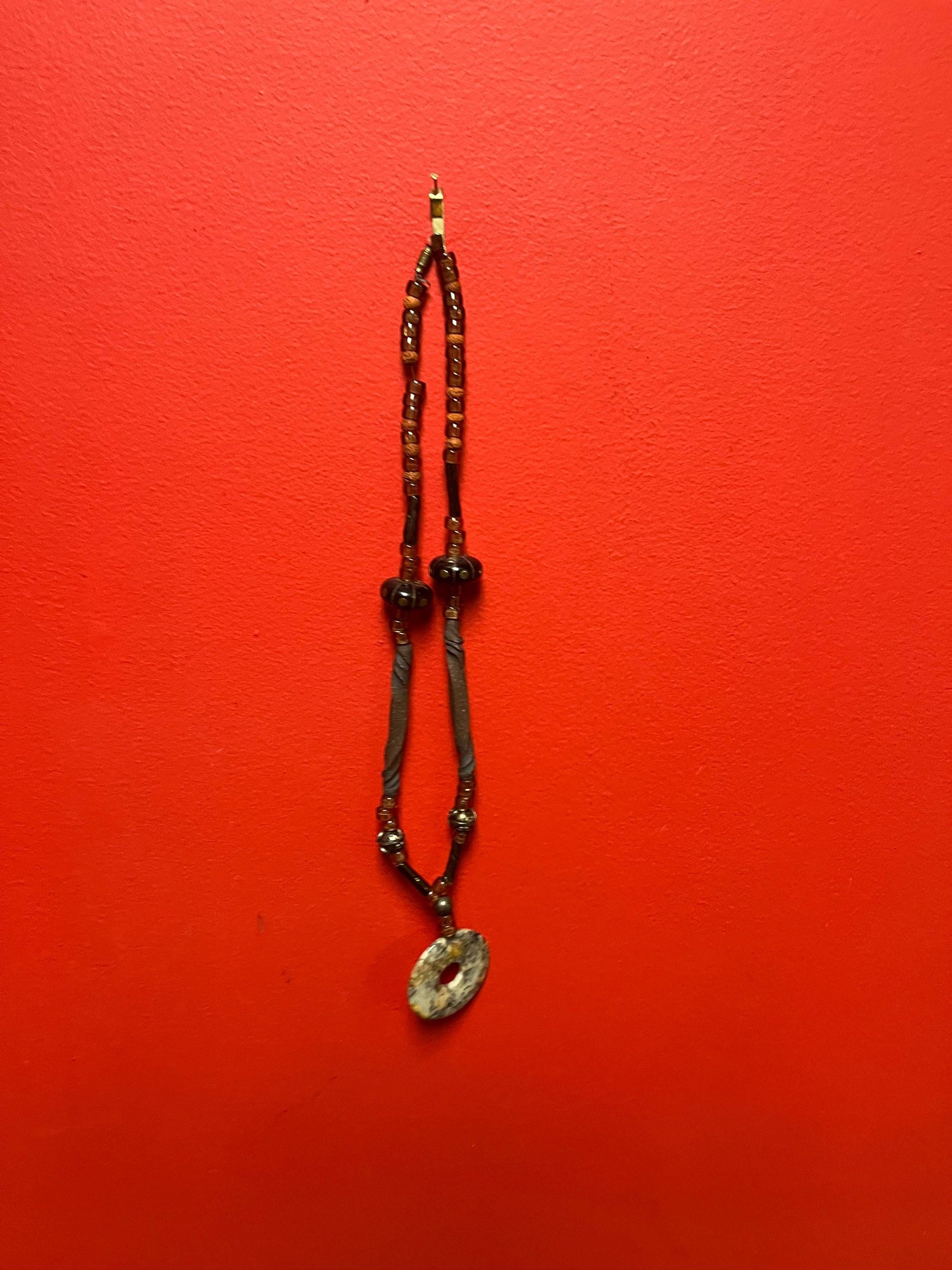 Approximately 26 inch long stone, beads and wood necklace very funky and beautiful great gift -