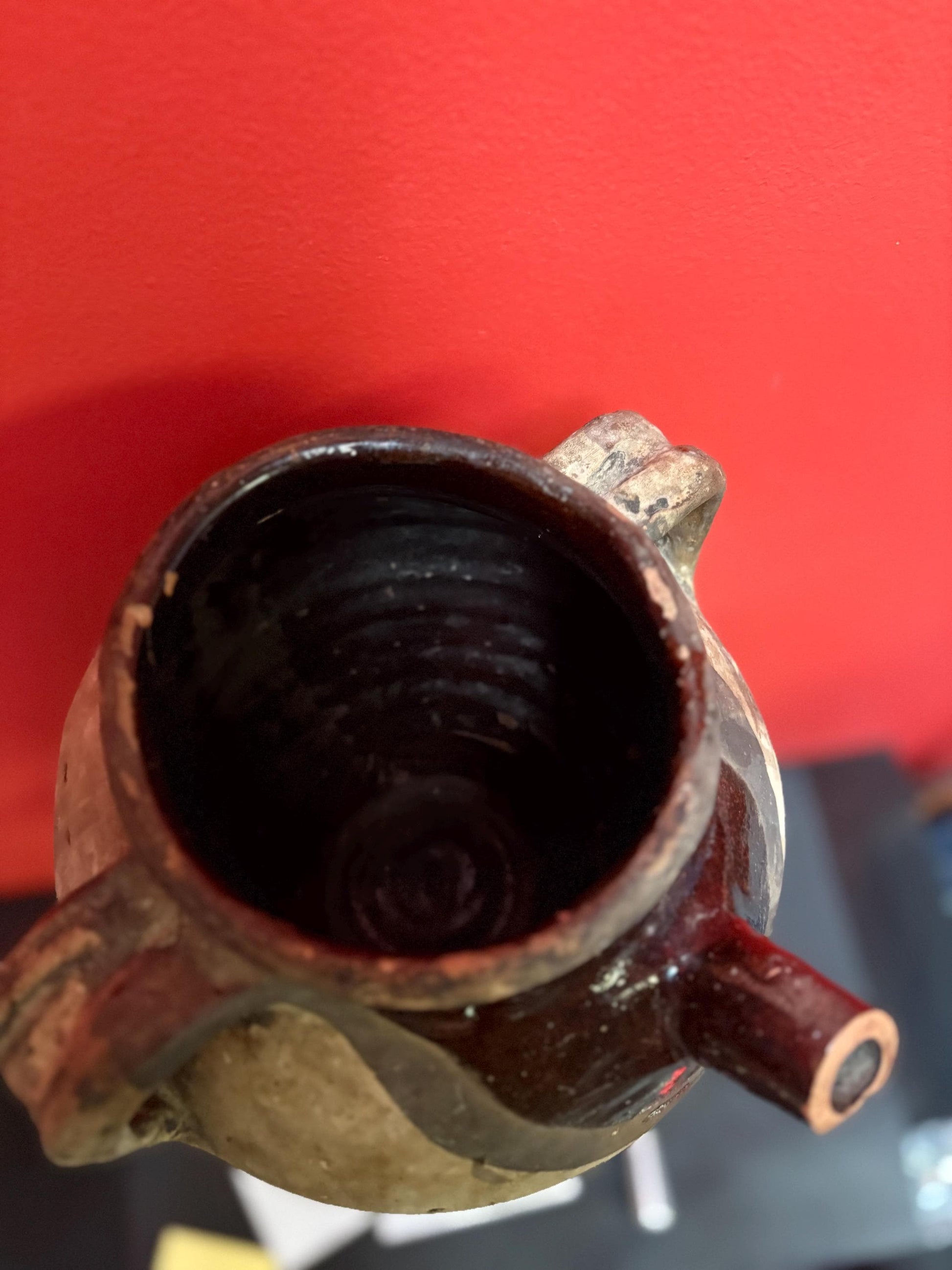 Approximately pre-10th century South American earthenware pot some damage see photos - museum quality 10 inches tall and 9 inches wide from handle to handle and 5 inches wide at the top and 5 inches wide at the bottom