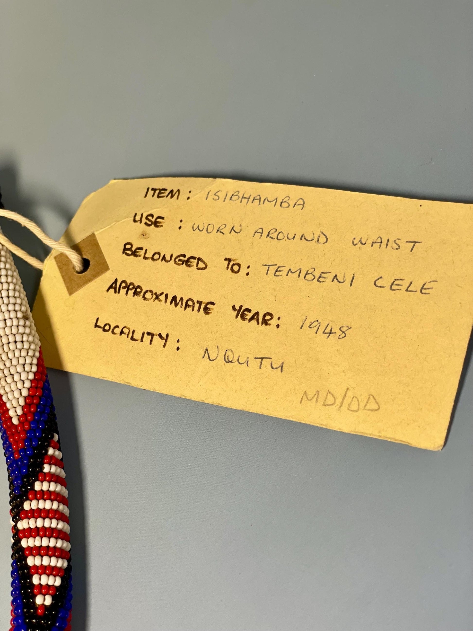 Authentic South African Zulu Isibhamba beaded belt from 1948, sourced from Nqutu.