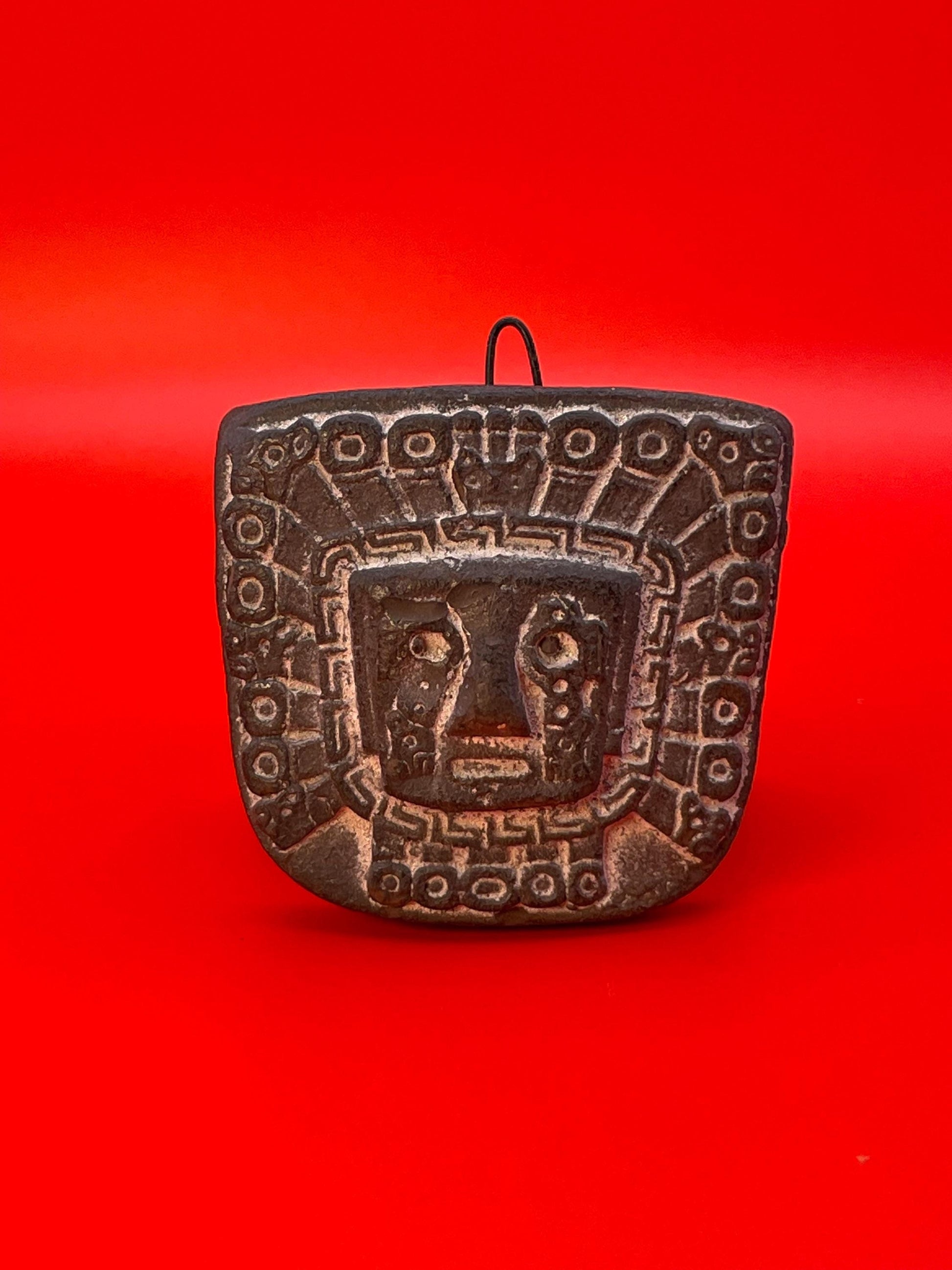 This is a captivating Aztec stone pendant, approximately 1.5 inches in size.