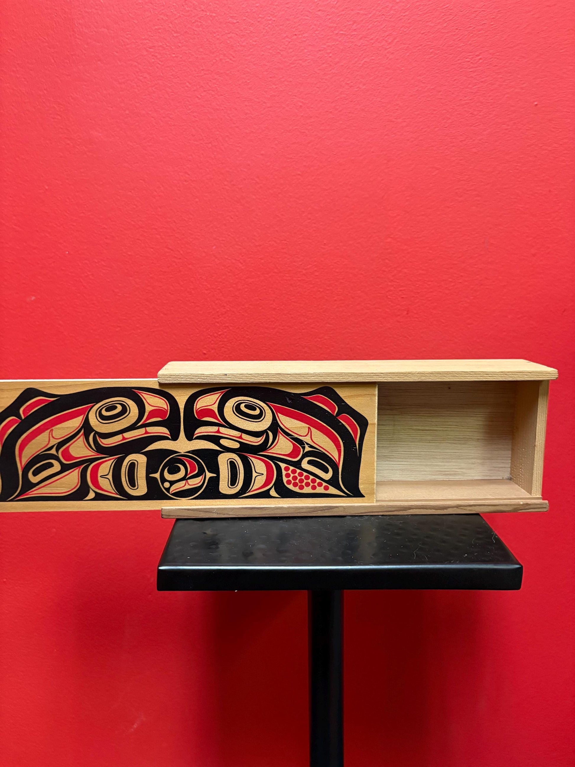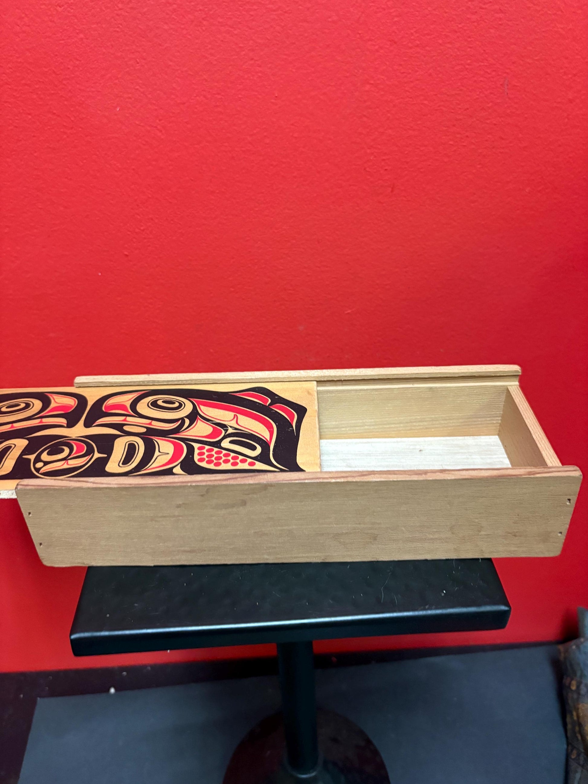 Beautiful 10 x 4 x 2“ deep indigenous first nations West Coast salmon painted box — good value