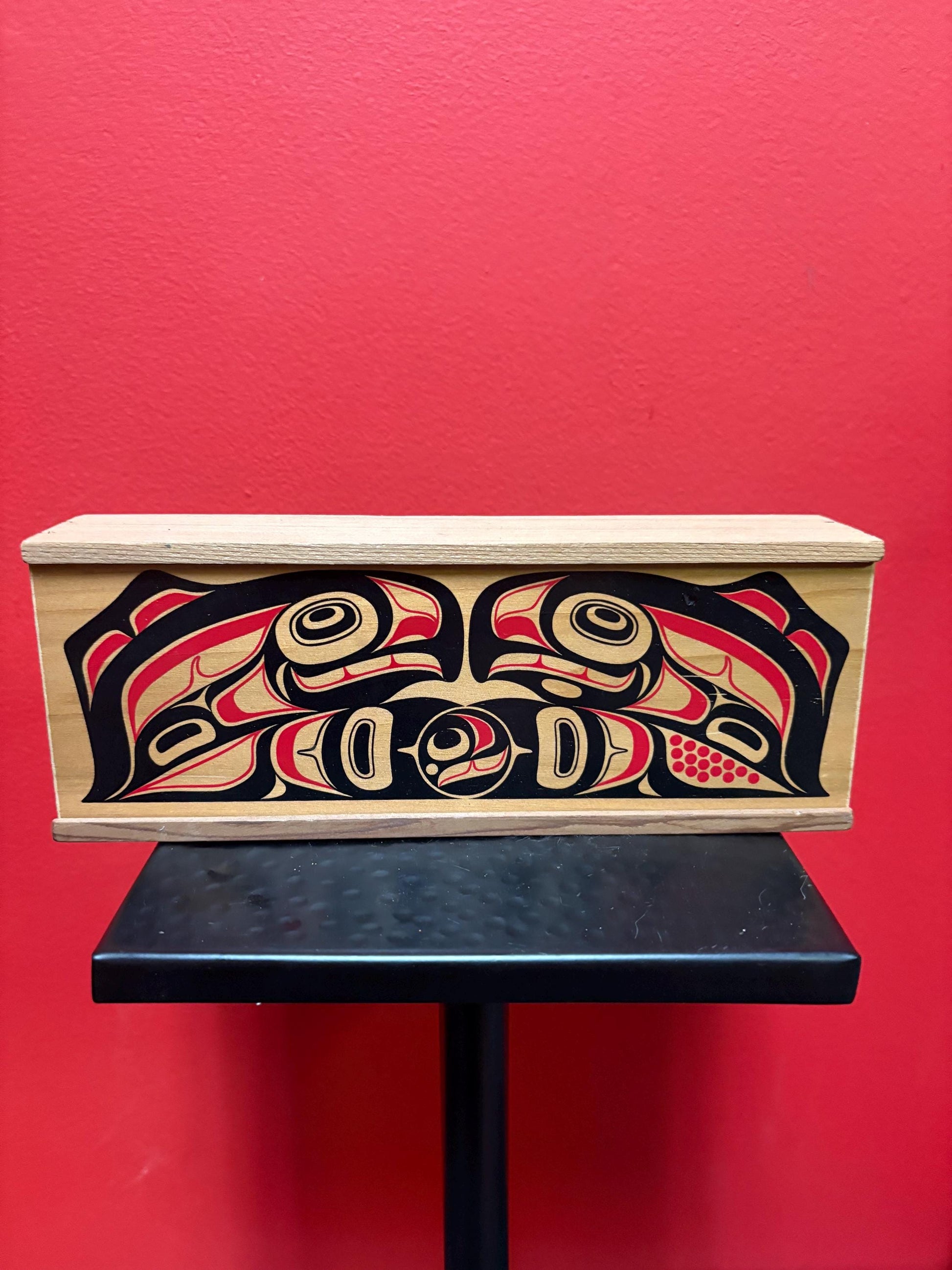 Beautiful 10 x 4 x 2“ deep indigenous first nations West Coast salmon painted box good value