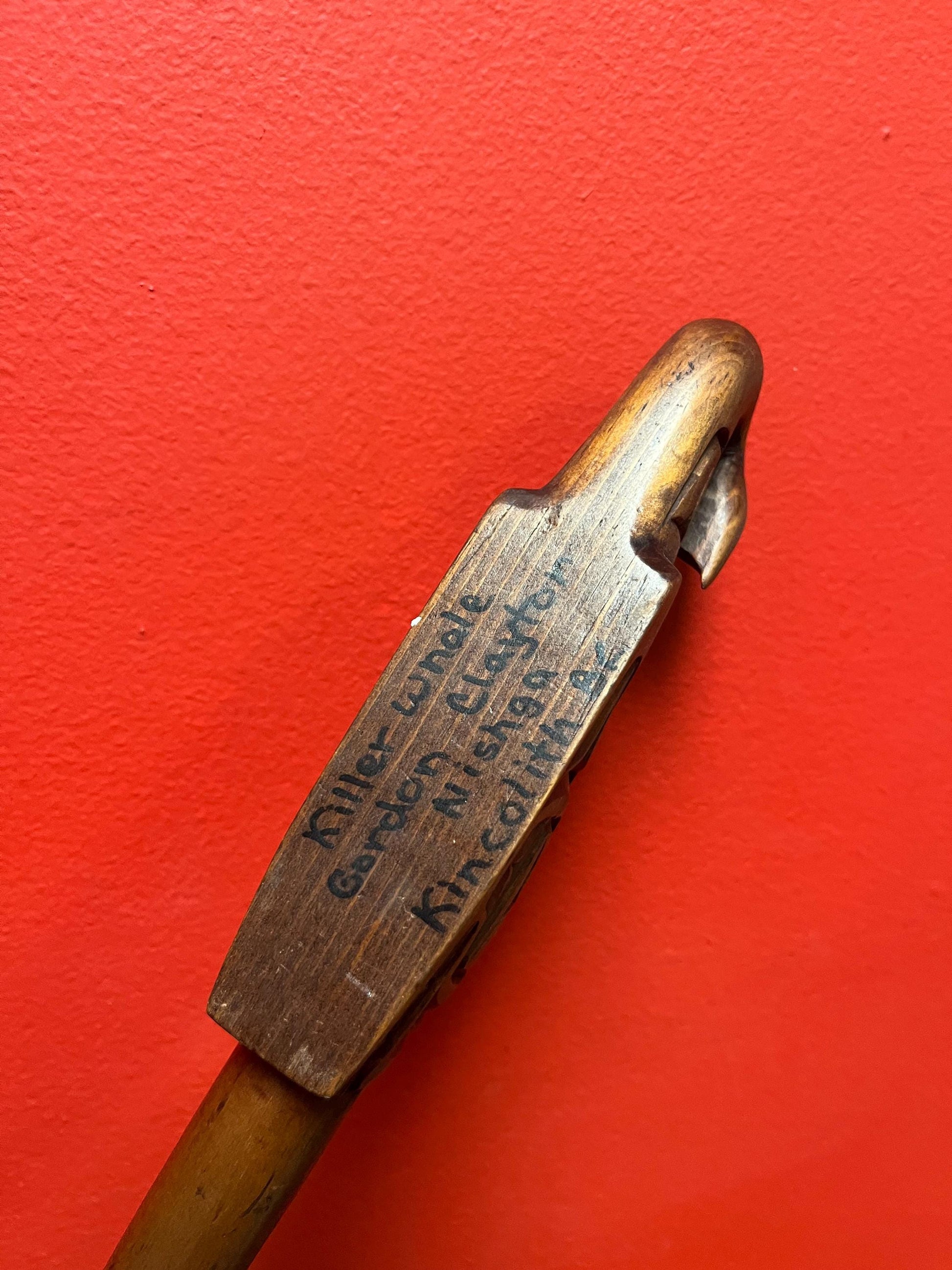 Beautiful 12 inch signed killer whale portable talking stick indigenous first nations Pacific northwest coast Cedar wonderful detail