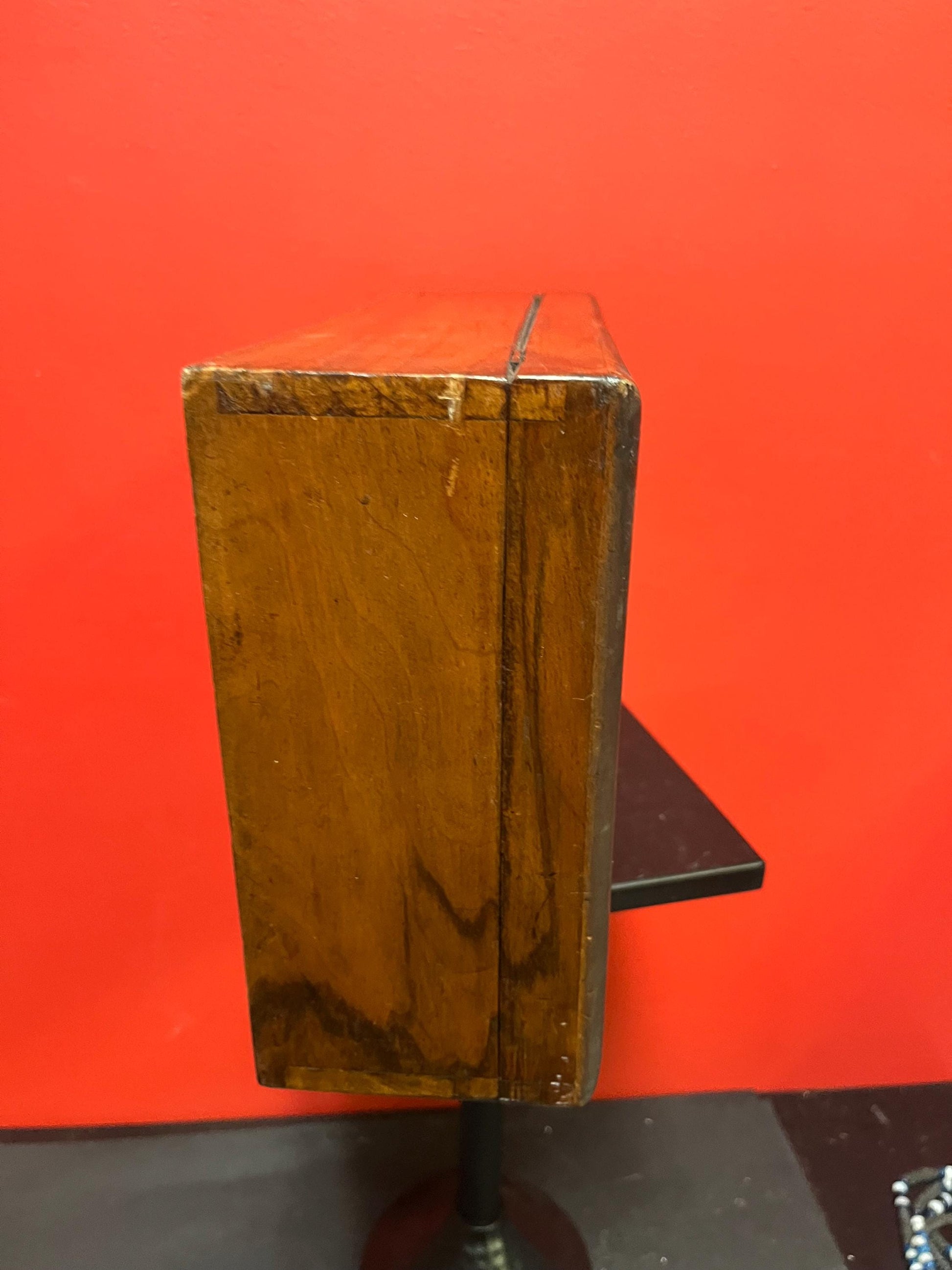 Beautiful 13 x 9 x 5 high English antique inlaid box wonderful imagery and good condition with light crack on top value priced