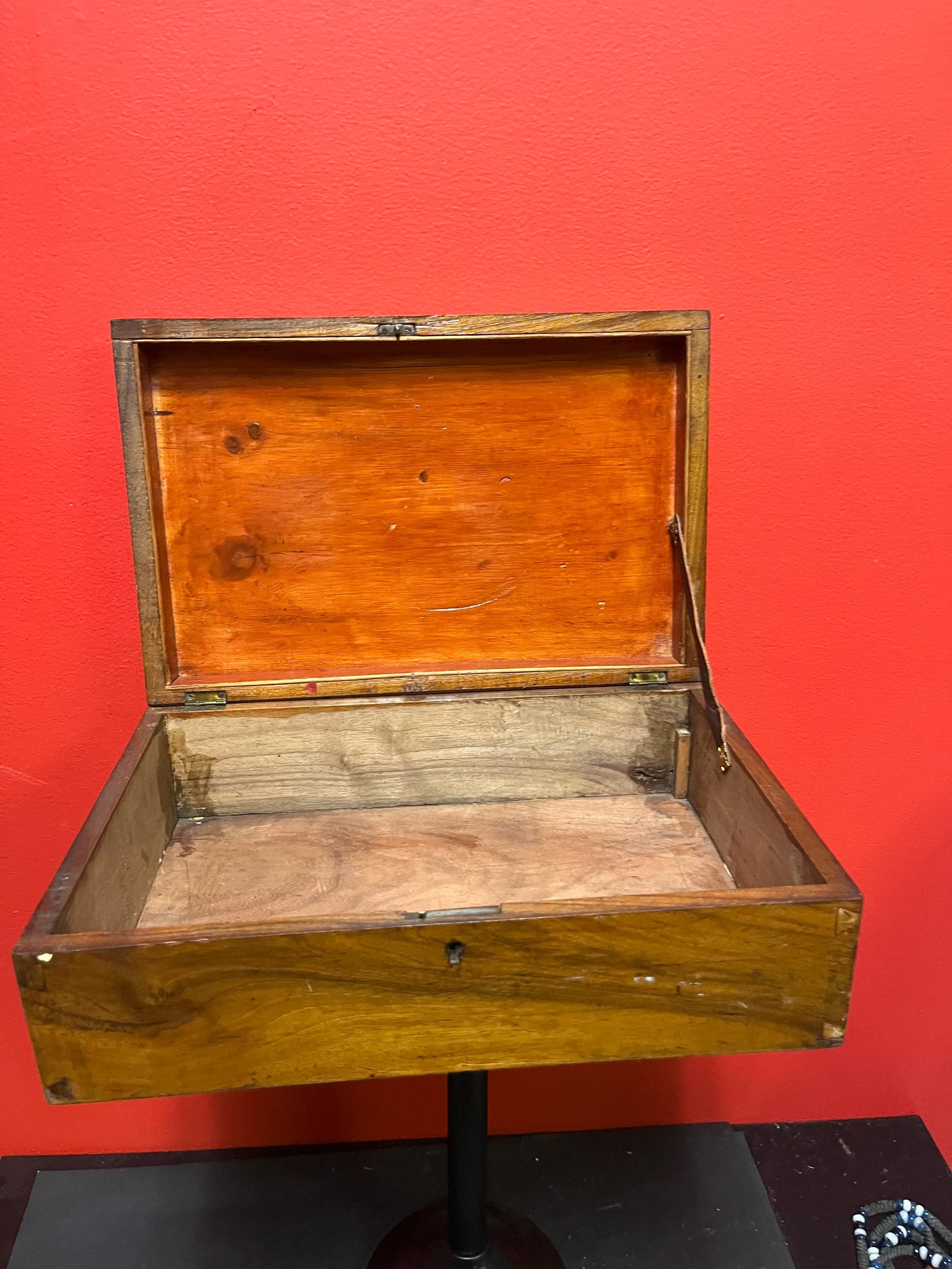 Beautiful 13 x 9 x 5 high English antique inlaid box wonderful imagery and good condition with light crack on top value priced gift alert