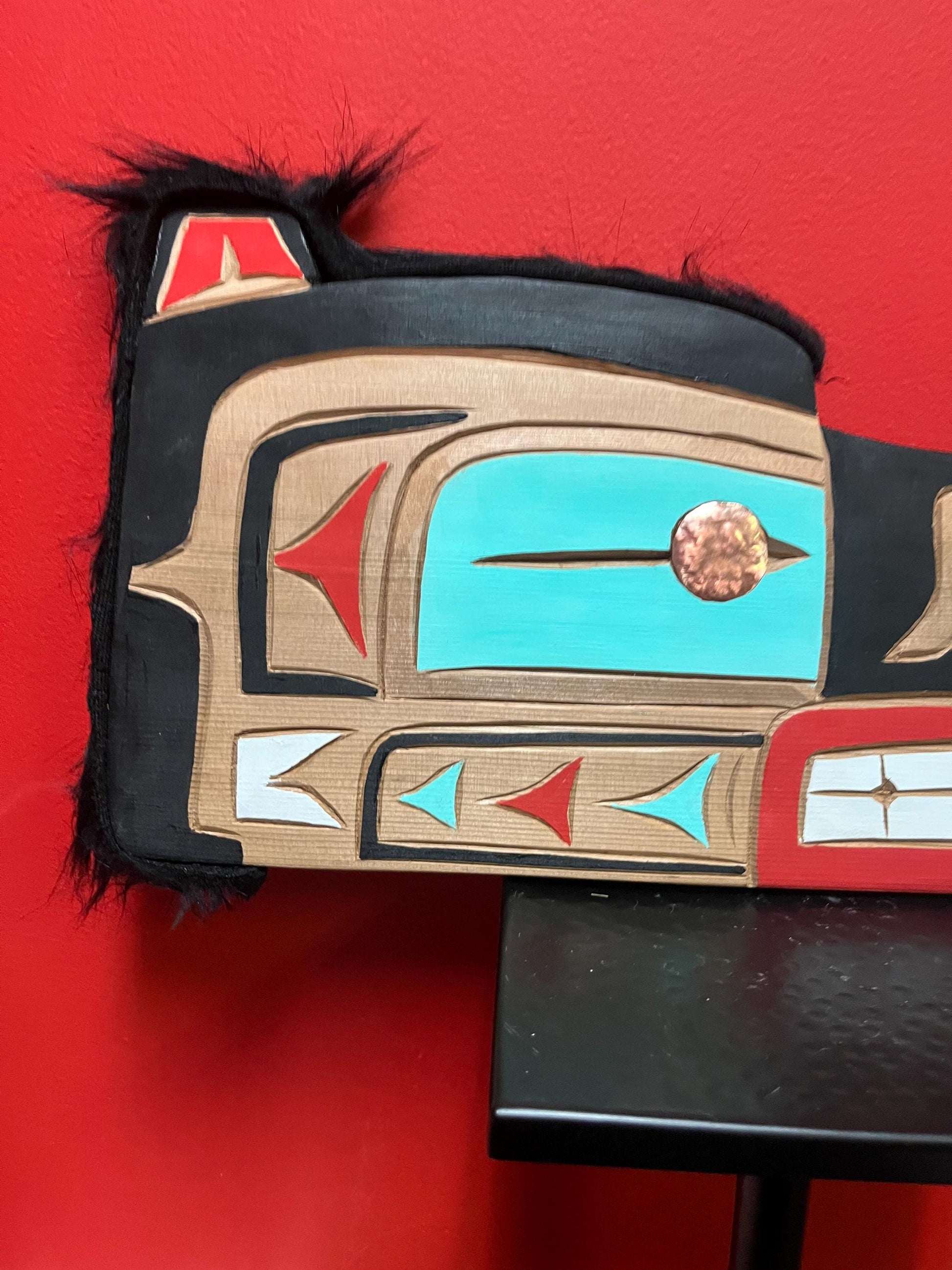 Beautiful 18 x 10 high indigenous first nations Squamish plaque of a bear by Brad Joseph Junior signed needs a hanger great value