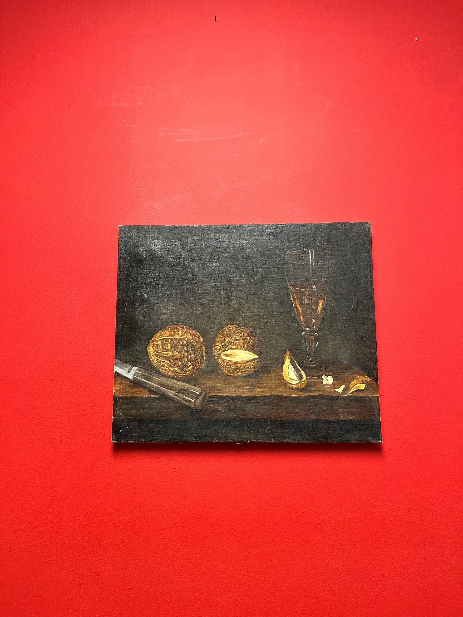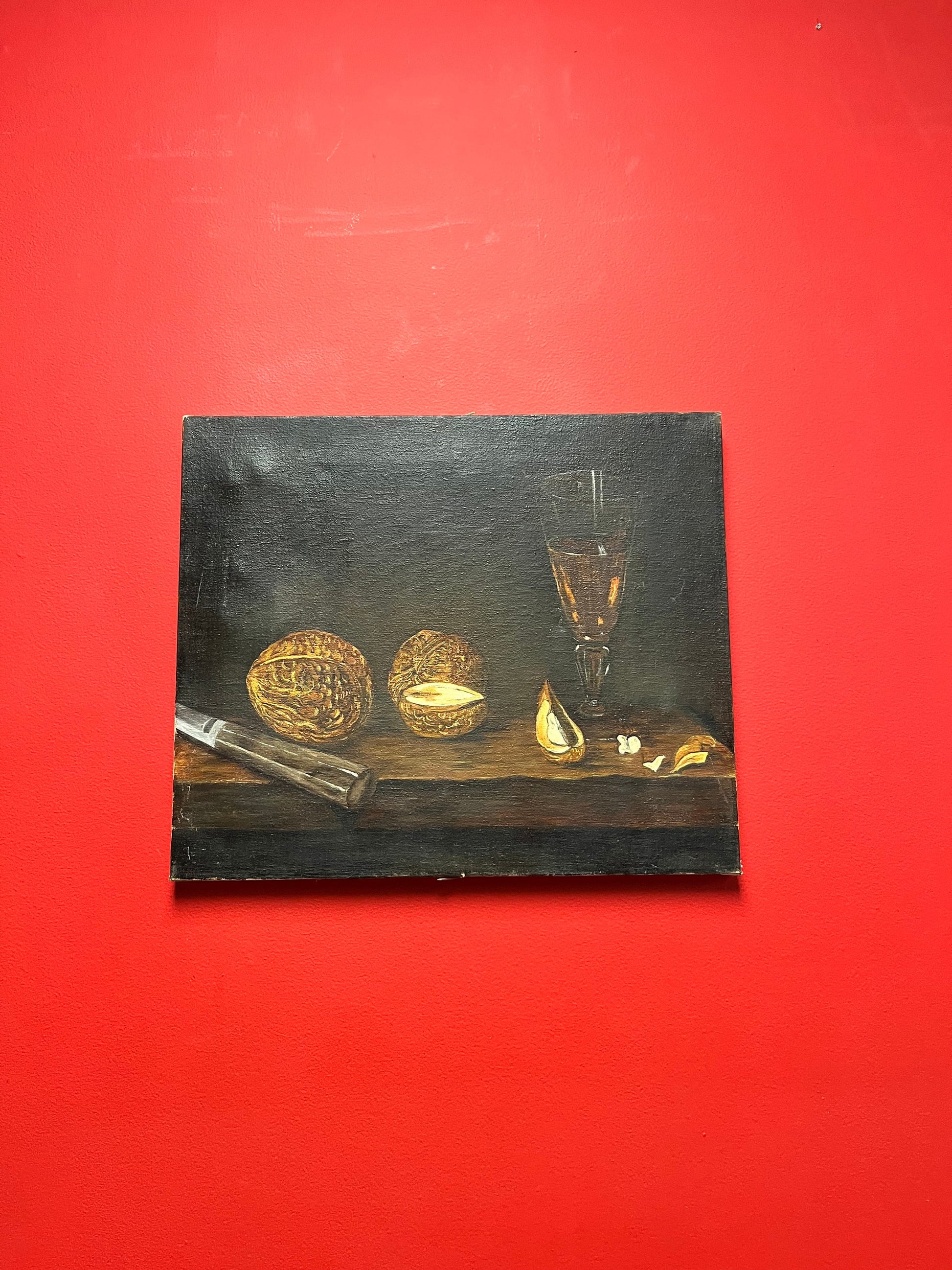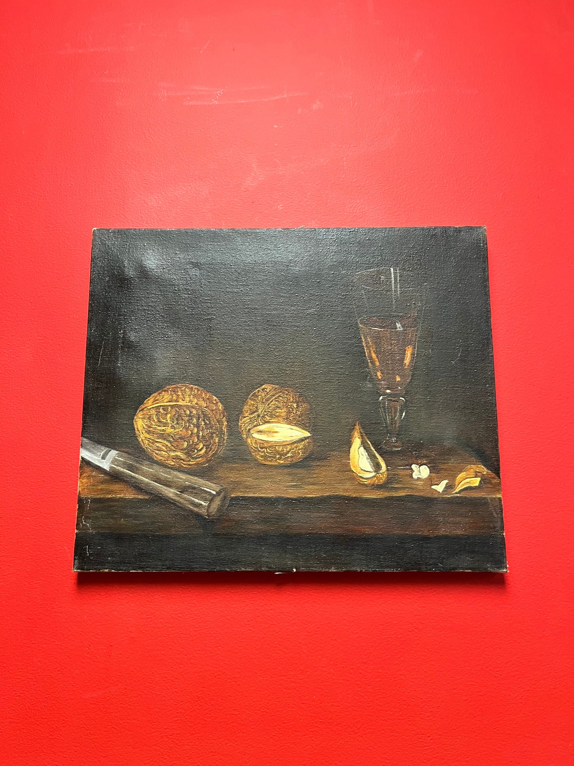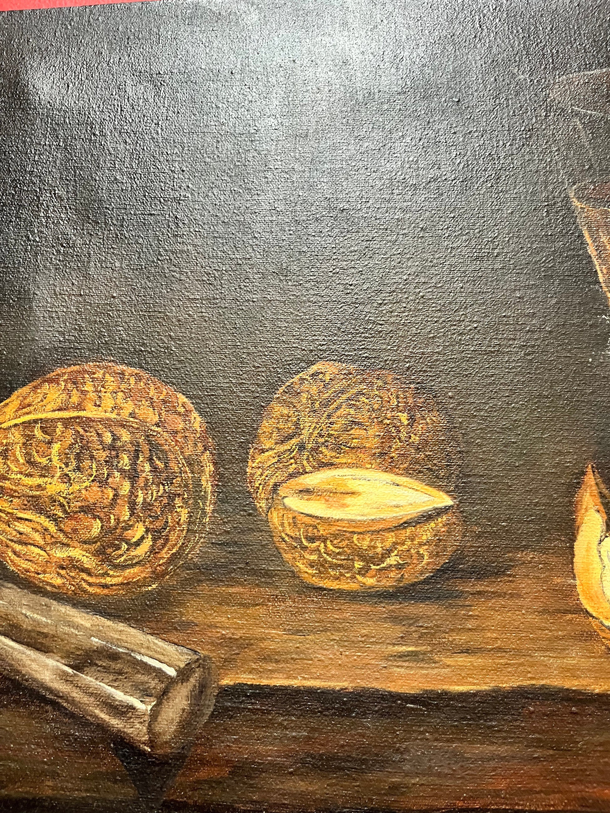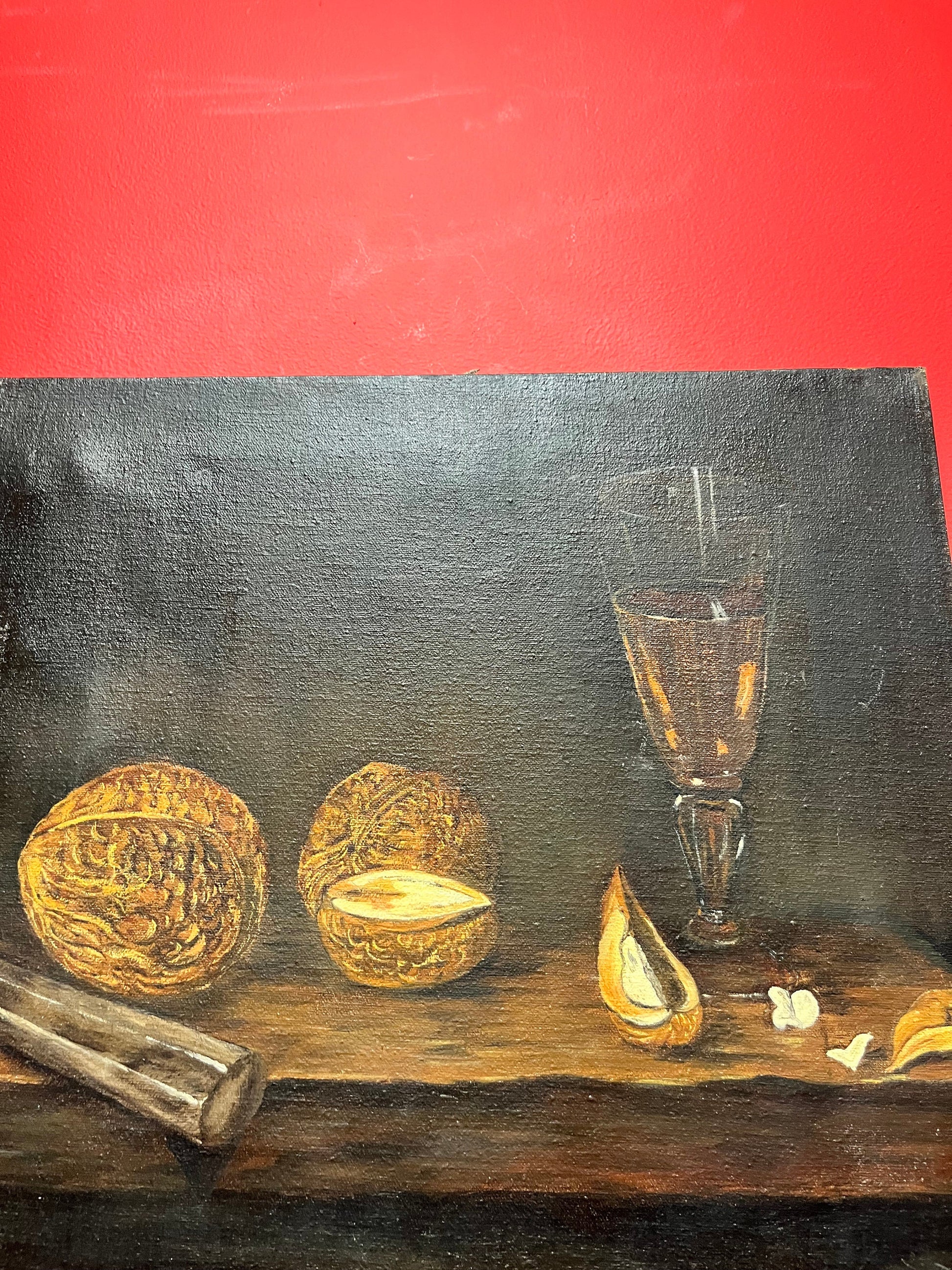 Beautiful 18 x 15 antique still like painting on canvas Couple light scratches Good