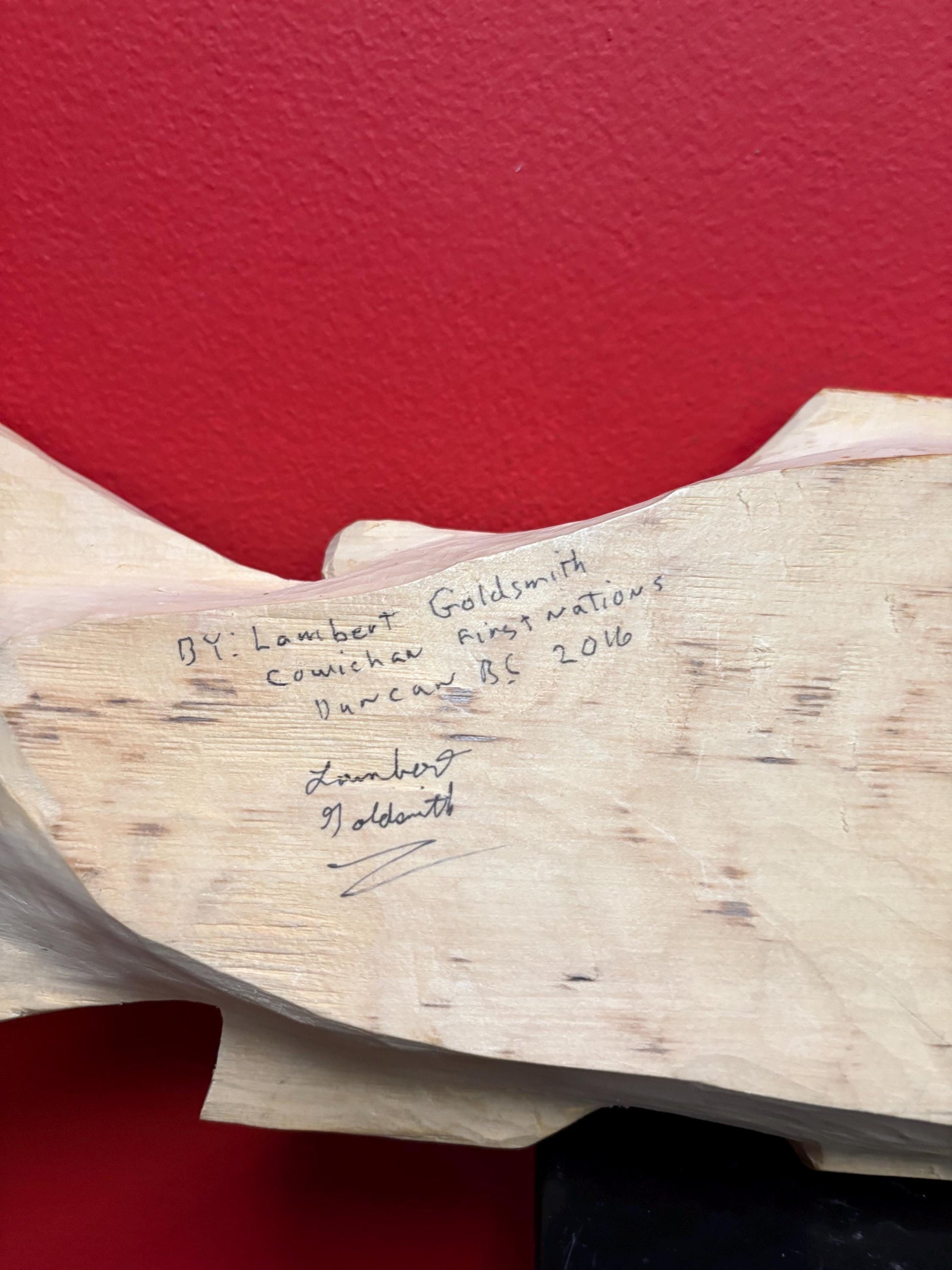 Beautiful  - 18 x 5“ indigenous first nation Pacific Northwest coast lambert goldsmith salmon feast bowl  signed with information  abalone inset