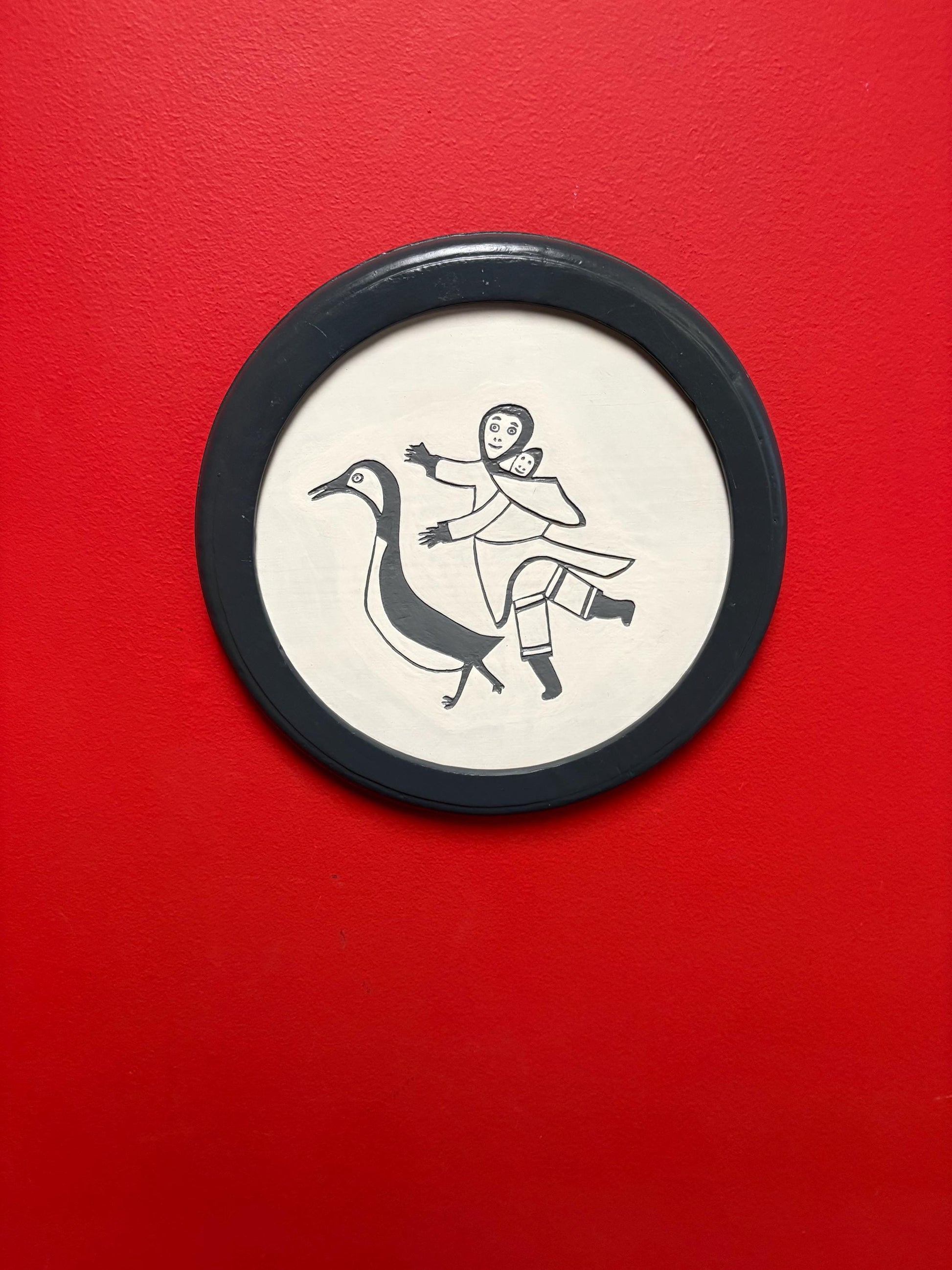 Beautiful 1970s Inuit wood art picture in frame — 11 inches — indigenous Inui