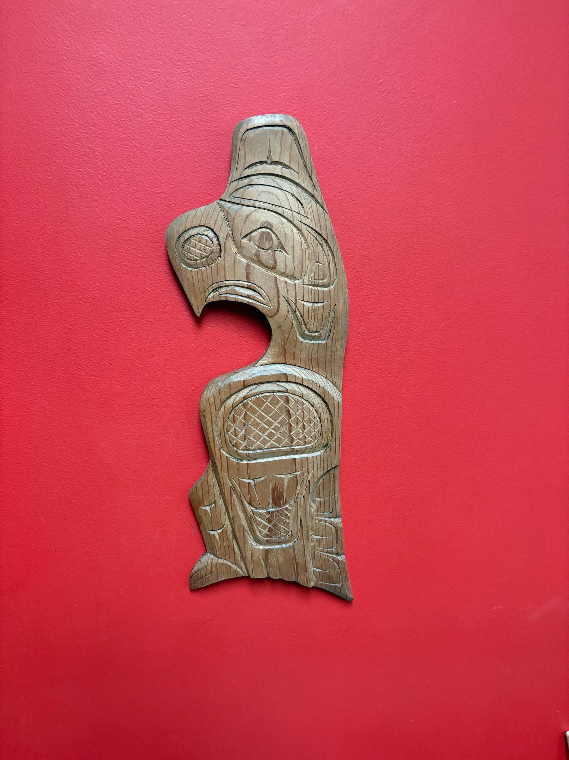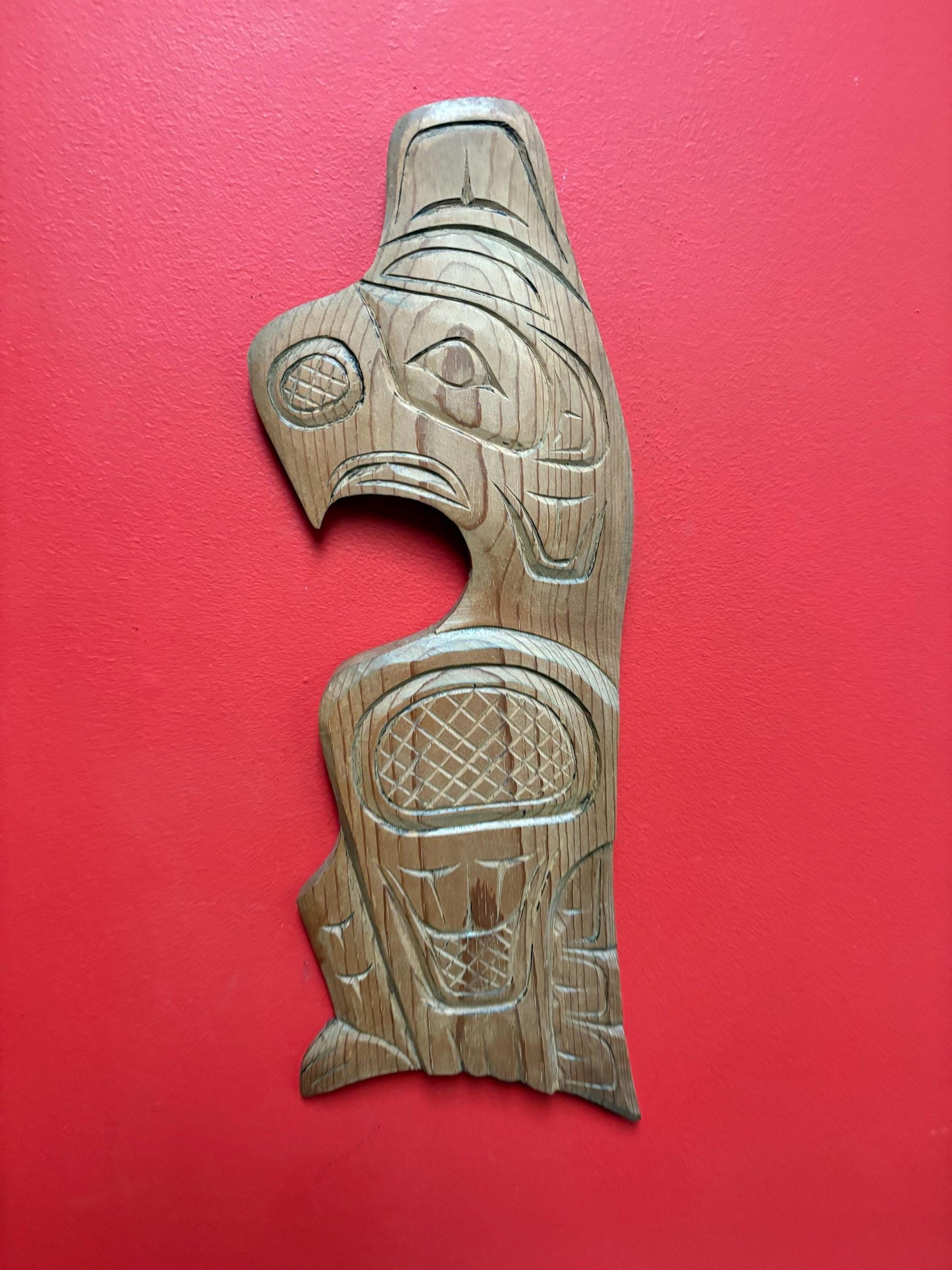 Beautiful 1990s indigenous first nations pacific north West Coast Cedar eagle plaque - 19 inches signed
