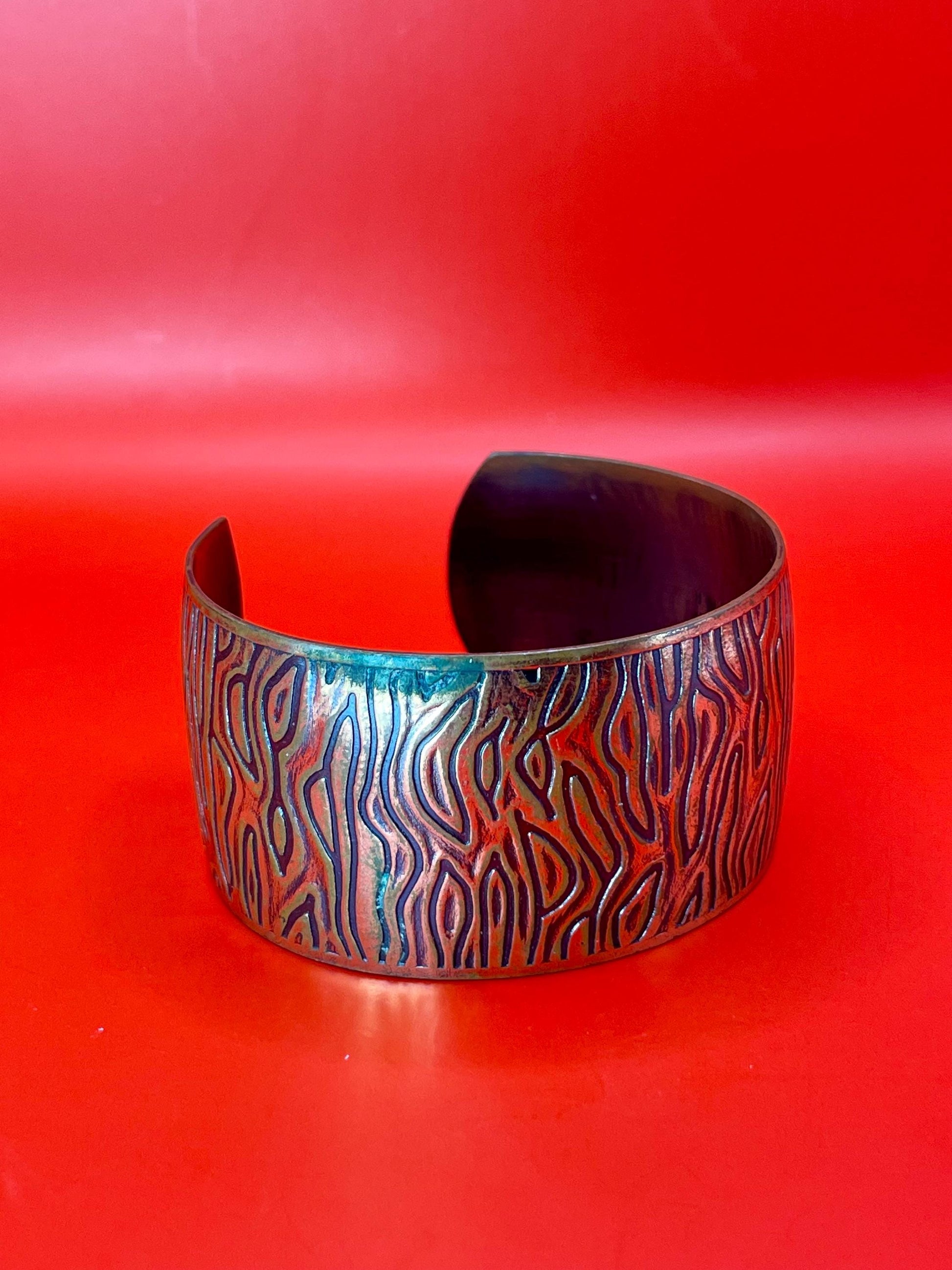 Beautiful 2.25 inch wide vintage genuine copper bracelet Cuff- fits various size wrists.