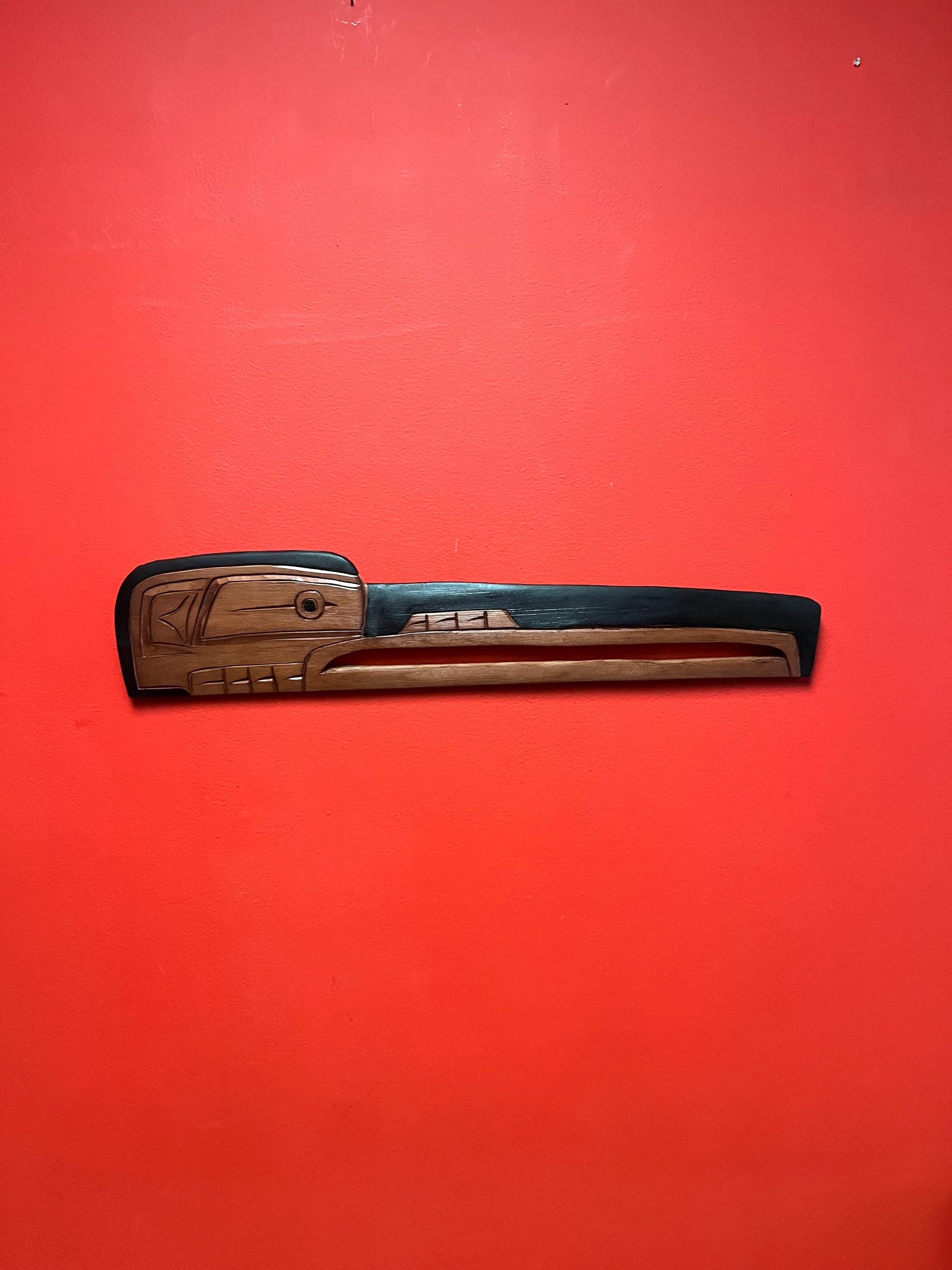 Beautiful 23 x 5 indigenous first nations Pacific northwest coast raven plaque by Brad Joseph Junior signed and great detail ready to hang