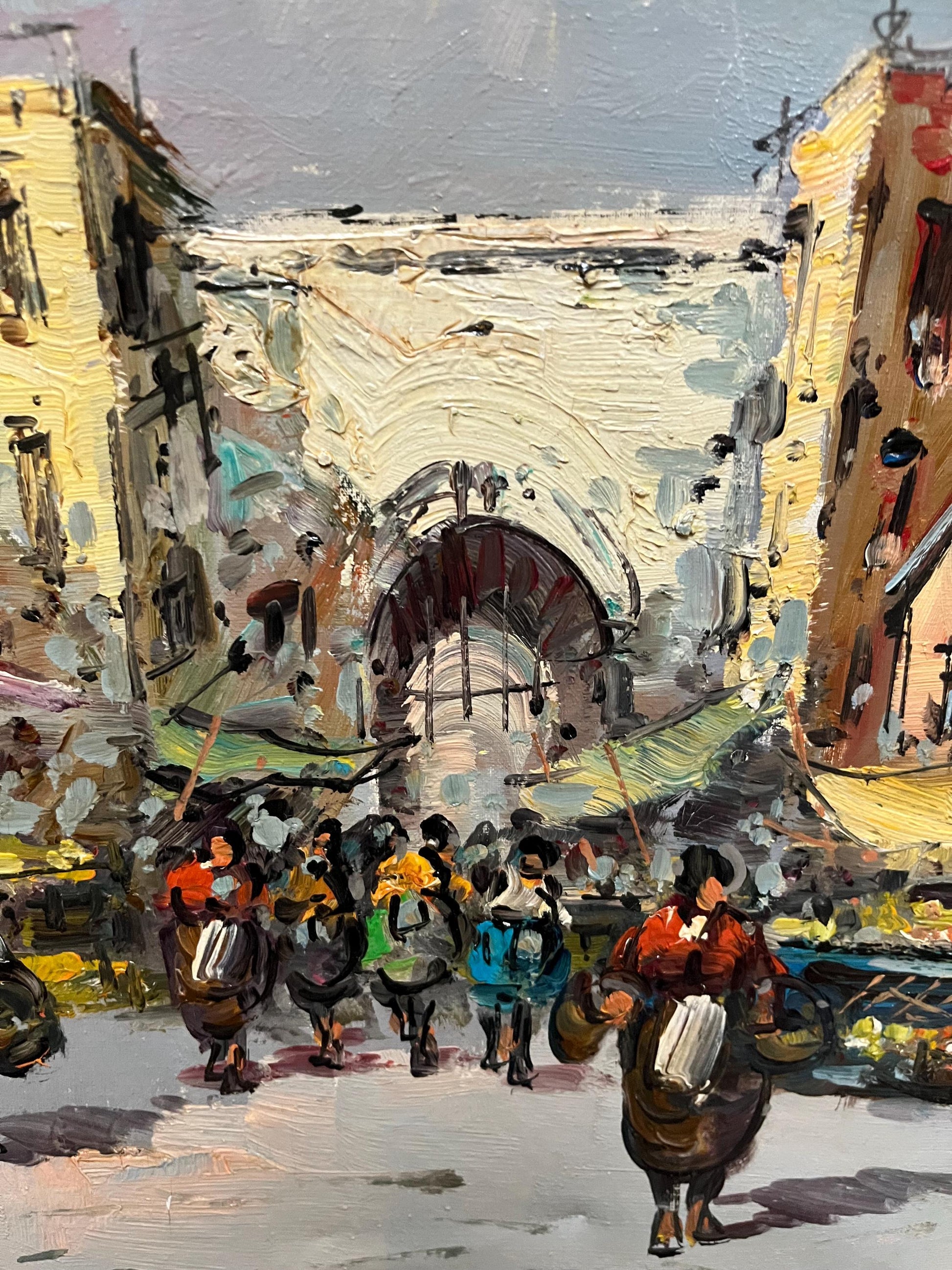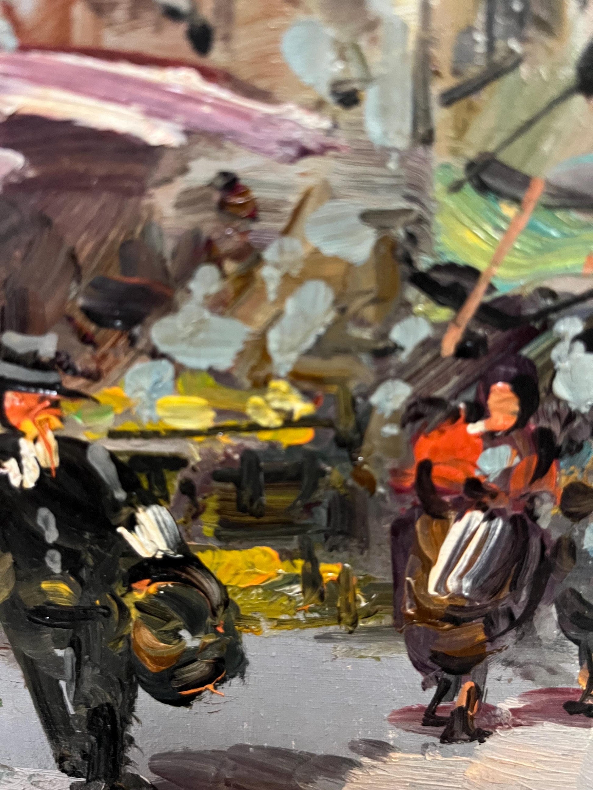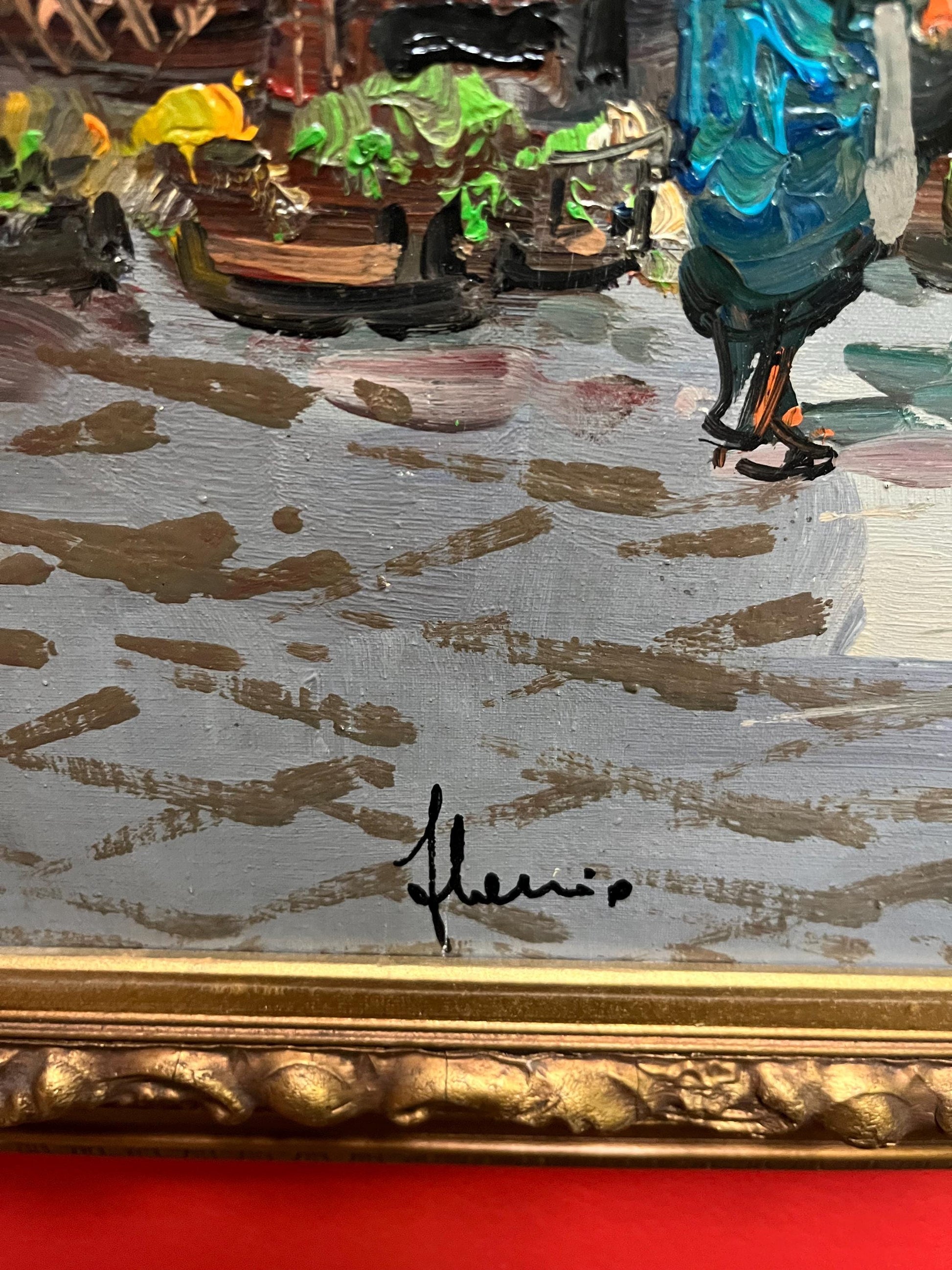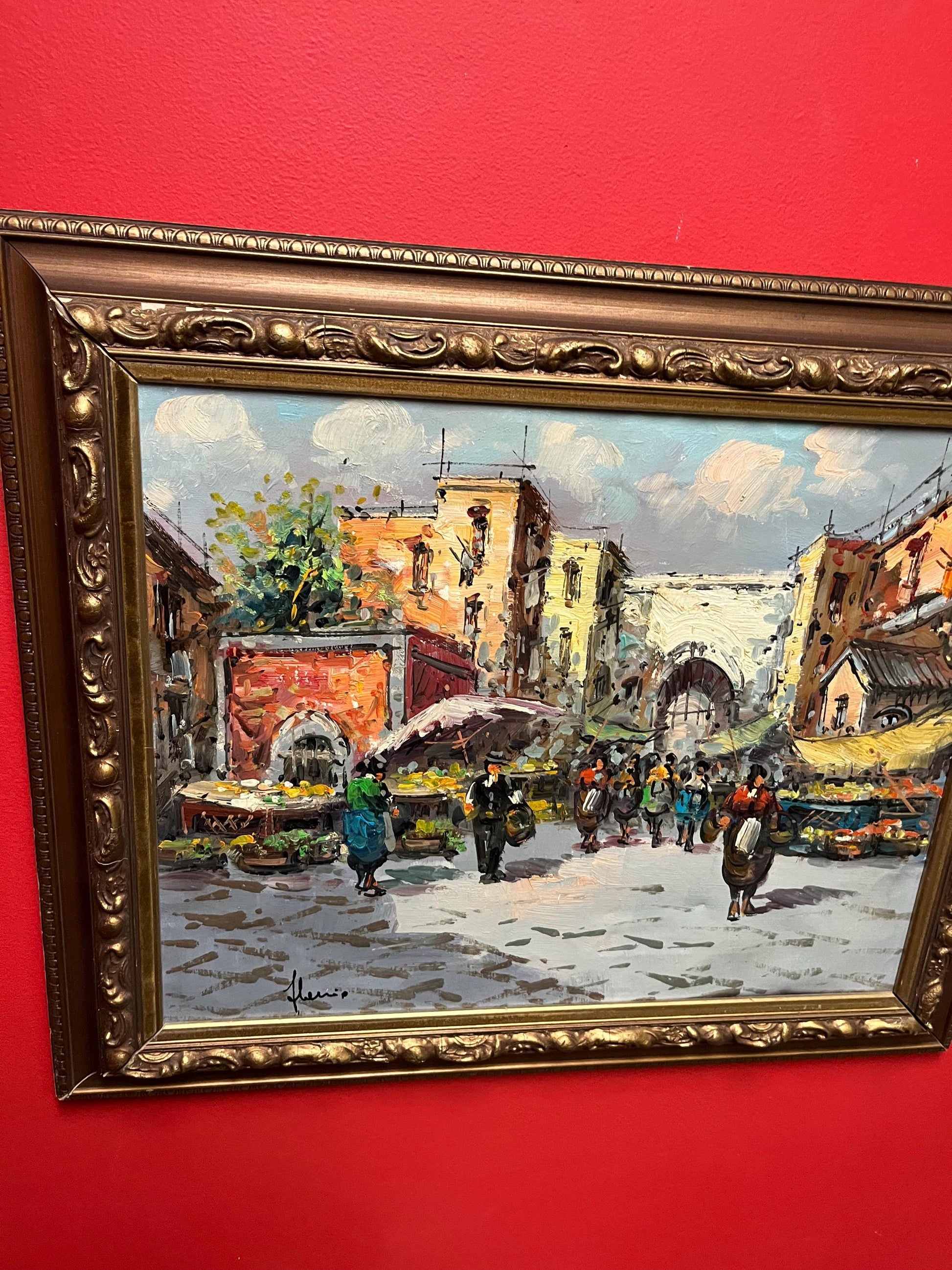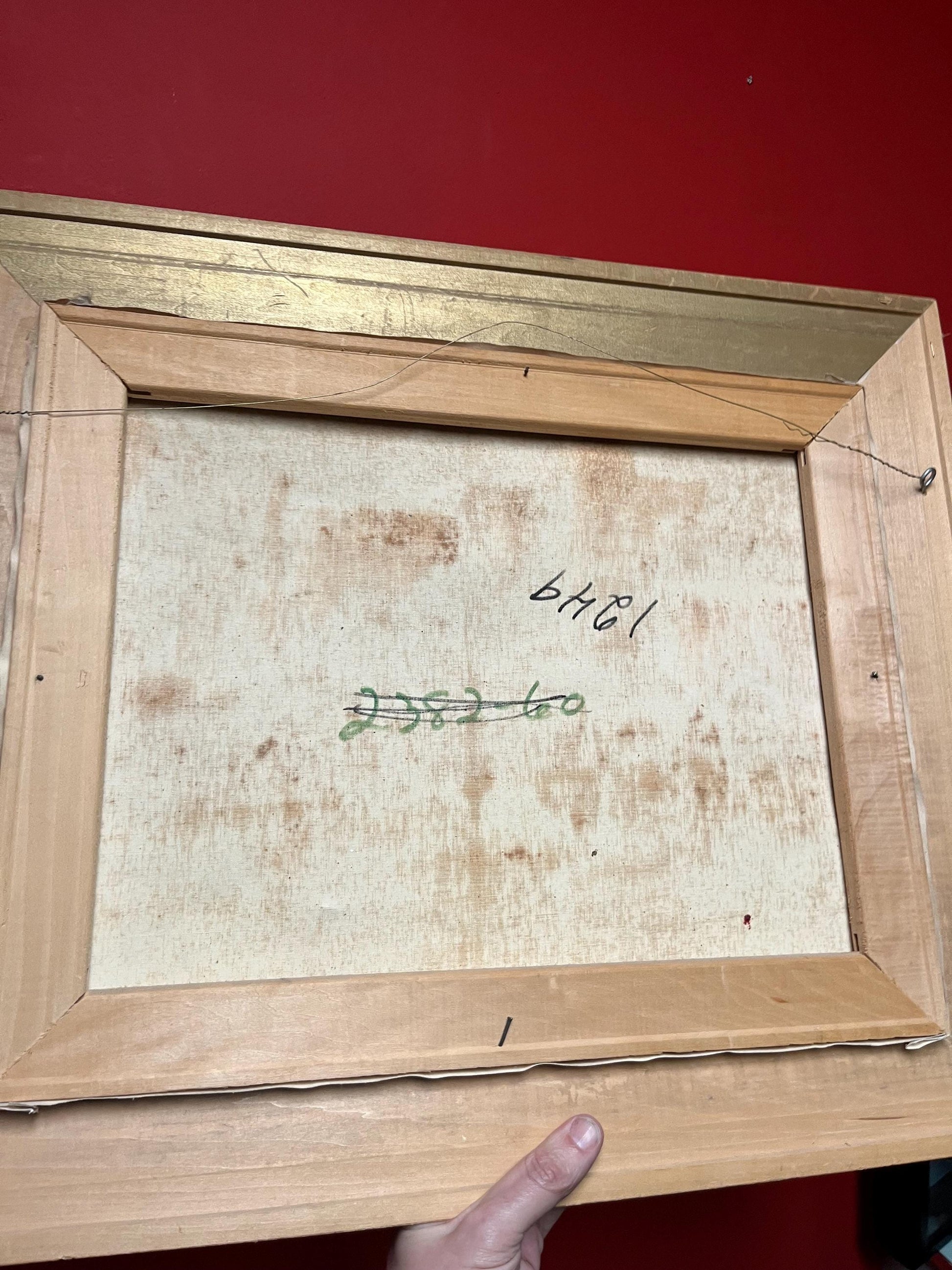 Beautiful 25 x 22 inch European MCM original painting in lovely gilt frame wonderful imagery ready to hang