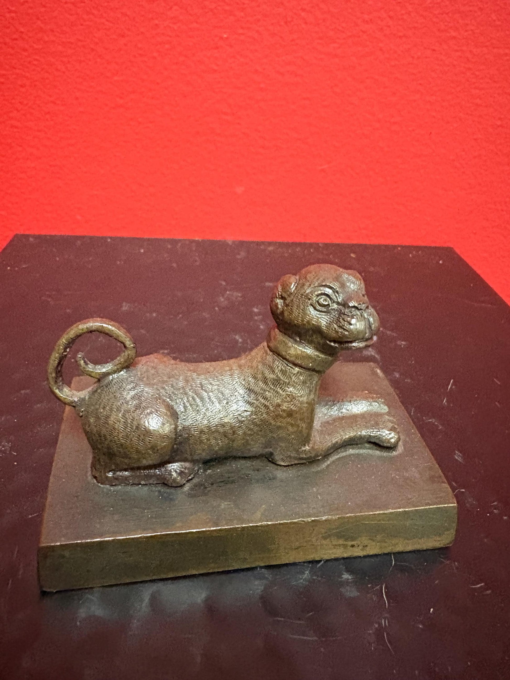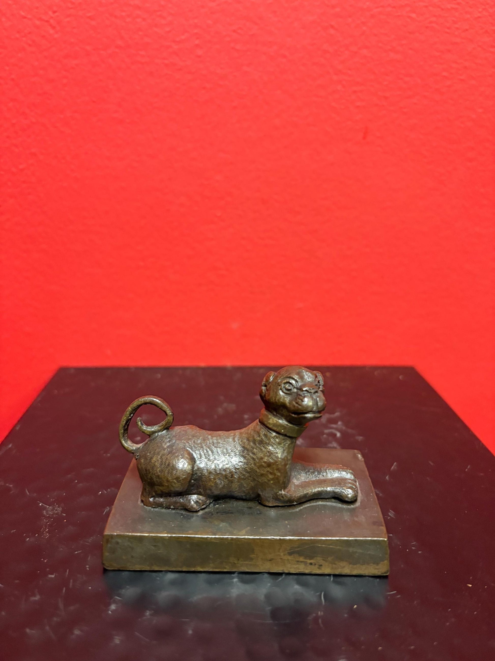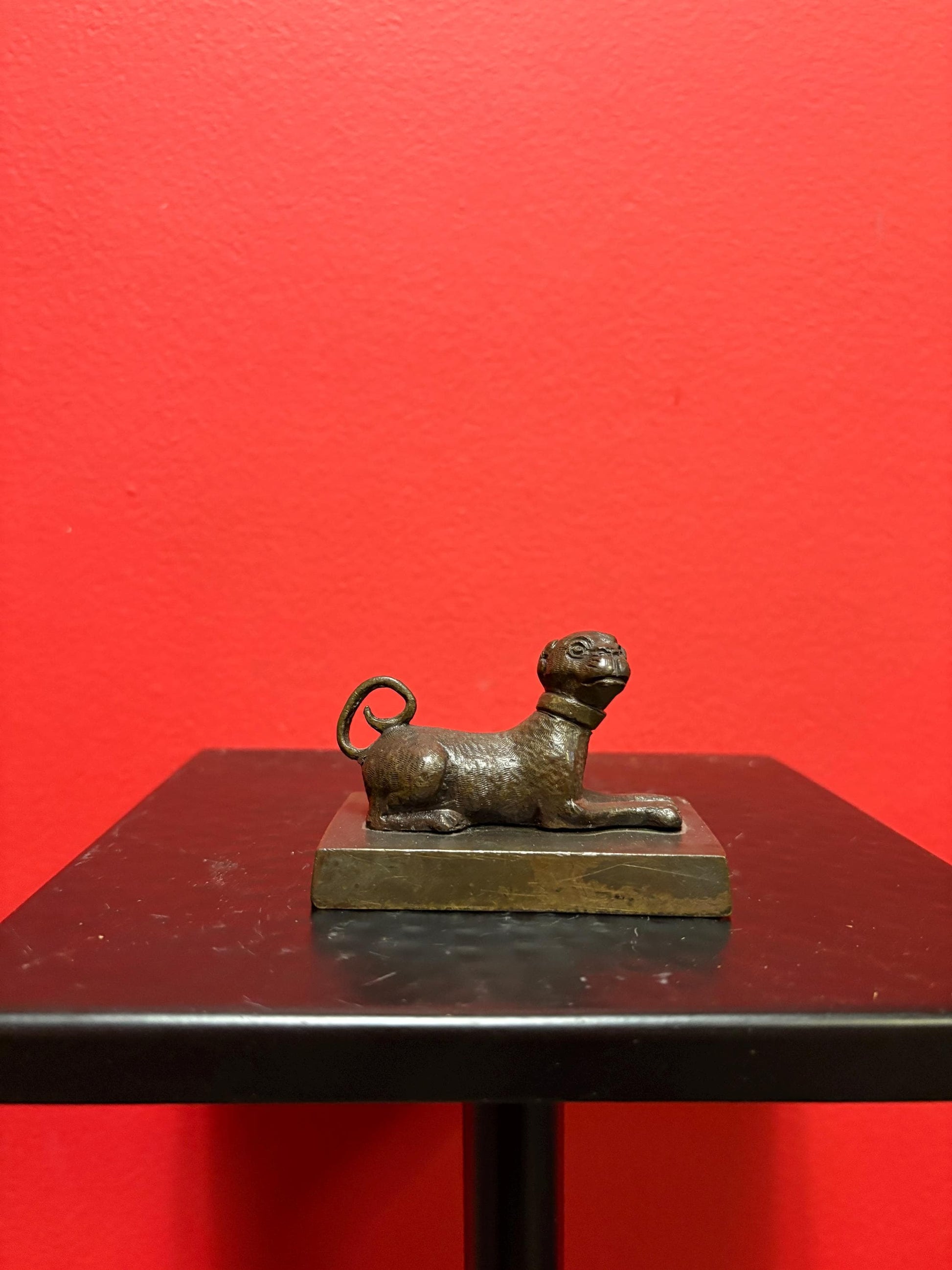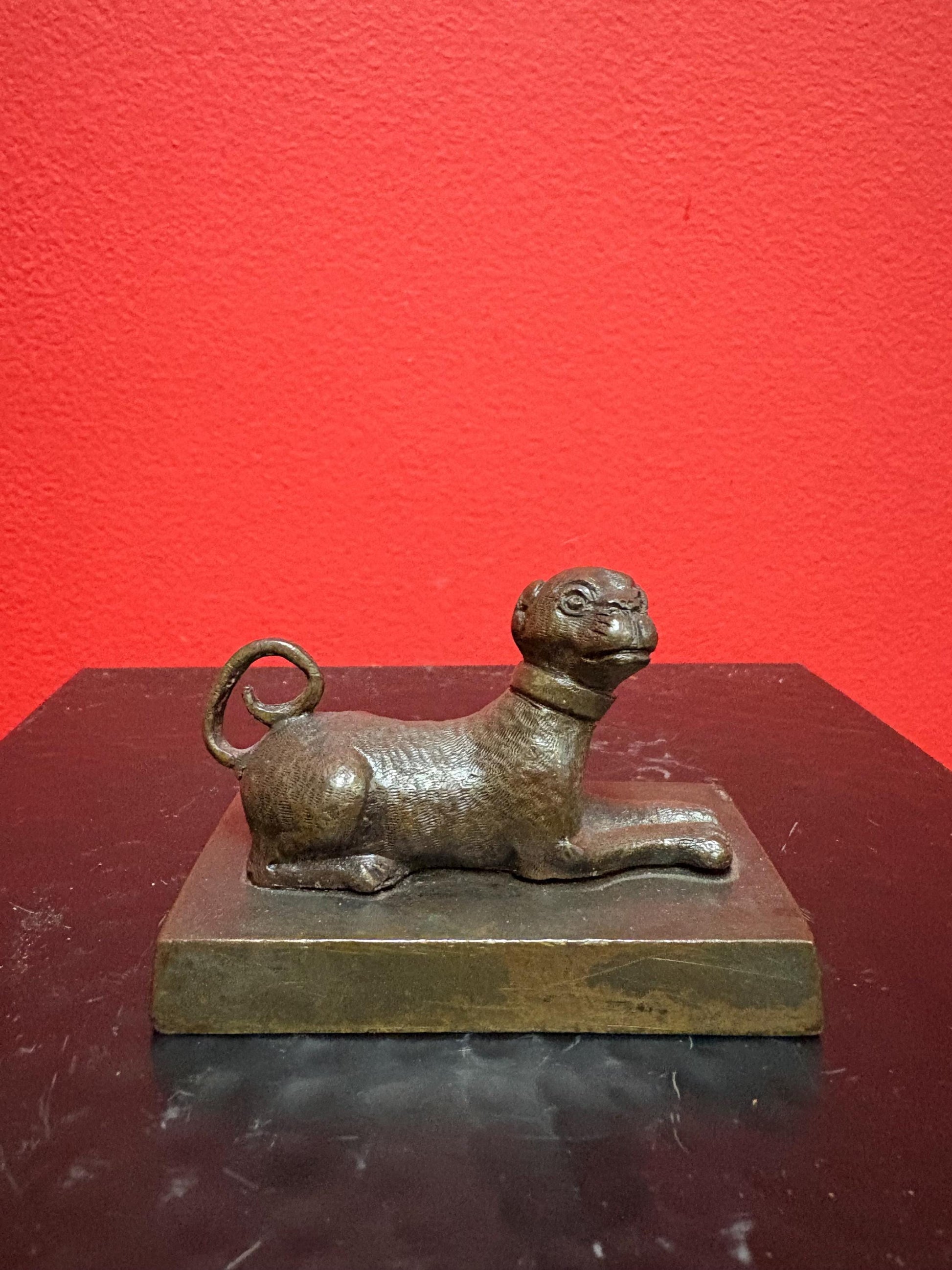Beautiful 3 x 2 inch Asian bronze dog great patina