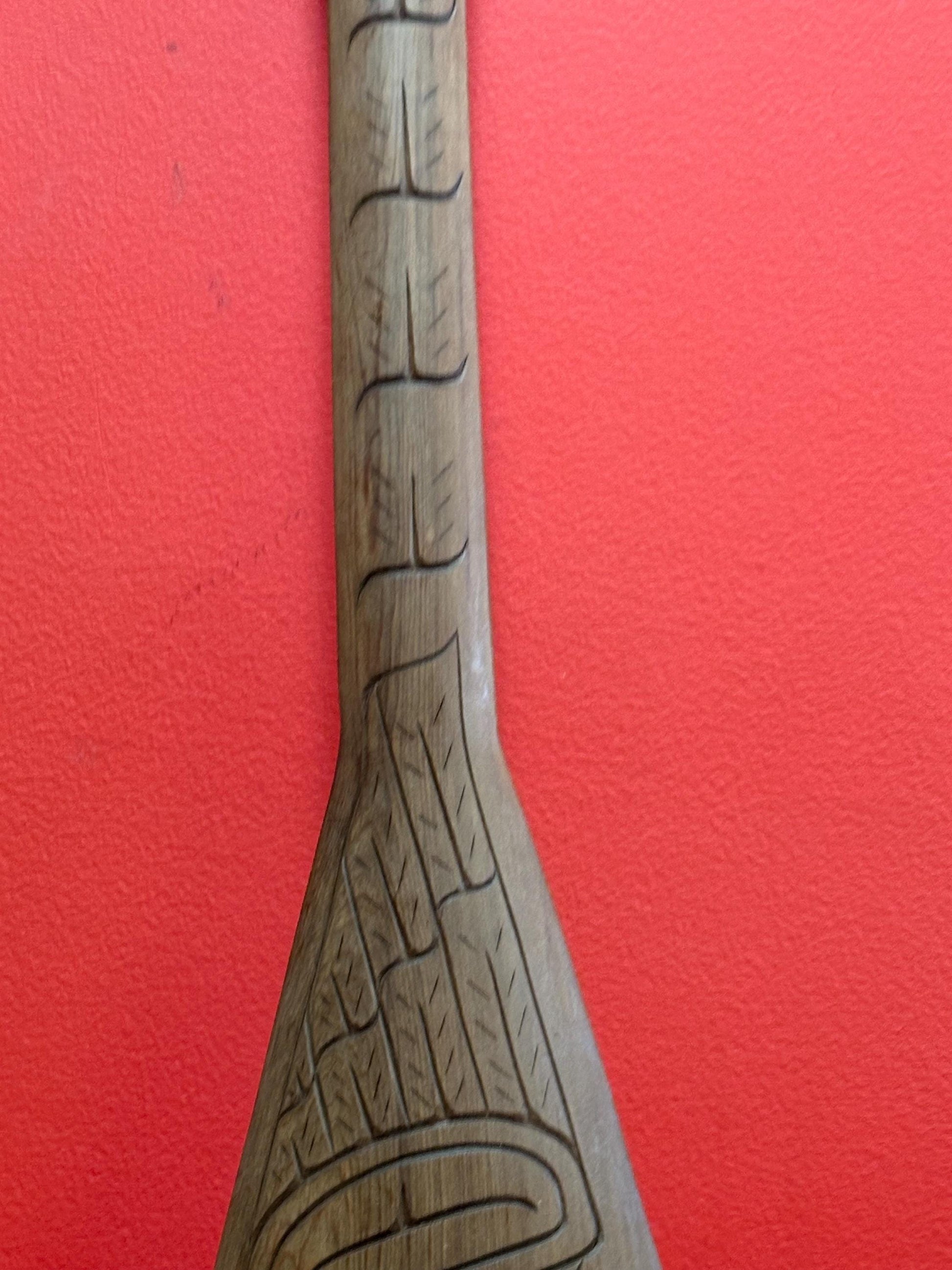 Beautiful 32 x 5 inch eagle paddle — indigenous First Nations Pacific Northwest coast — signed — great detail — needs hanger