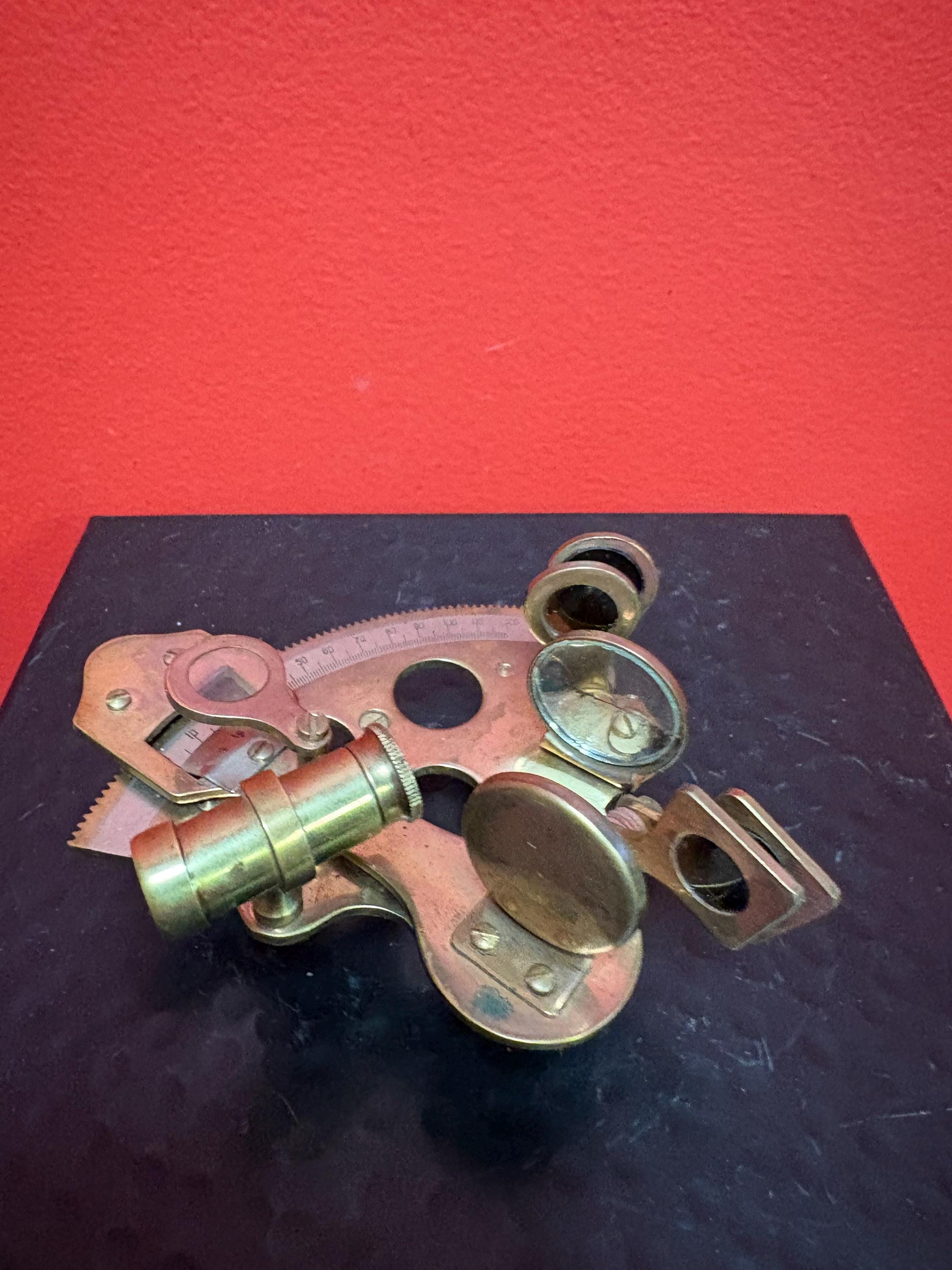 Beautiful 4.5 inch antique brass sextant seem to work wonderful condition wow