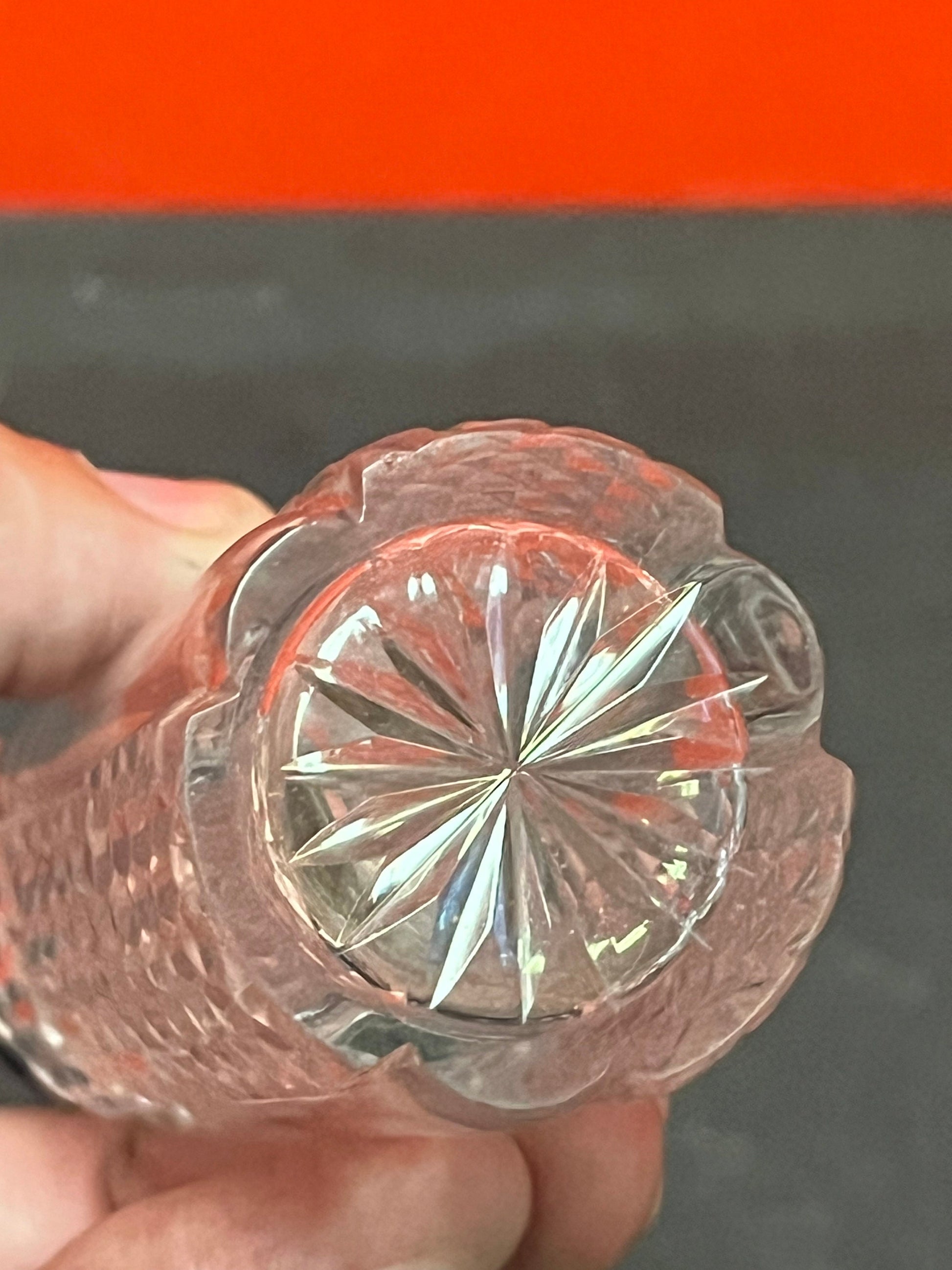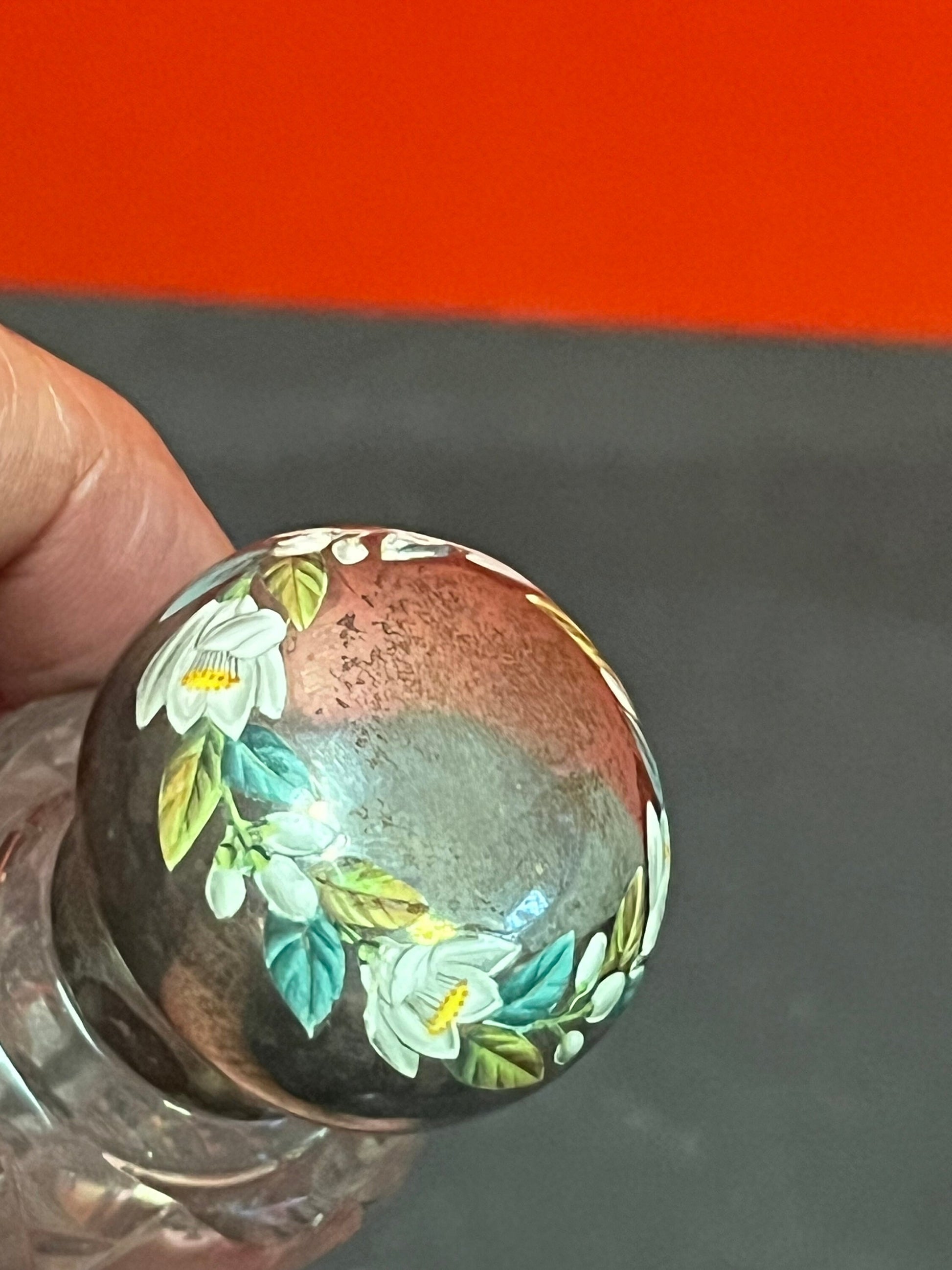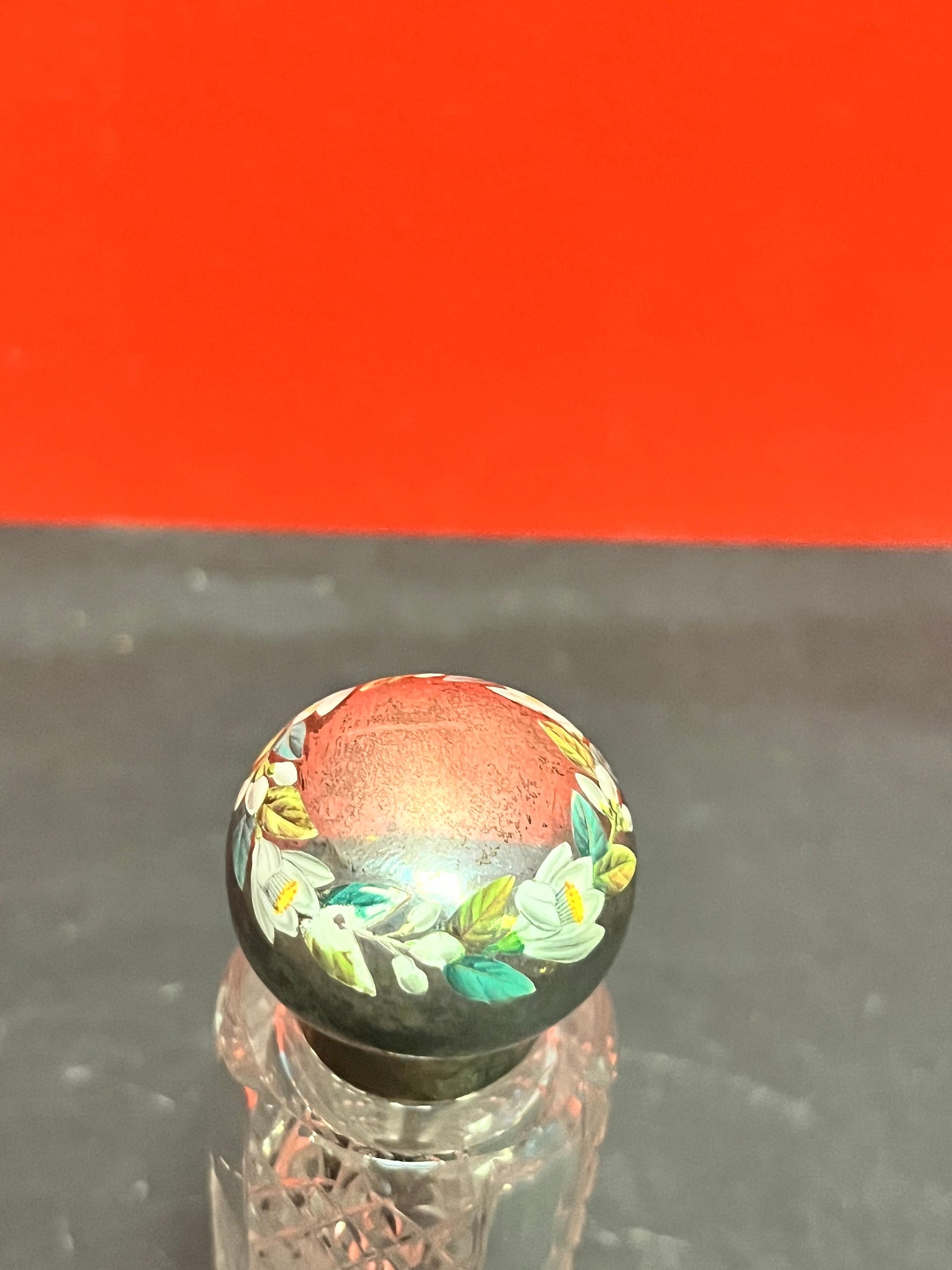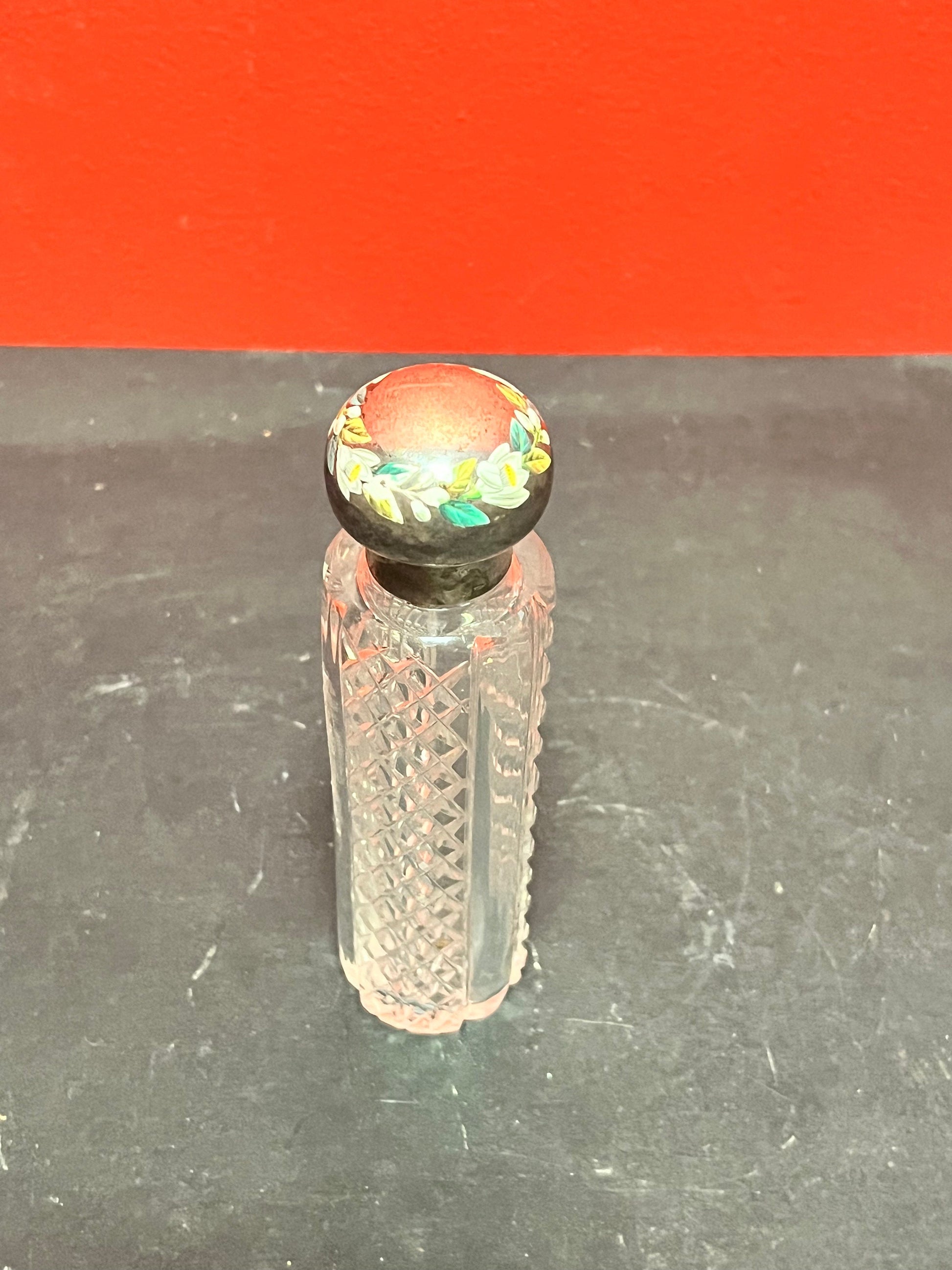Beautiful 5 1/2 inch tall, antique crystal and silver top perfume bottle London 1888 nice enamelling on top great value
