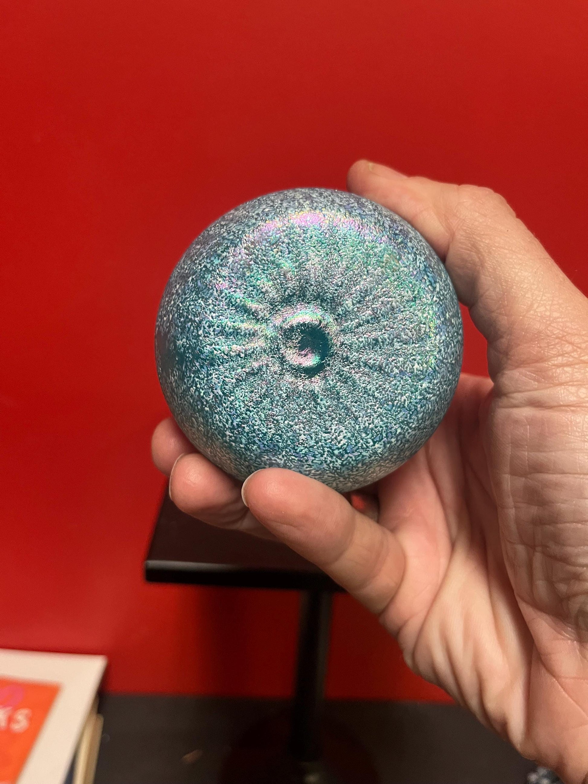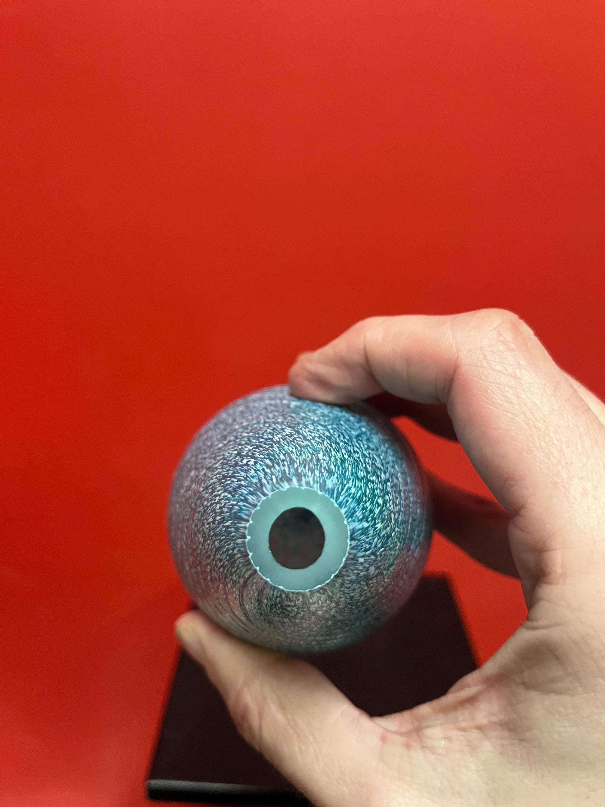 Beautiful 5 inch tall unsigned Vancouver Island Robert held vase stunning iridescent colour great value